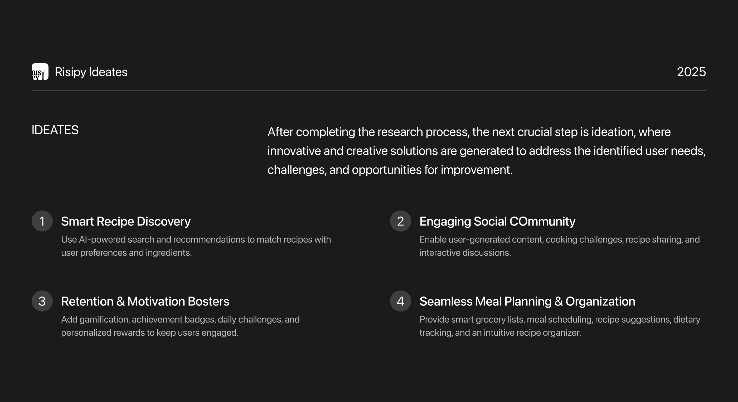 Risipy is a mobile application designed for food lovers to discover, share, and organize their favorite recipes in one convenient place.