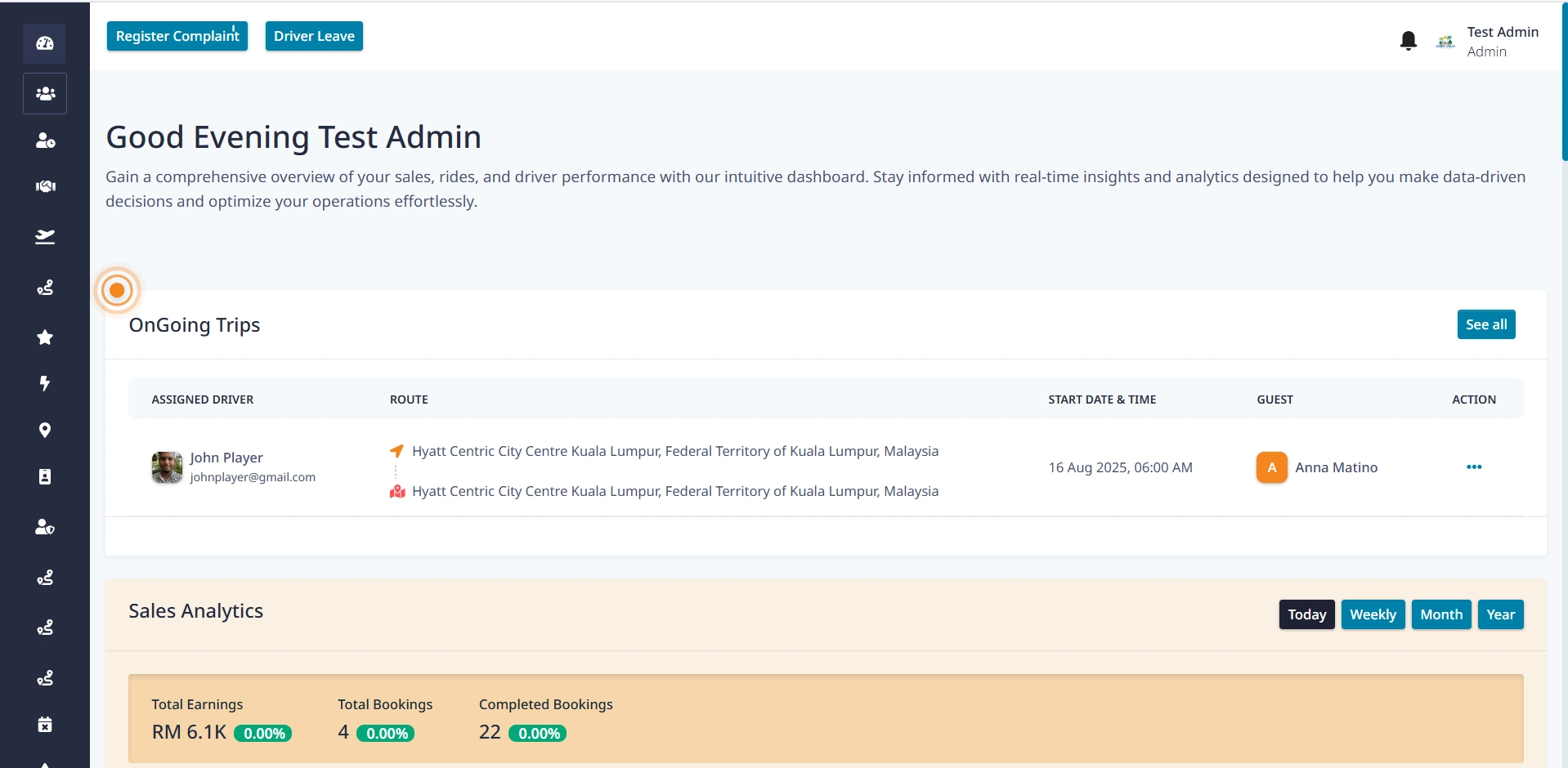 Created a dashboard for a tours and travel company to manage drivers, trips, bookings, sales, performance and more.