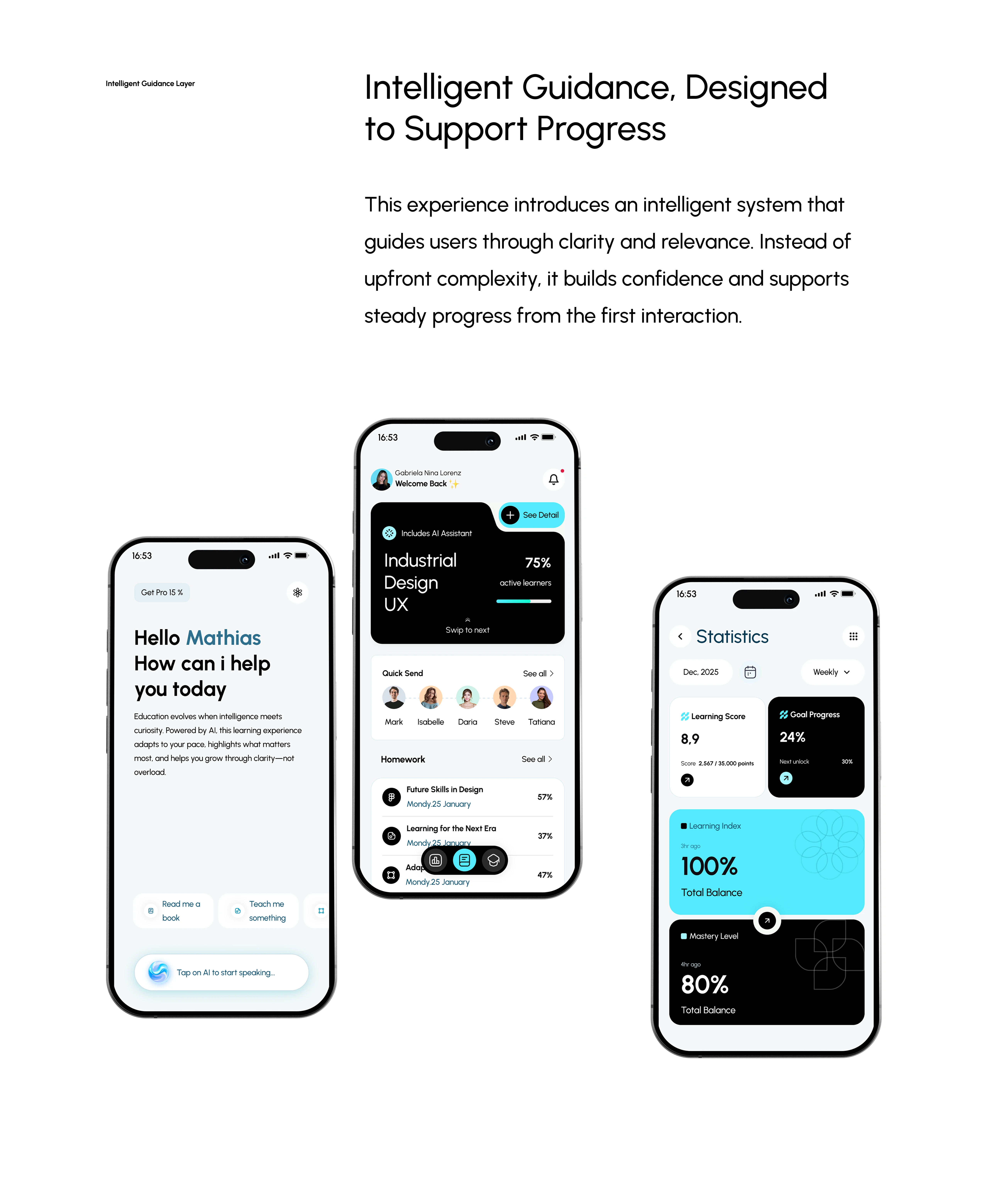 Nova works as an intelligent system that quietly supports the learning process. By understanding the learner’s progress, rhythm, and intent over time, it delivers the right guidance at the right moment. This approach builds trust without distraction and moves the learning experience forward in a natural, seamless flow.