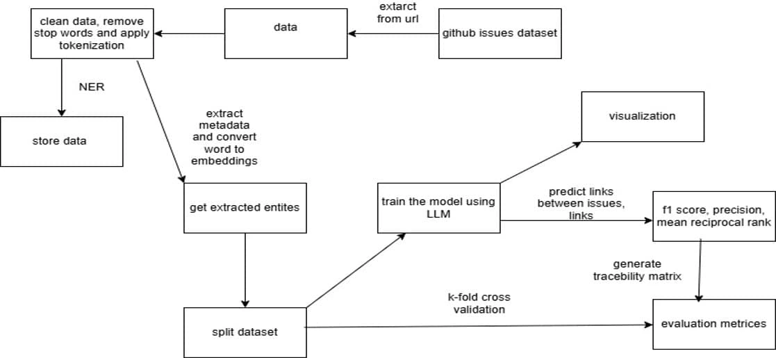 Here I show an overview of automating the requirement traceability using NLP and LLMs to predict trace links between issues and the software artifact built.
