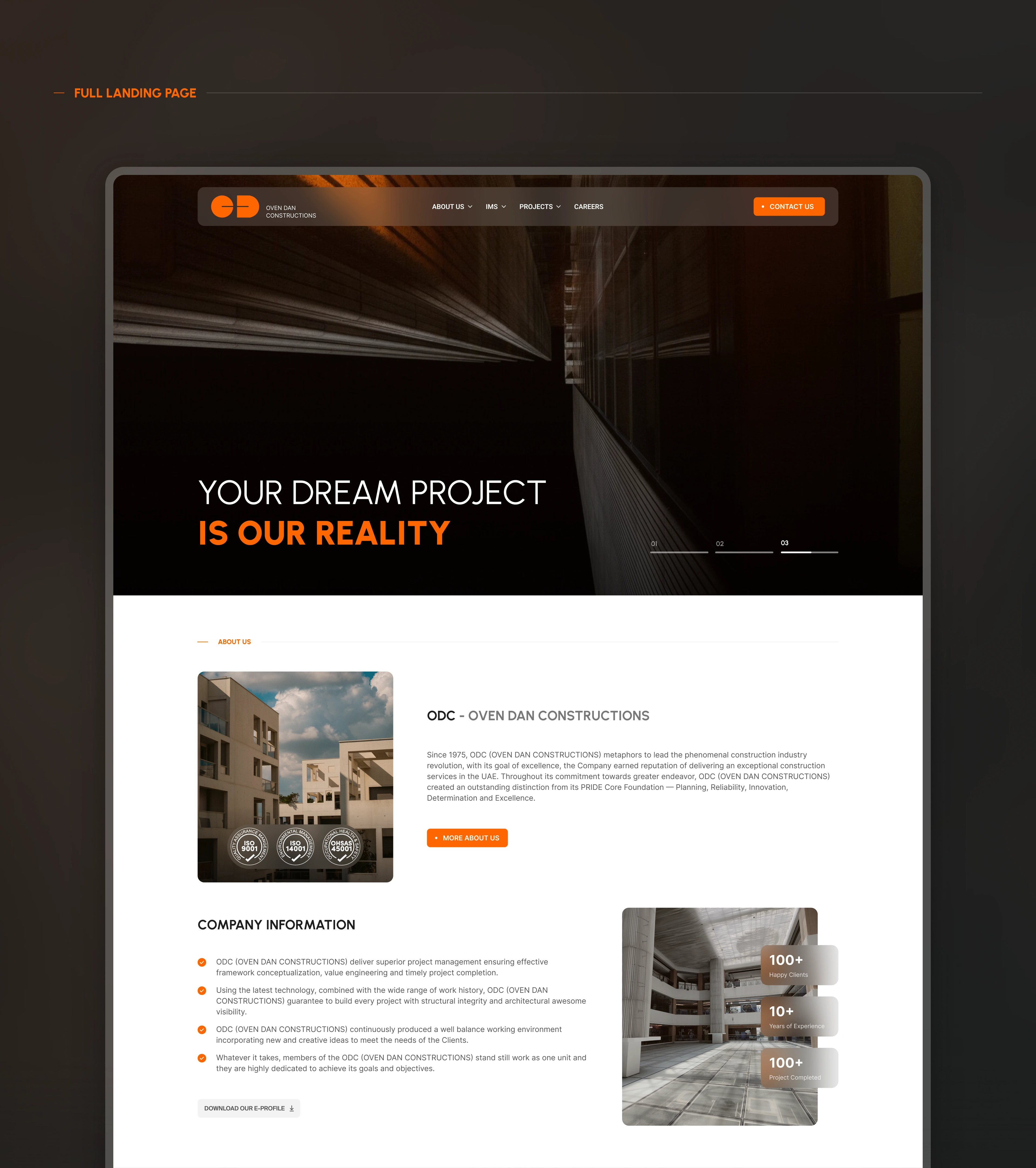 Modern, functional landing page showcasing oven and construction services with clean layout, bold visuals, and intuitive navigation design.