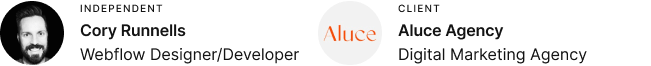 Independent webflow developer, Corey, worked with agency owner and freelancer, Roy, on webflow assets and website development