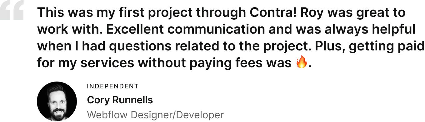 Independents use Contra to create stunning visual profiles, match with top opportunities for flexible, and get paid commission-free. Clients use Contra to discover and hire top Independents for their projects, and manage contracts and payments all in one place.
