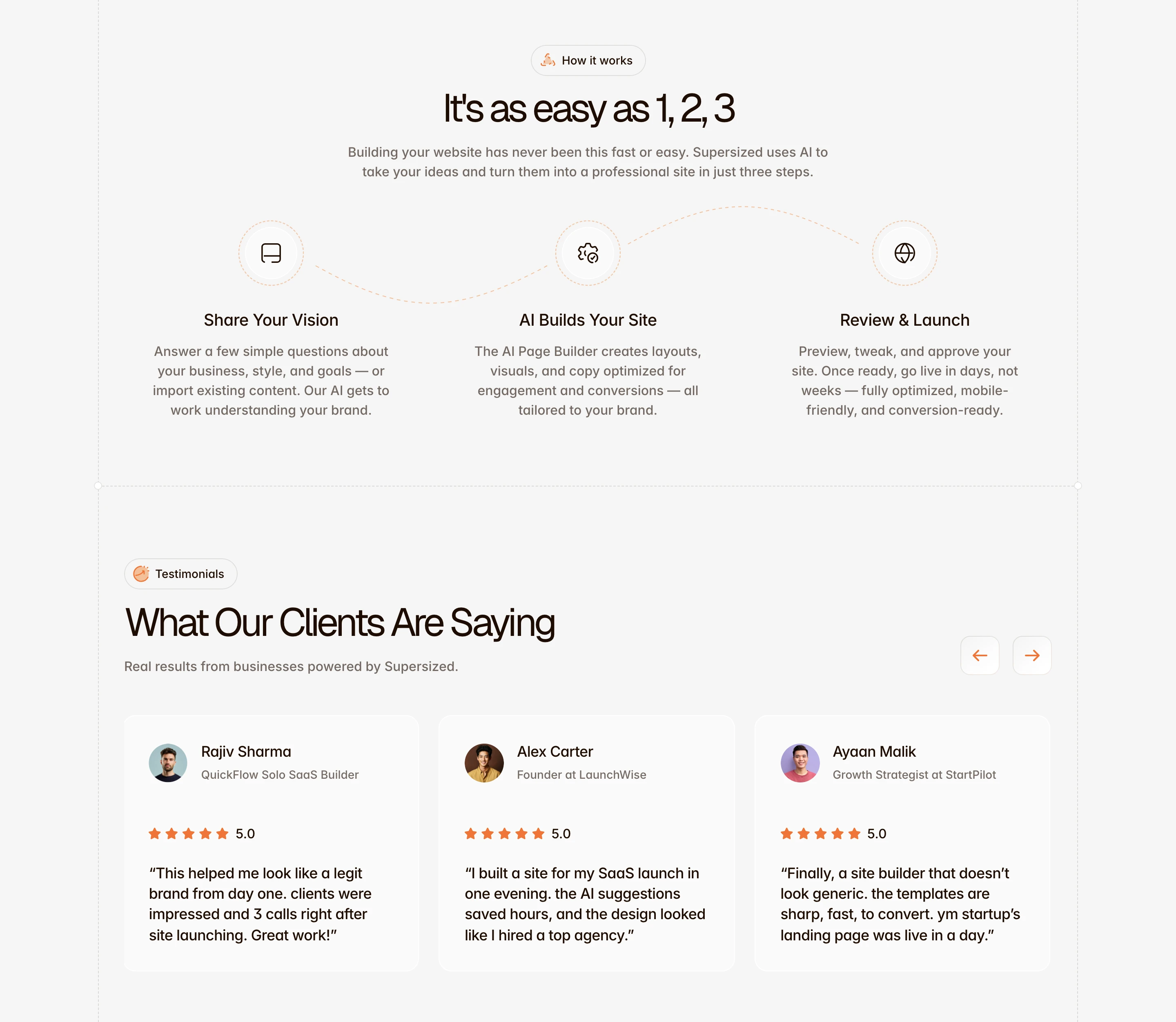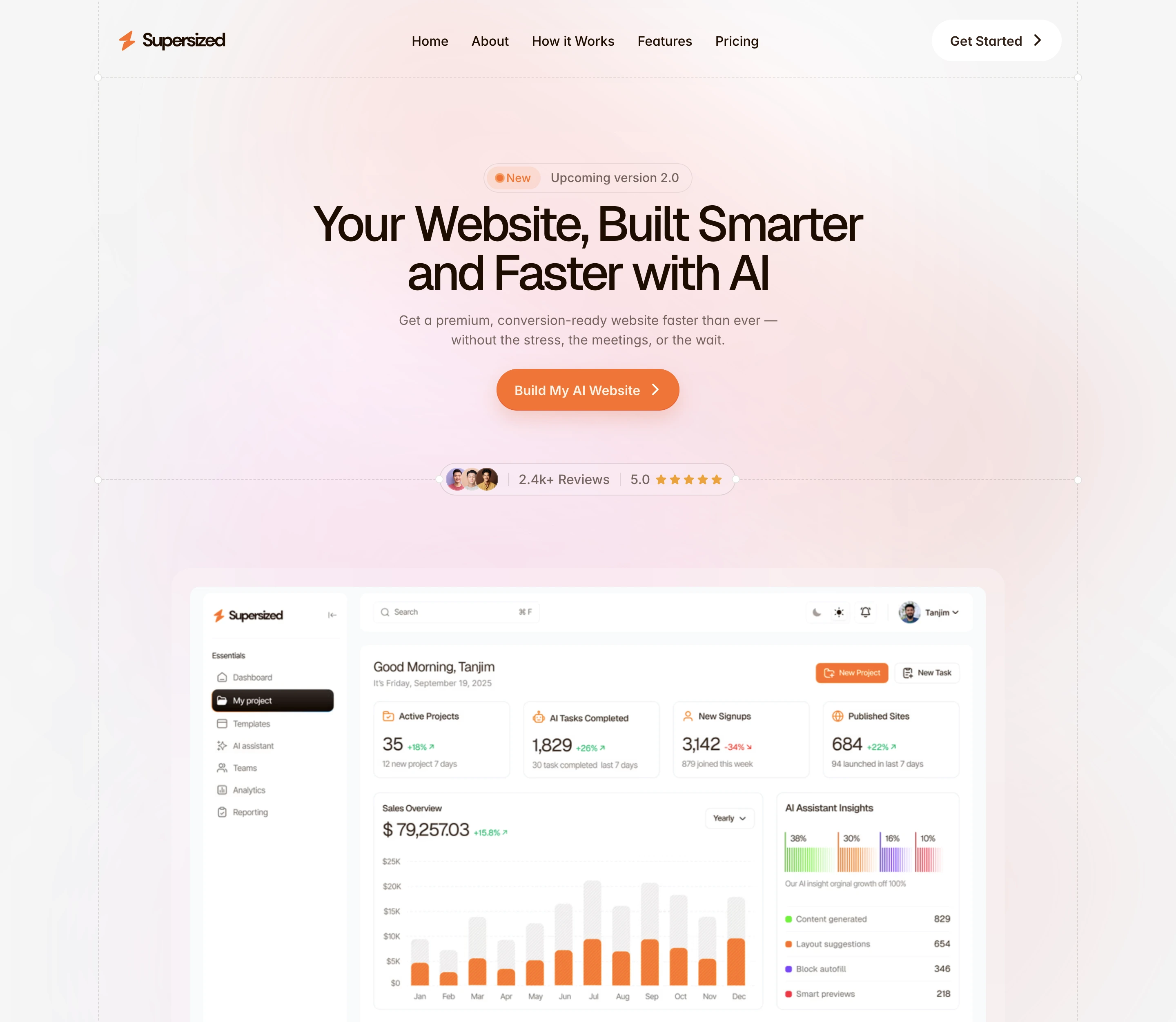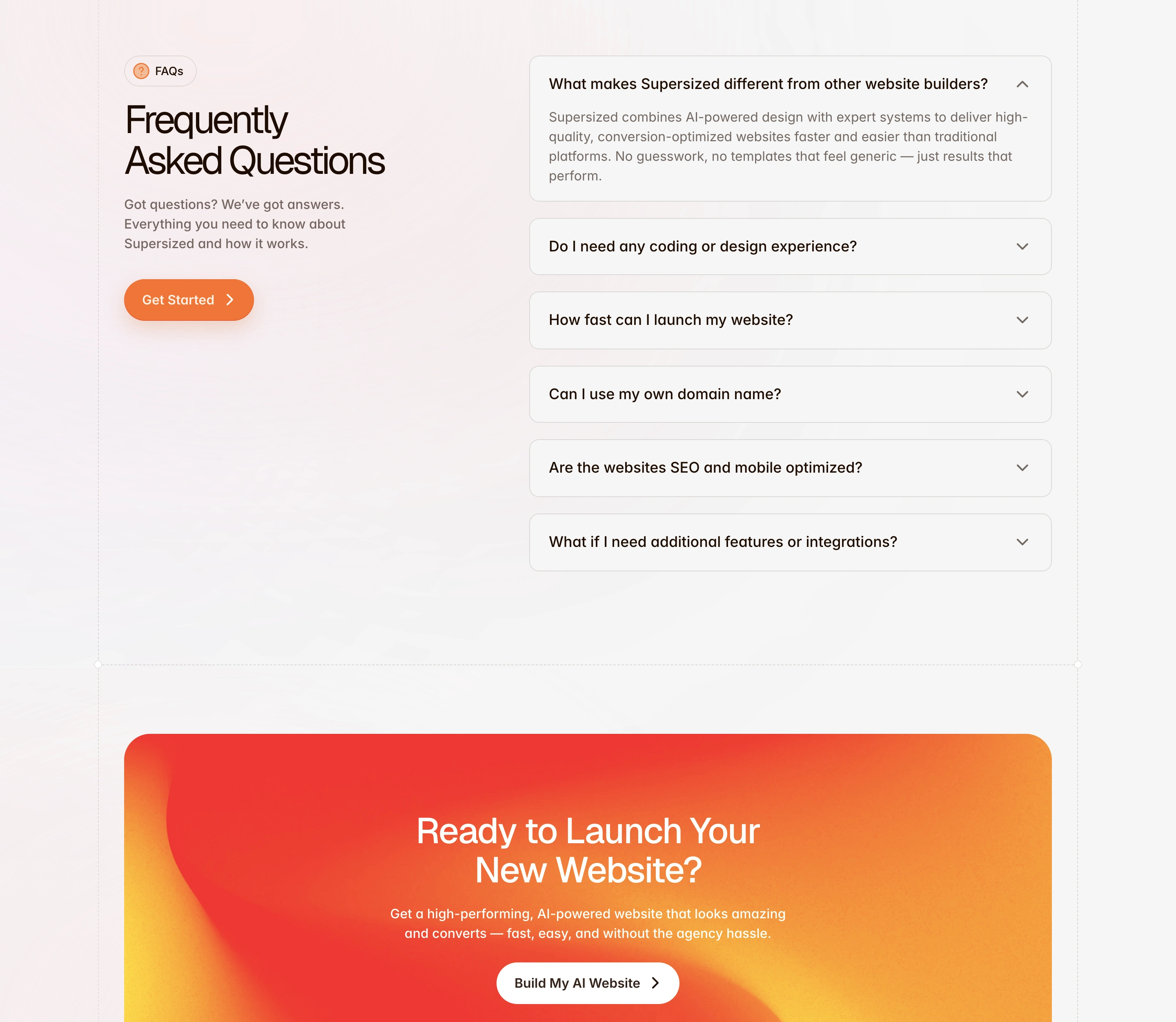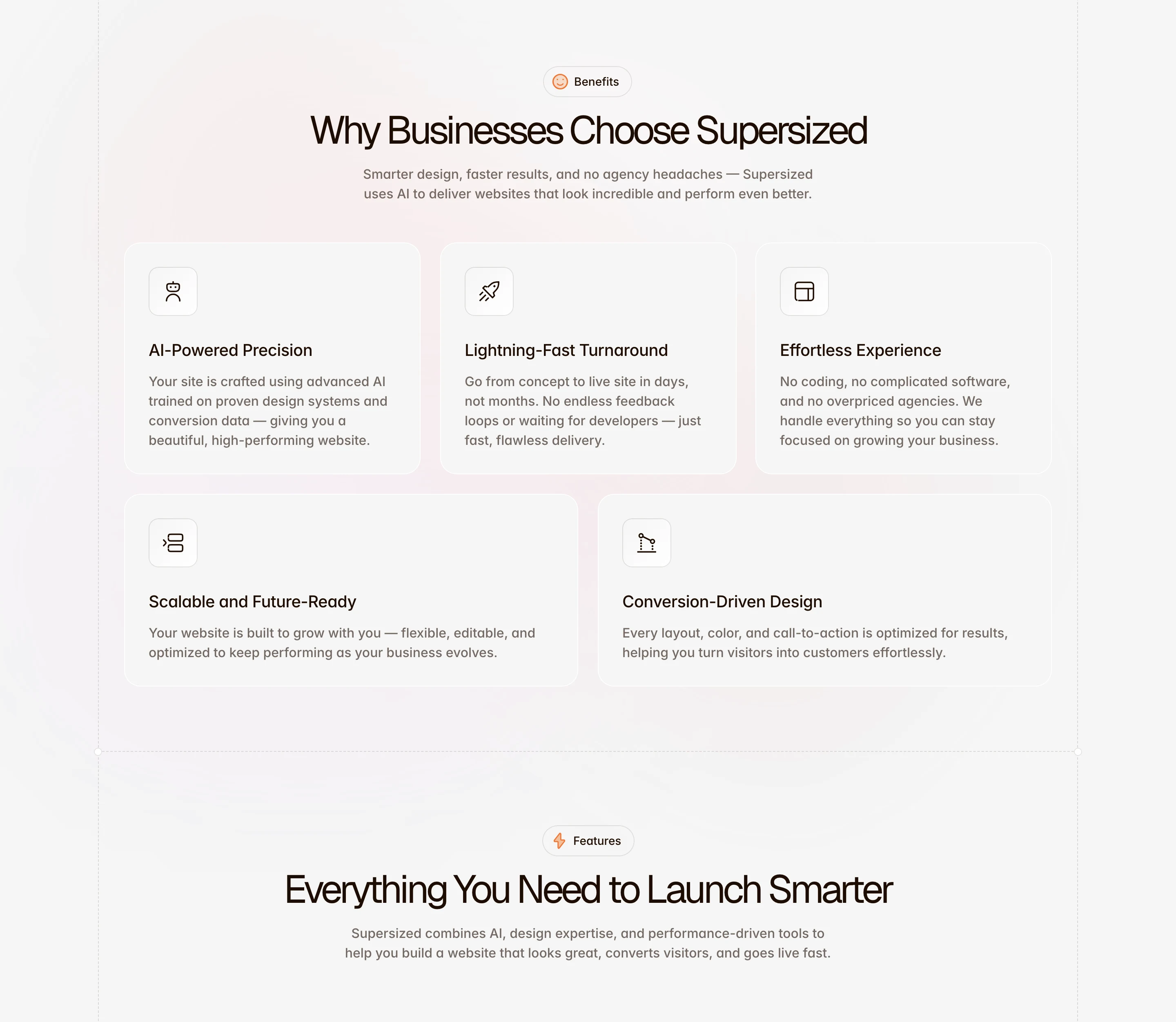 Supersized — Website design and development, built to highlight its AI-powered tools that help businesses launch stunning websites in days.