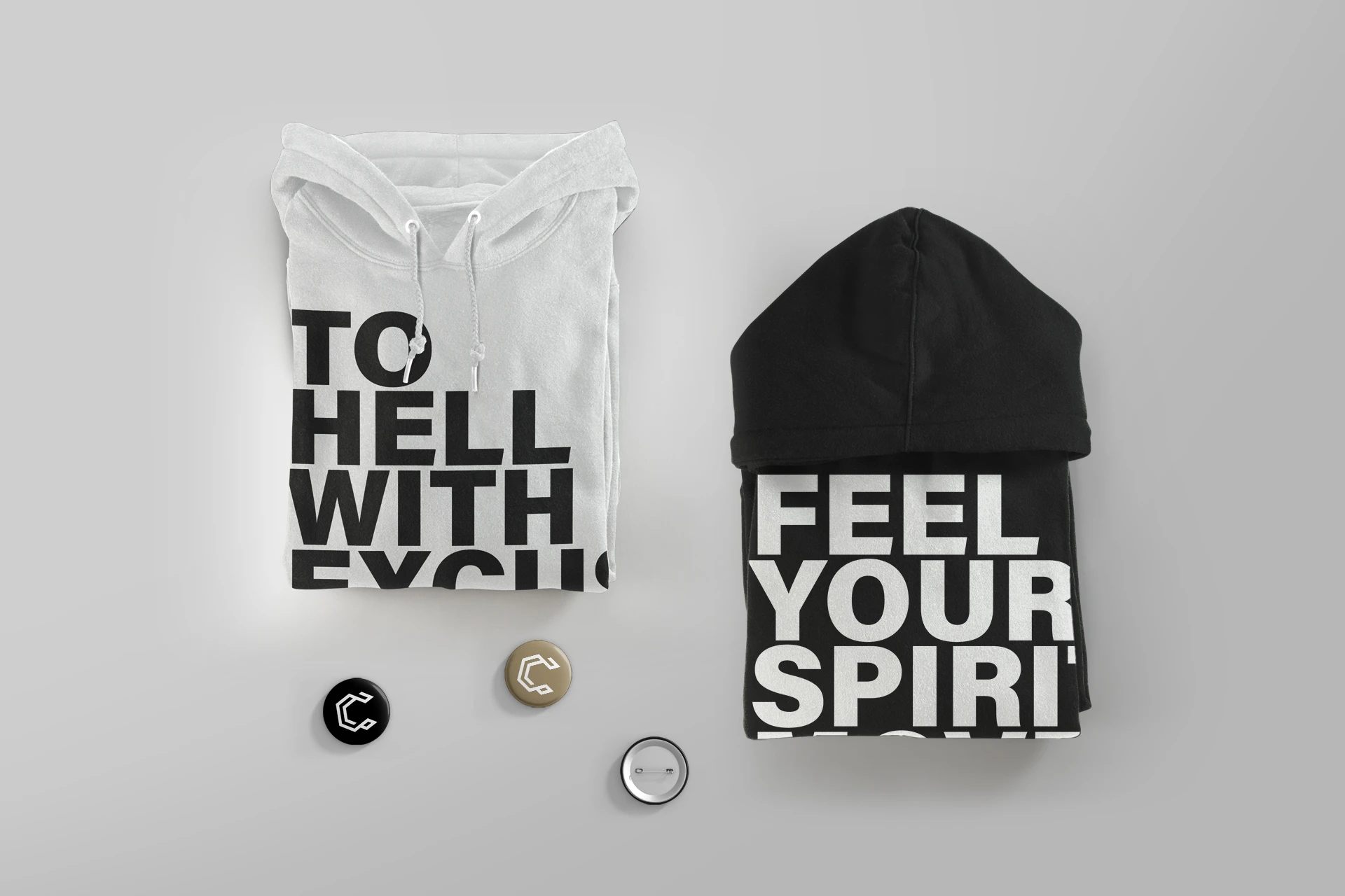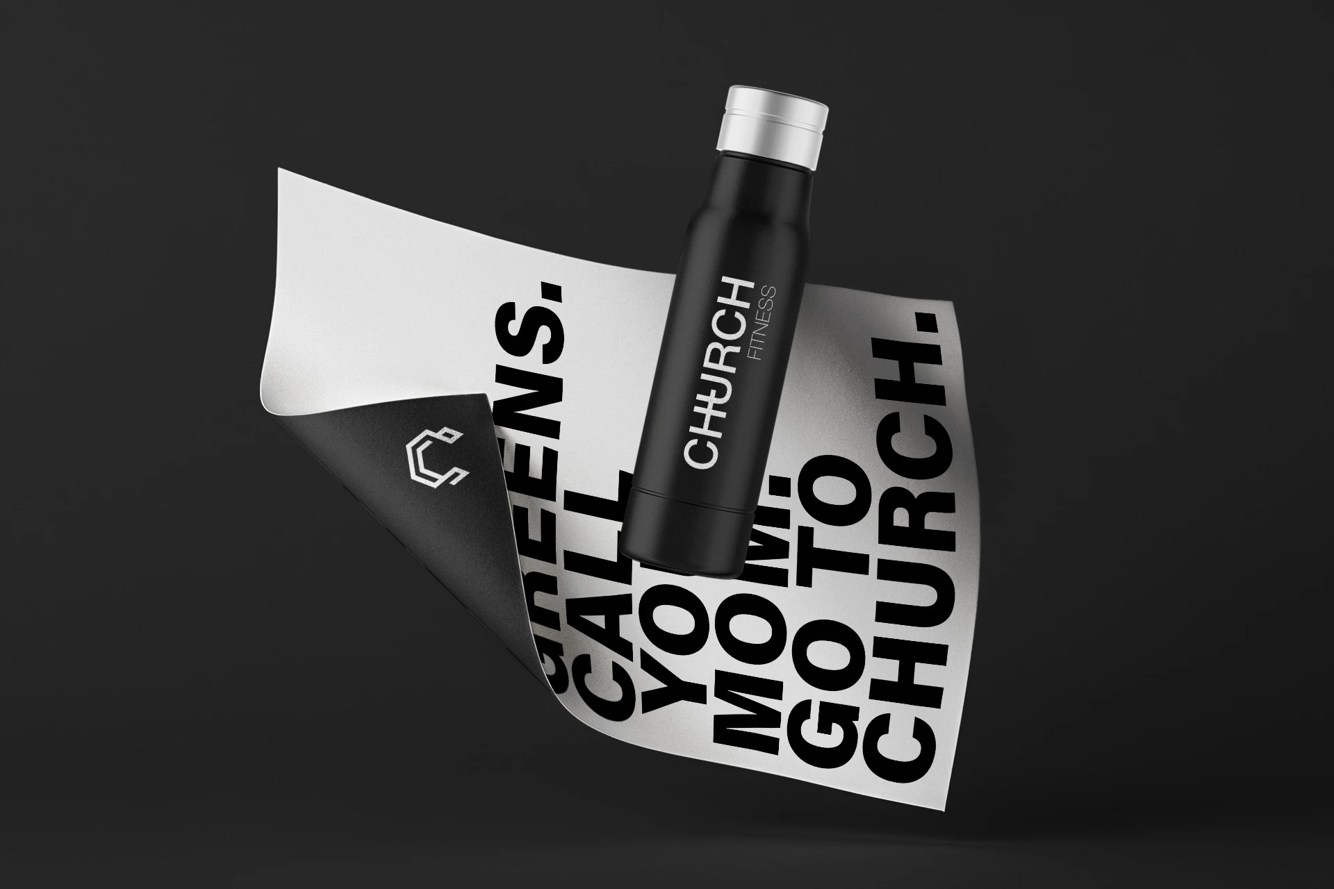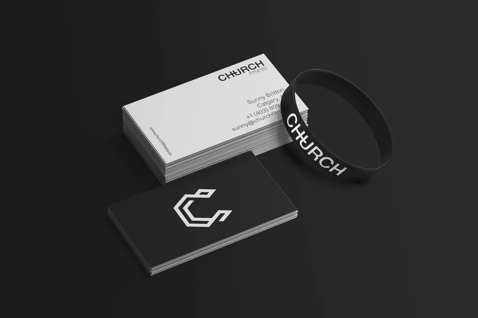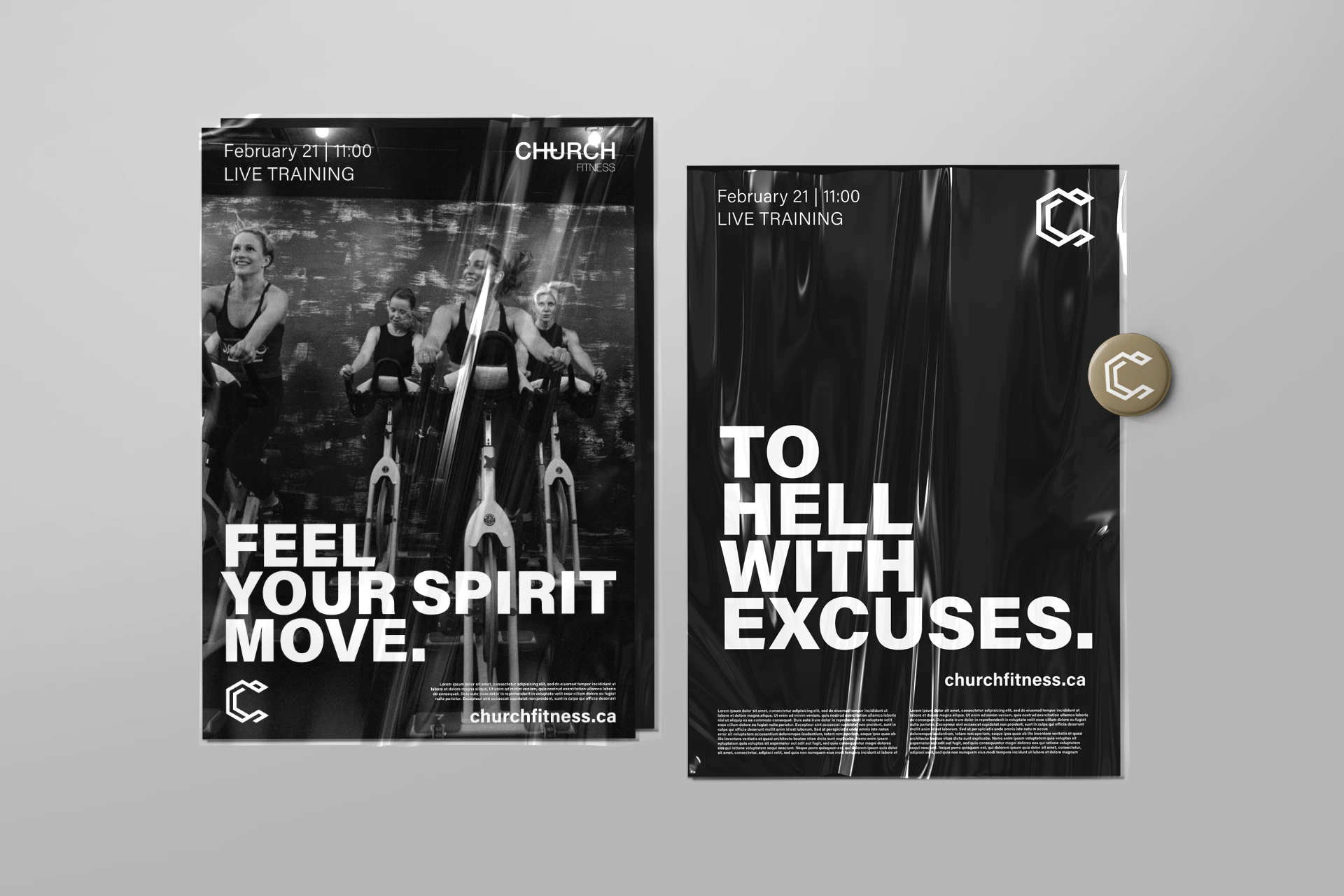 CHURCH Fitness is a modern fitness studio based in Canada, offering spin classes and bodyweight training sessions. The name CHURCH reflects the idea that this fitness club is a place of refuge, community, and connection with both others and oneself. In many ways, it has become a kind of 'church' for its attendees. This is a church you attend not only on Sundays. The style is bold, sharp, and includes a slight nod to mysticism.