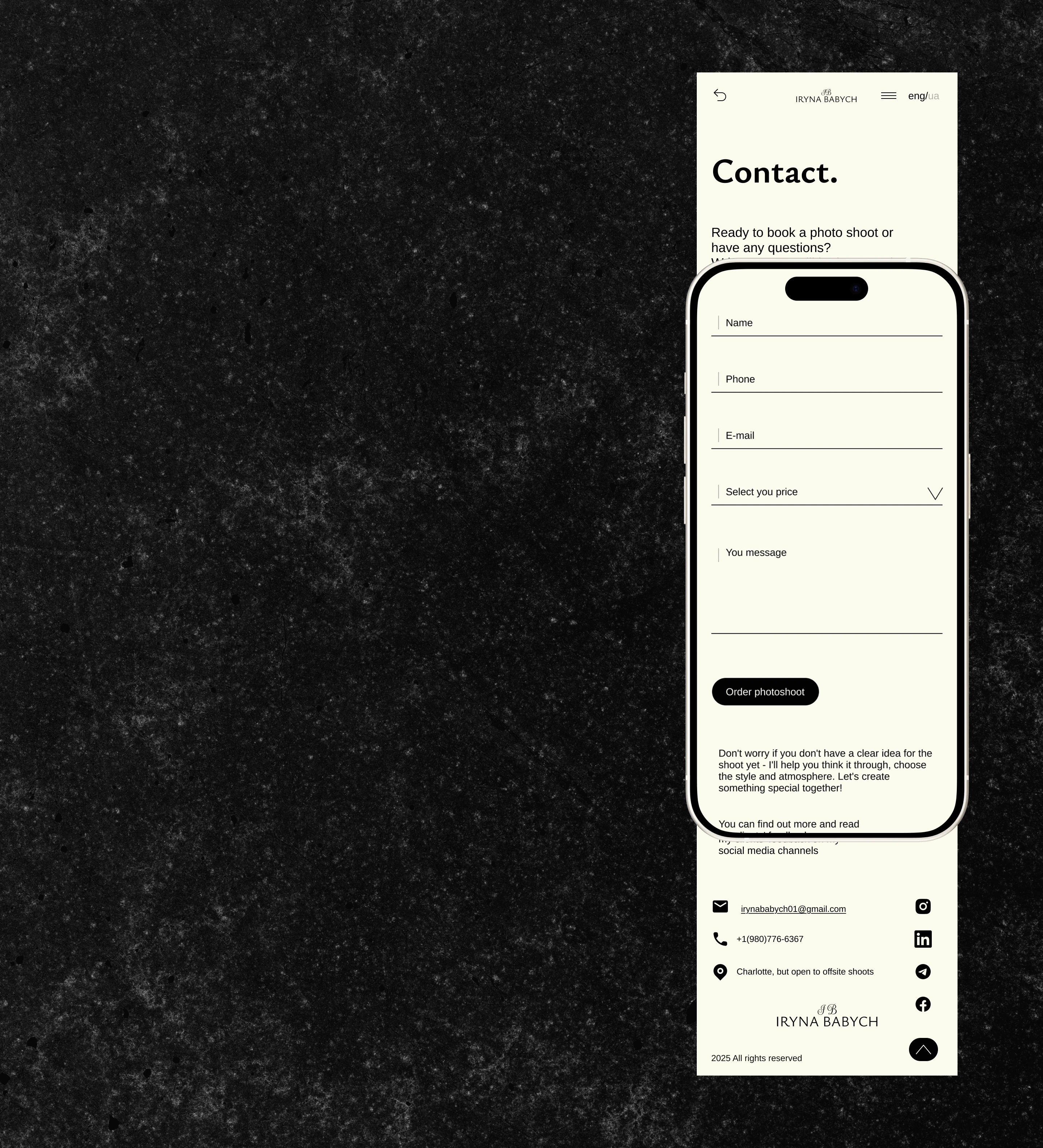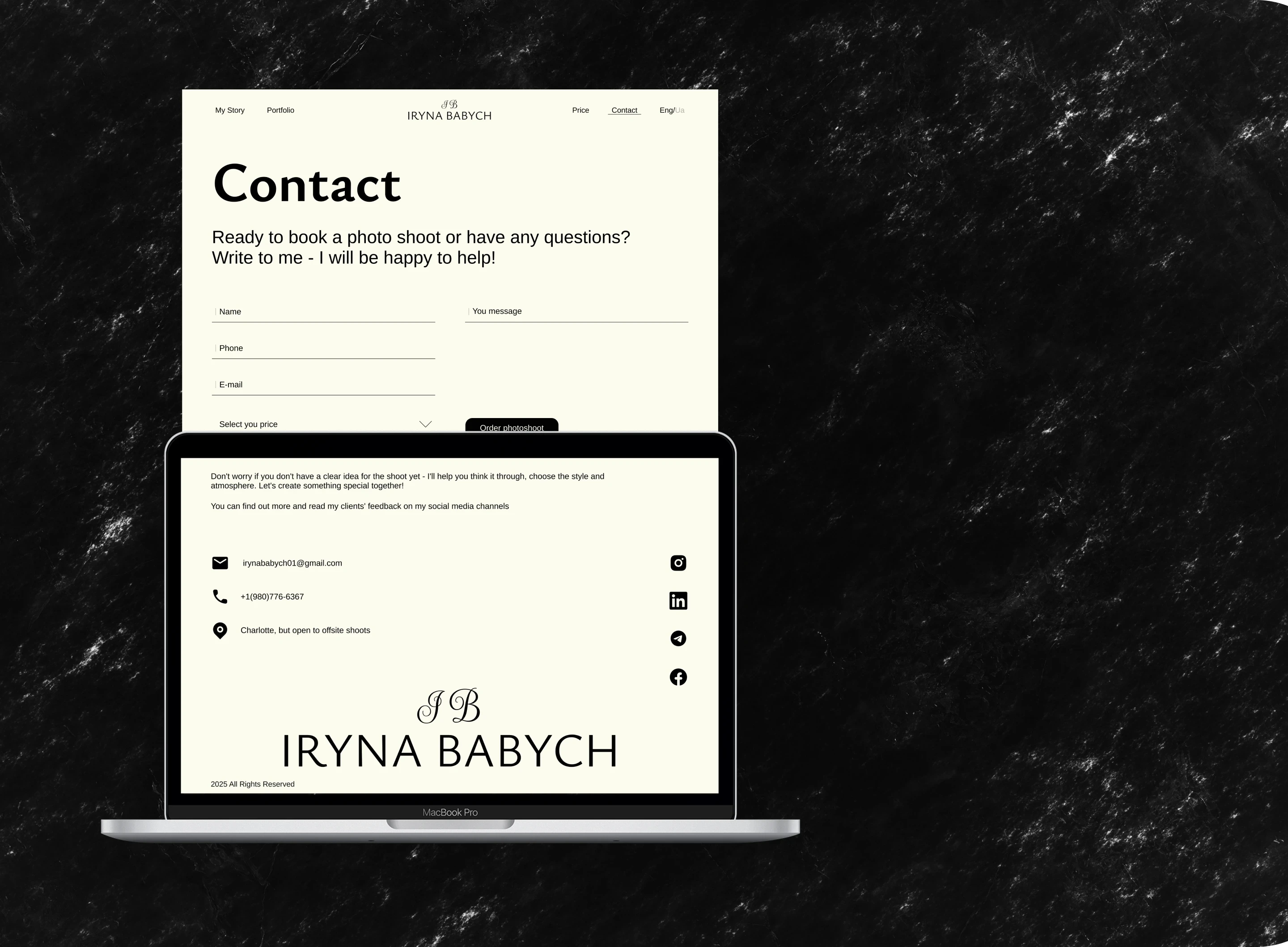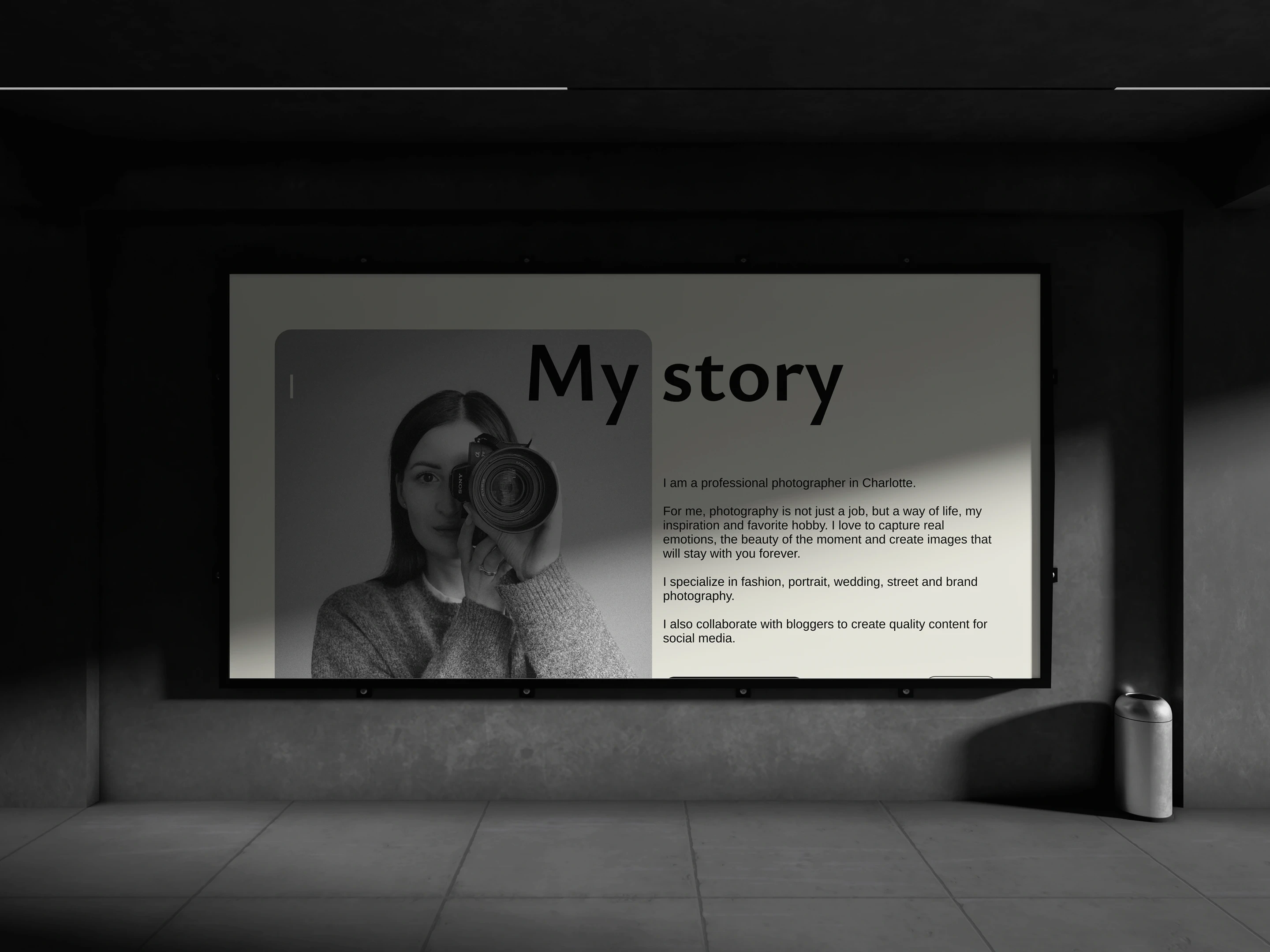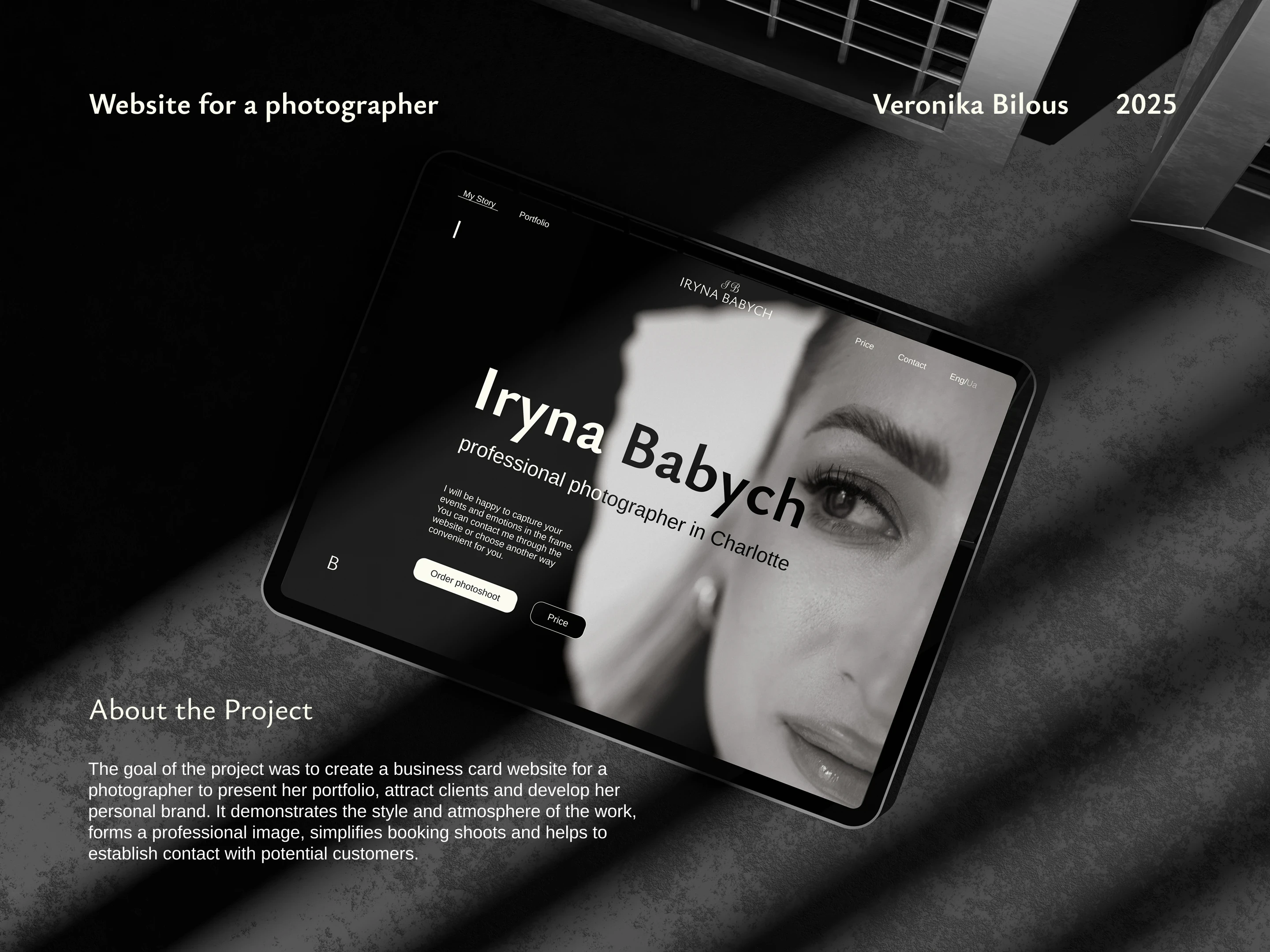 The goal was to create a portfolio website for a photographer to present her work, attract clients, and build a strong personal brand.