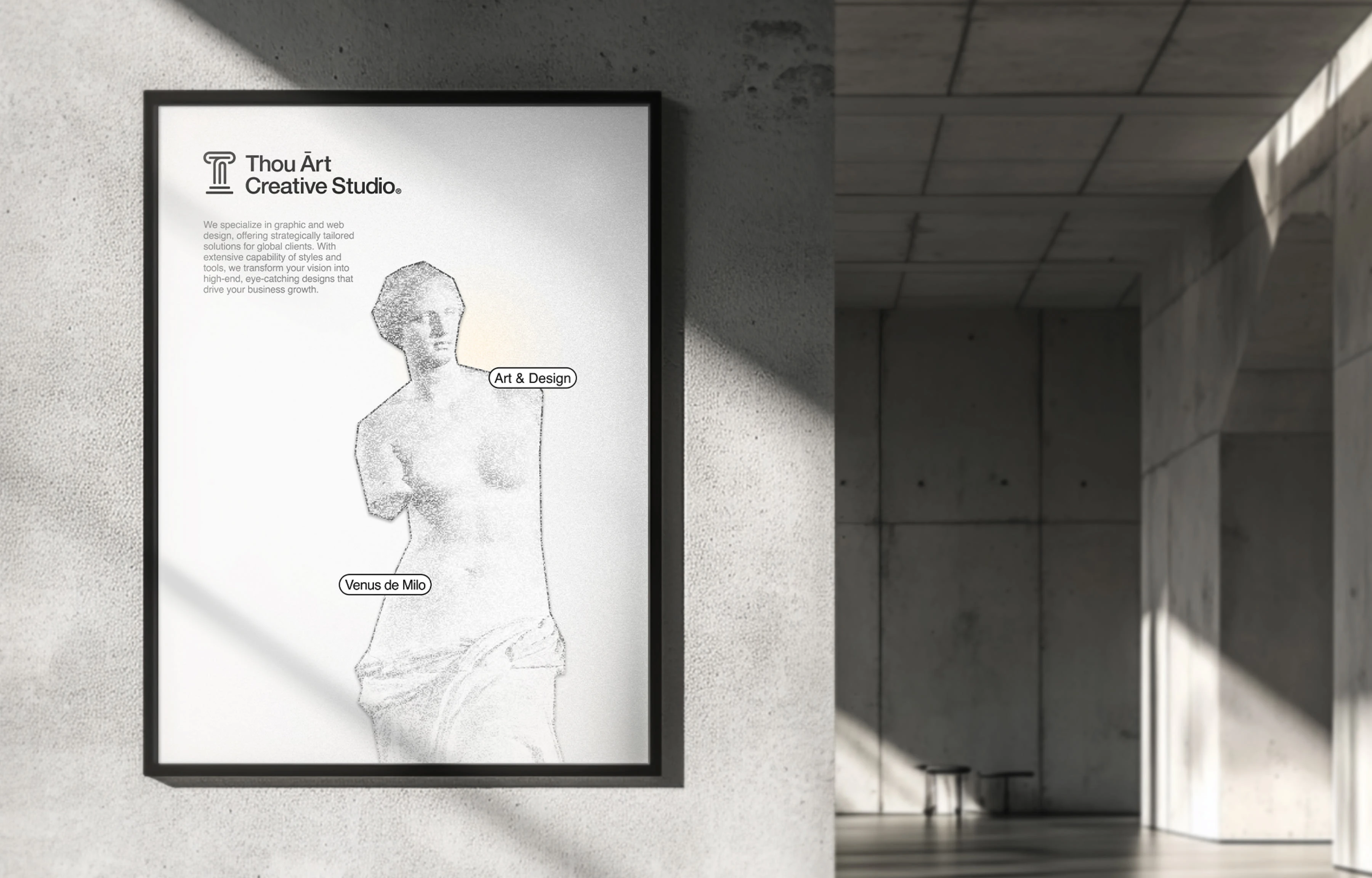The post includes short clips that show the logo in motion, newly designed website, the graphic style in use, and a quick walkthrough of the guidelines. Applications span web (desktop and mobile), case study slides, stationery, business cards, and a large-format OOH billboard. The result is a clear, consistent identity across digital and print that reduces revisions and speeds delivery.
