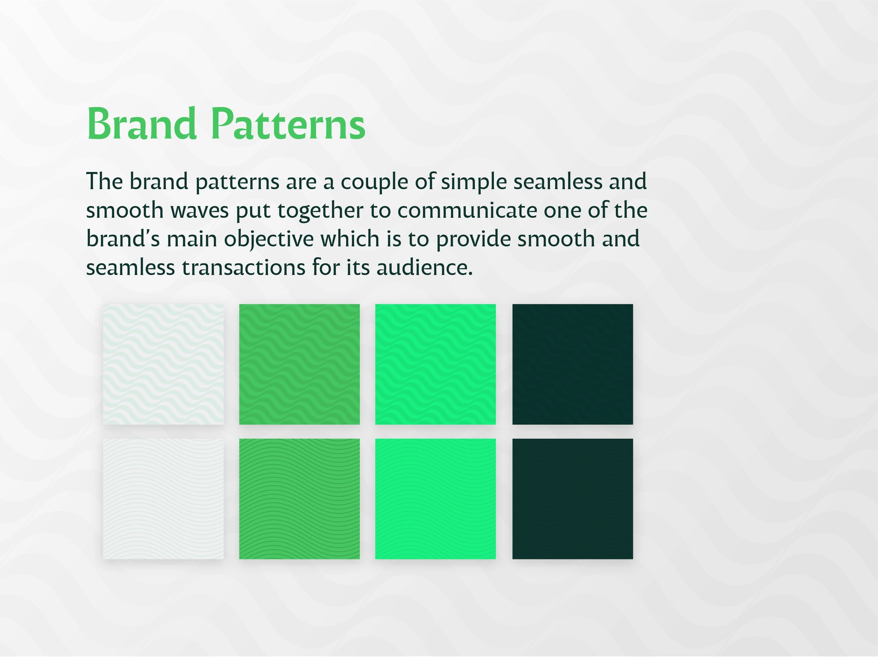 The visual pattern system uses seamless, flowing waves to represent uninterrupted, borderless transactions. These forms help build recognition while reinforcing the core brand promise of ease, speed, and reliability.
