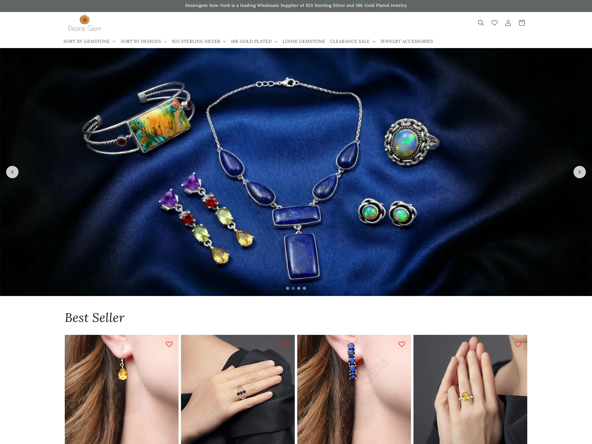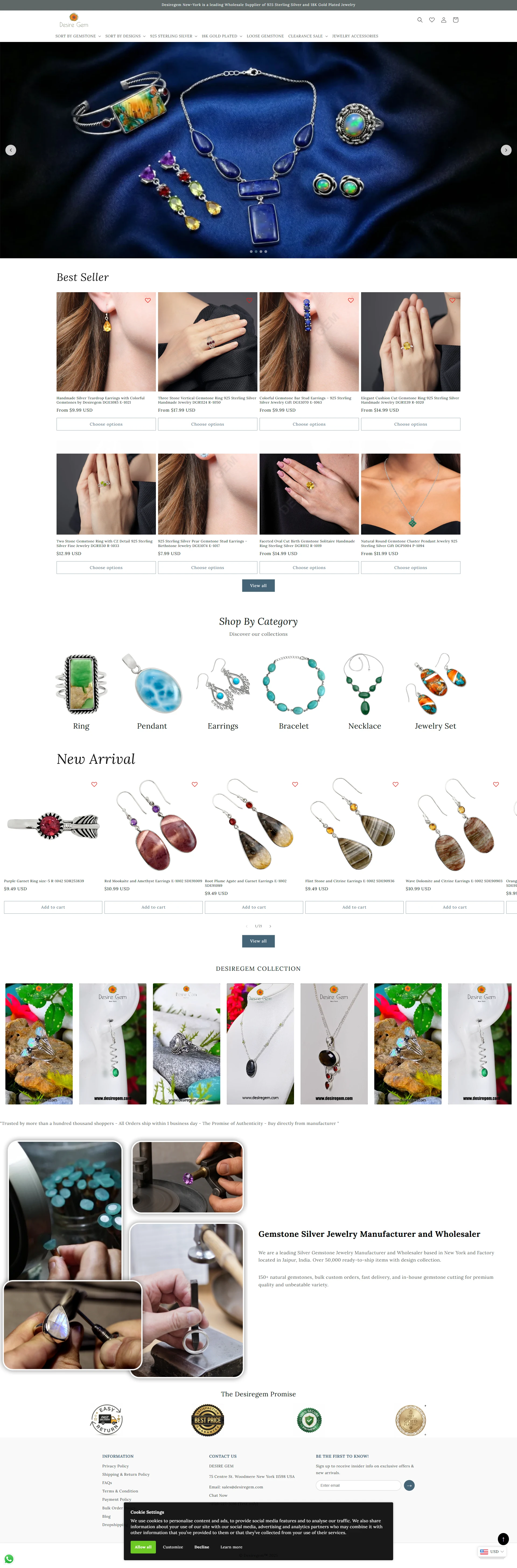 I built Desiregem, a custom Shopify‑powered e‑commerce storefront for a wholesale and retail jewelry brand specializing in 925 sterling silver and 18K gold‑plated gemstone accessories. The platform showcases a large catalog of rings, earrings, pendants, bracelets, and necklaces organized by gemstone and design, with seamless product browsing and shopping flows.
