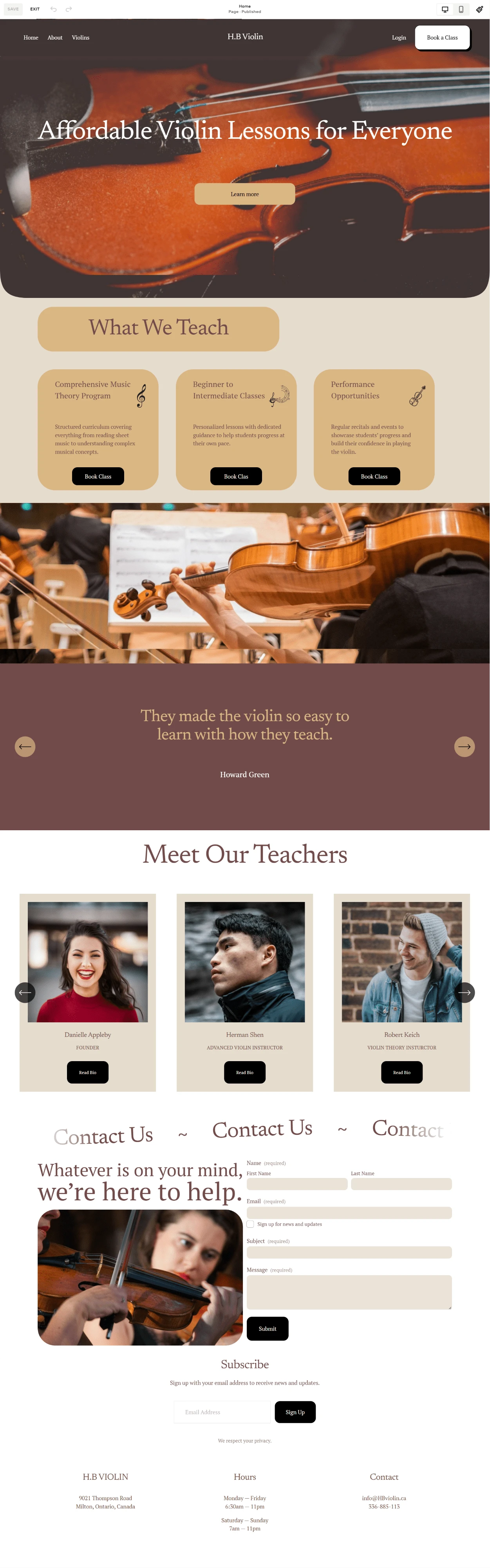 I created a landing page for a local violin school designed to capture customer emails and provide key information about the school.