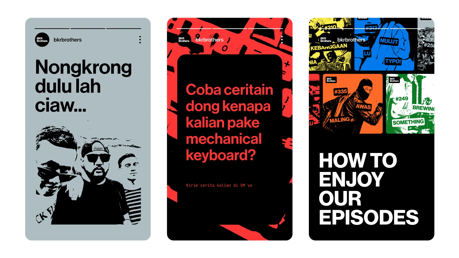 This visual identity system is supported by an equally flexible positioning, personified as a “hangout buddy”. With a representative and relevant look, it gives listeners an insight into the topics that will be discussed. The flexible layout reflects the casual and unfussy tone of the podcast, while the threshold design style strengthens the distinctive characteristics of the host and the BKR podcast itself.