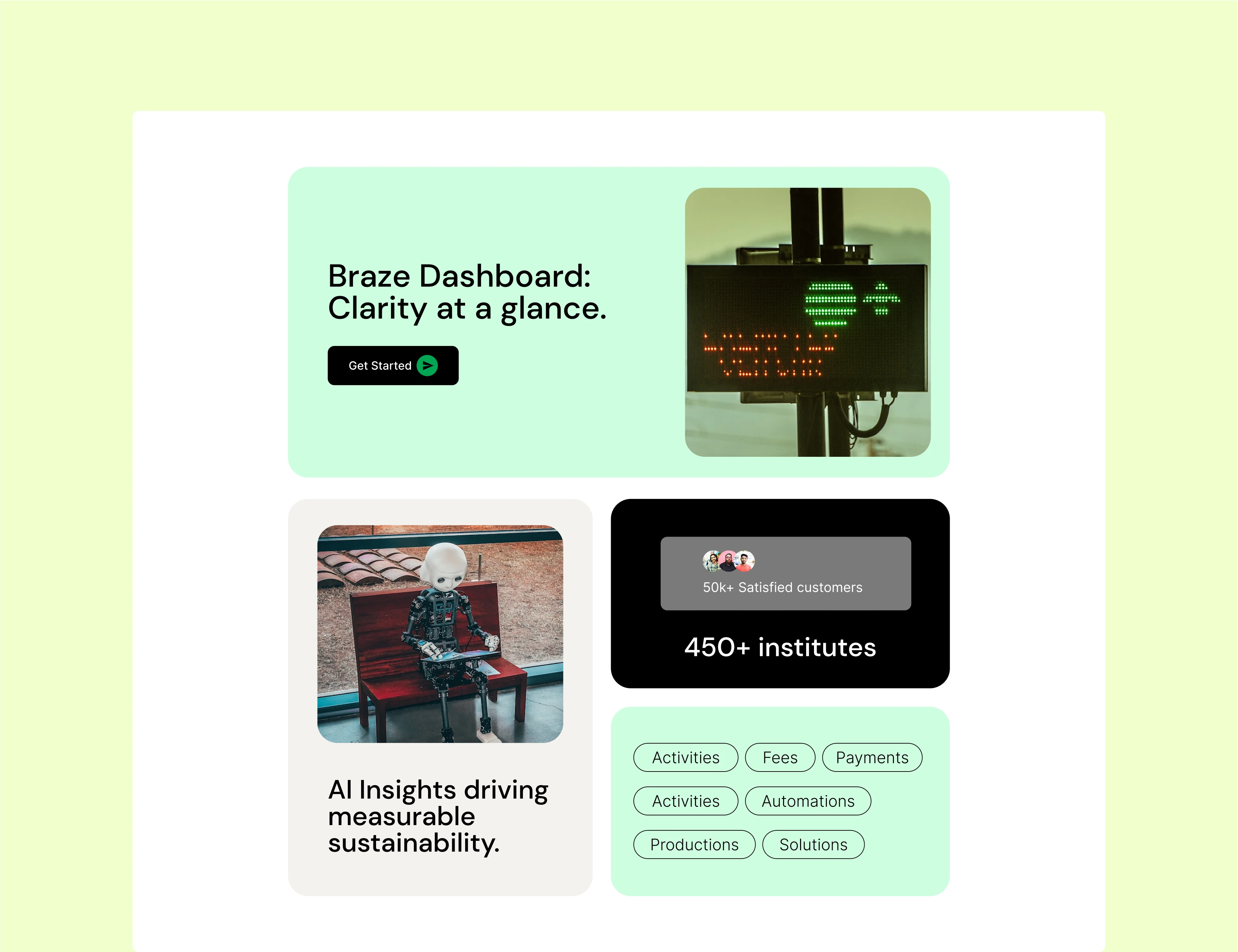Sustainability brands often fall into the same trap (lots of buzzwords) and very little clarity. On the other side, AI startups risk looking too cold or “techy.” Braze needed a digital identity that could merge both worlds: cutting-edge AI + relatable climate impact.
