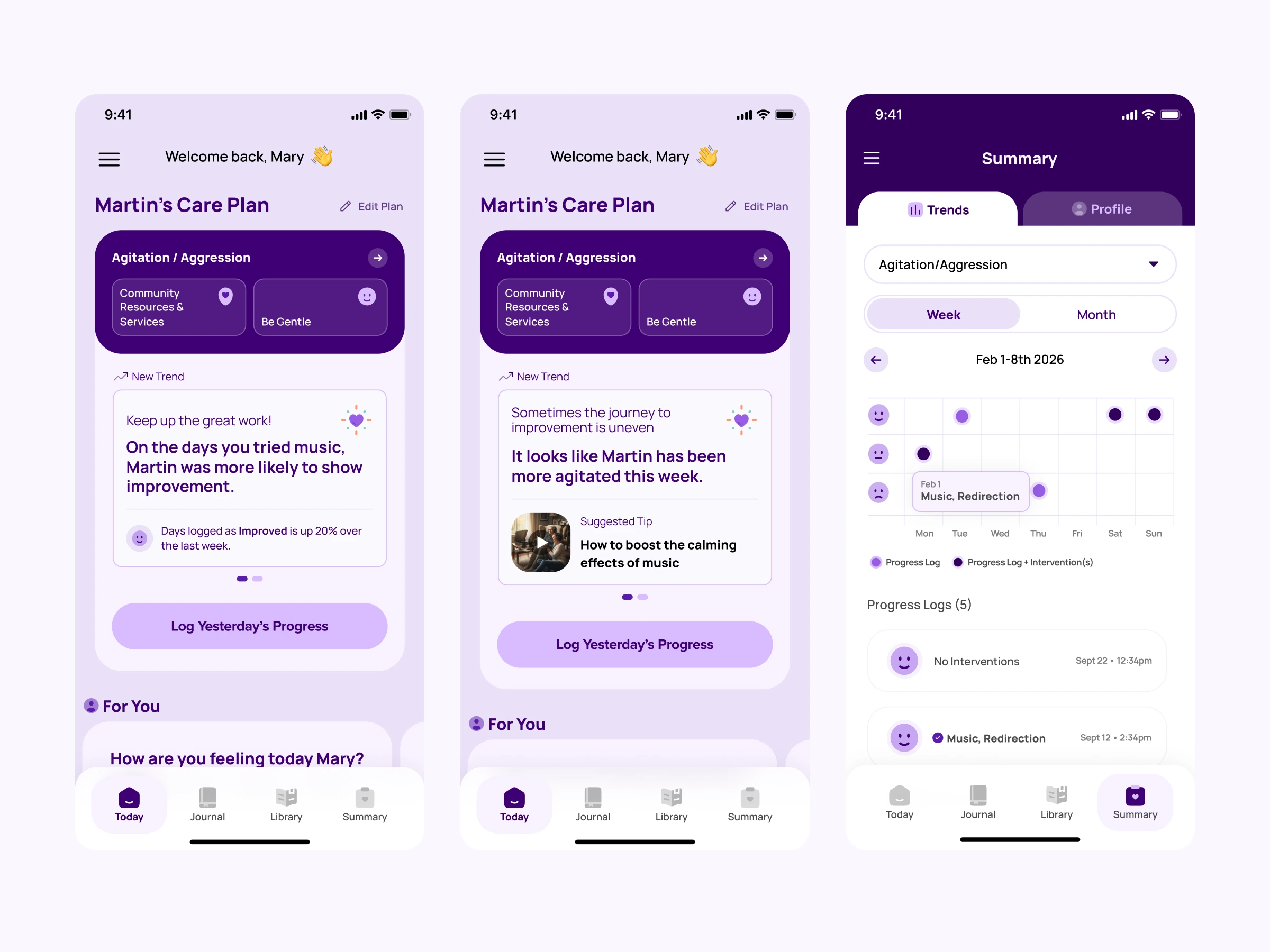 One of our main hypotheses was that if we better support caregivers they will experience more direct and immediate value. We designed dedicated features that support their emotional health: