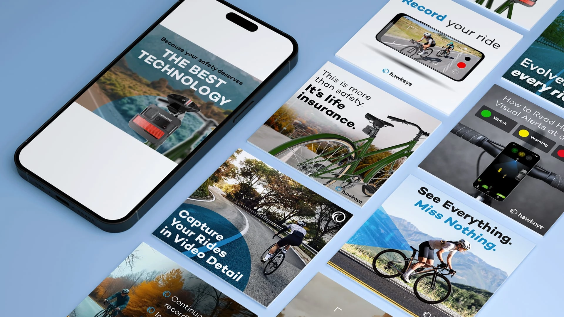 Over 3 months, Hawkeye went from zero digital presence to a fully active social media presence across Instagram, Facebook, and YouTube with consistent content, a clear brand voice, and launch-ready campaigns. The brand entered the market with a cohesive, professional look that positioned it as a serious player in the cycling safety space.