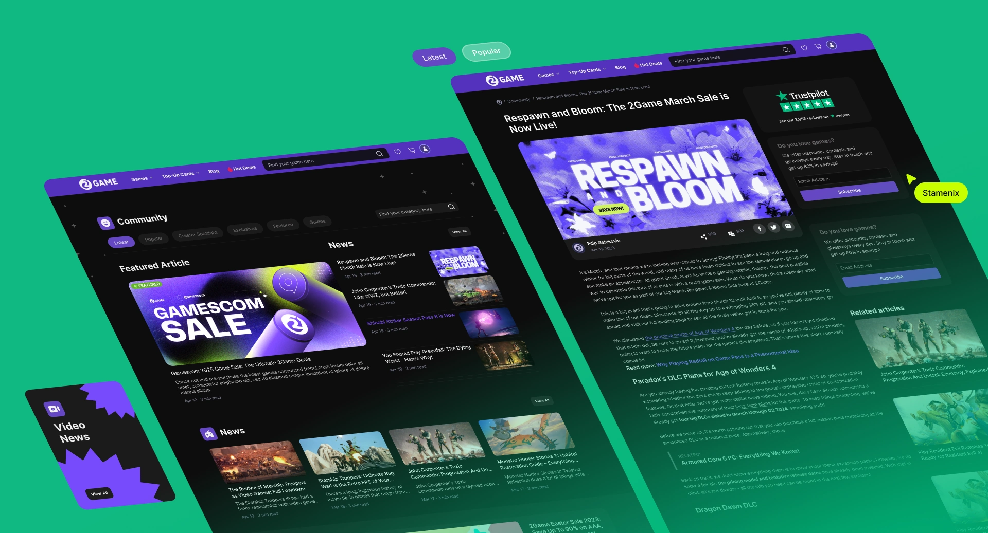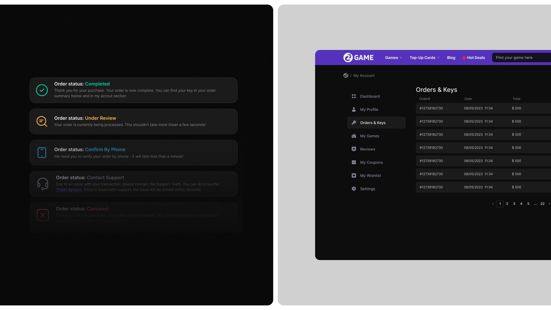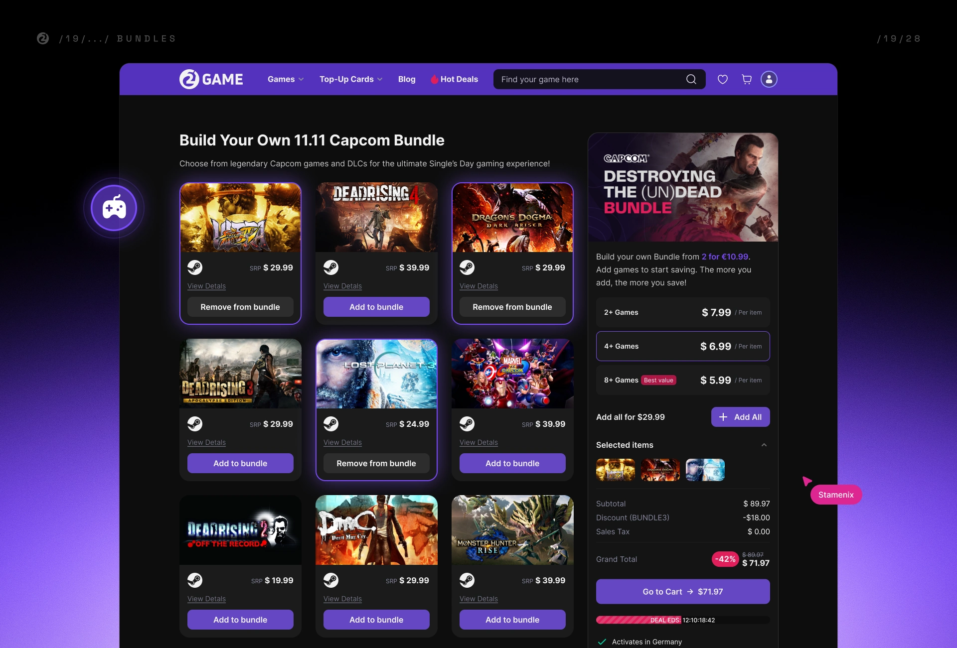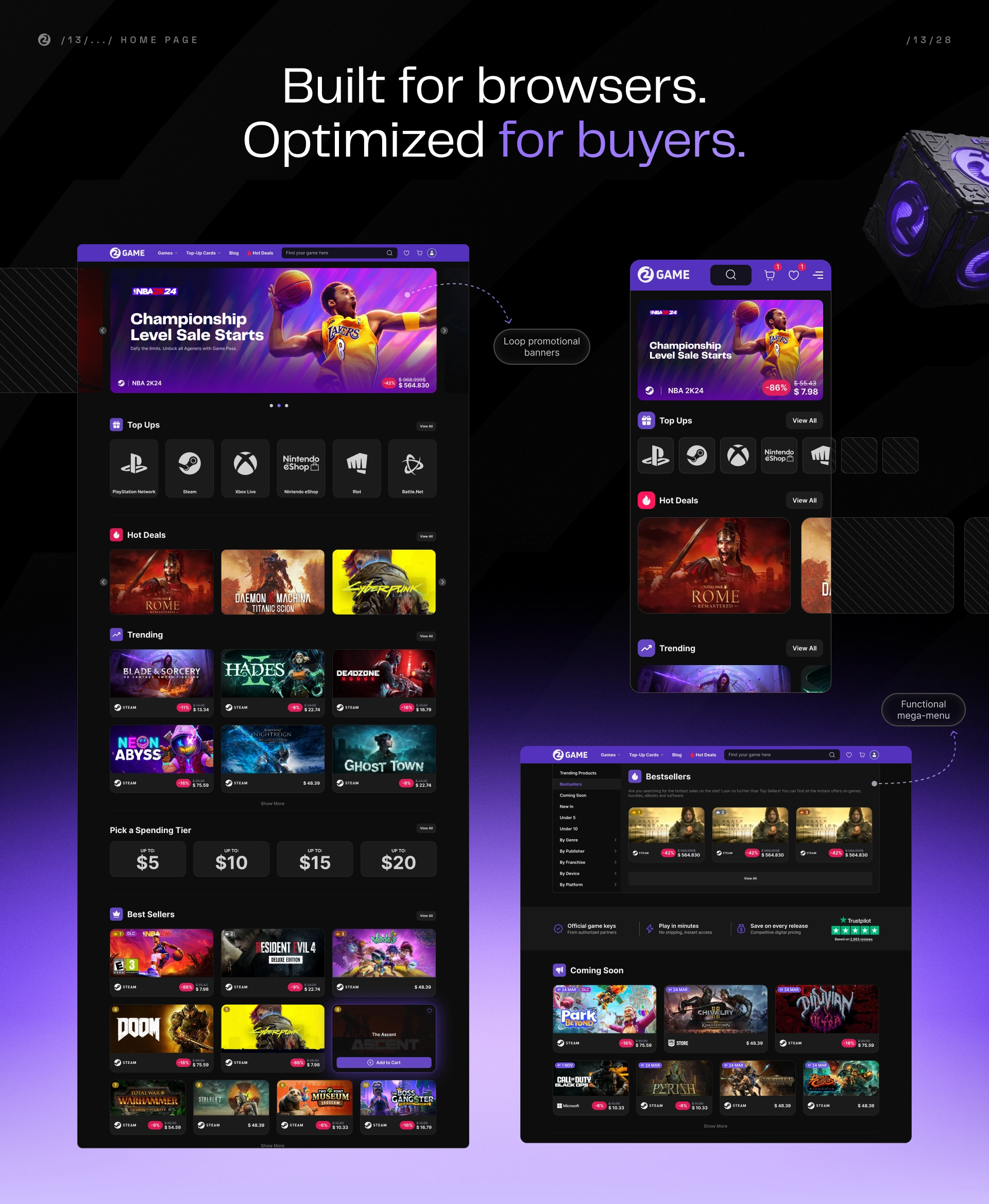 Design a modern, high-trust storefront for a digital game key shop (