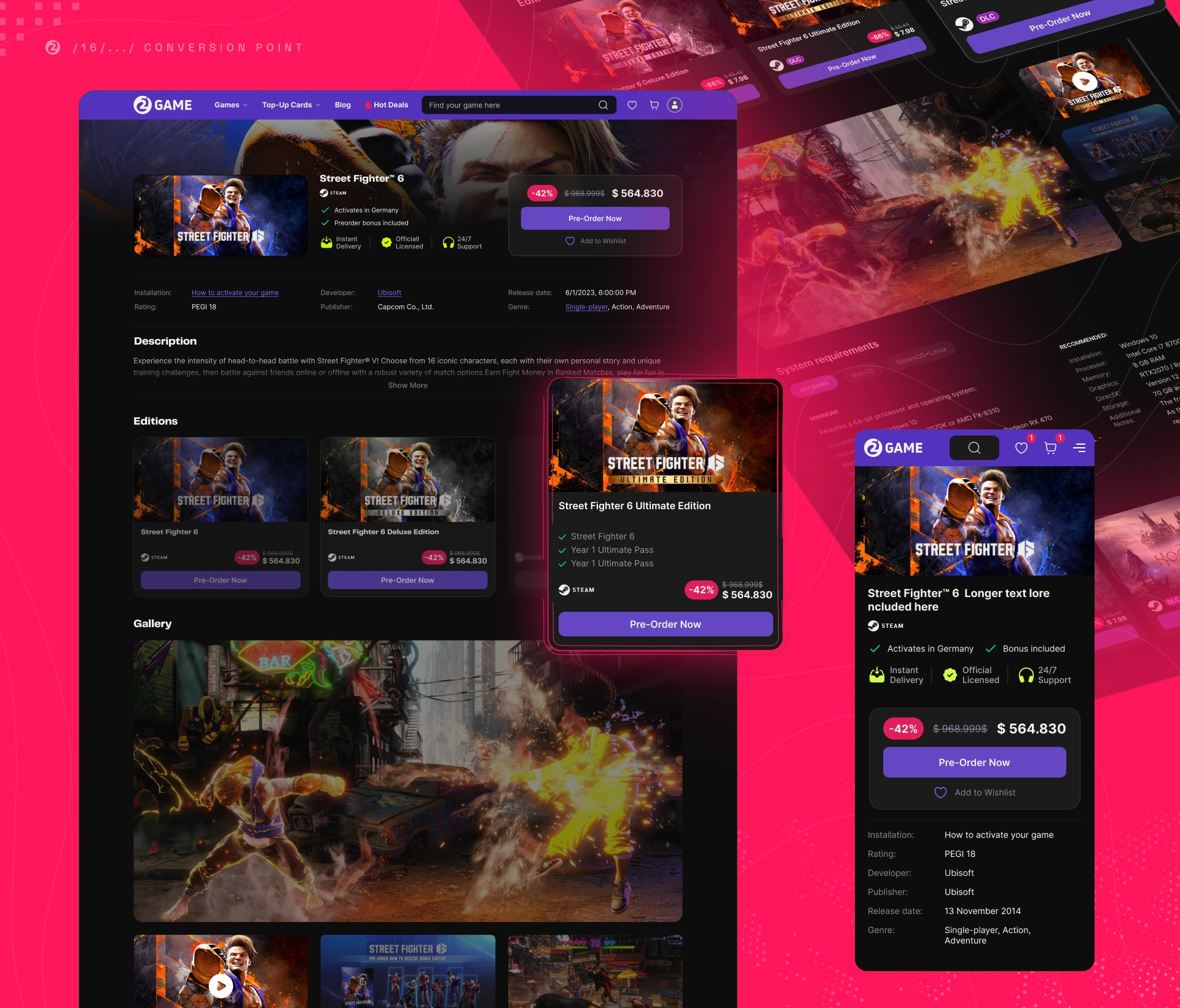 2game.com) where users need to find the right edition fast, feel confident about compatibility, and complete checkout with minimal friction.