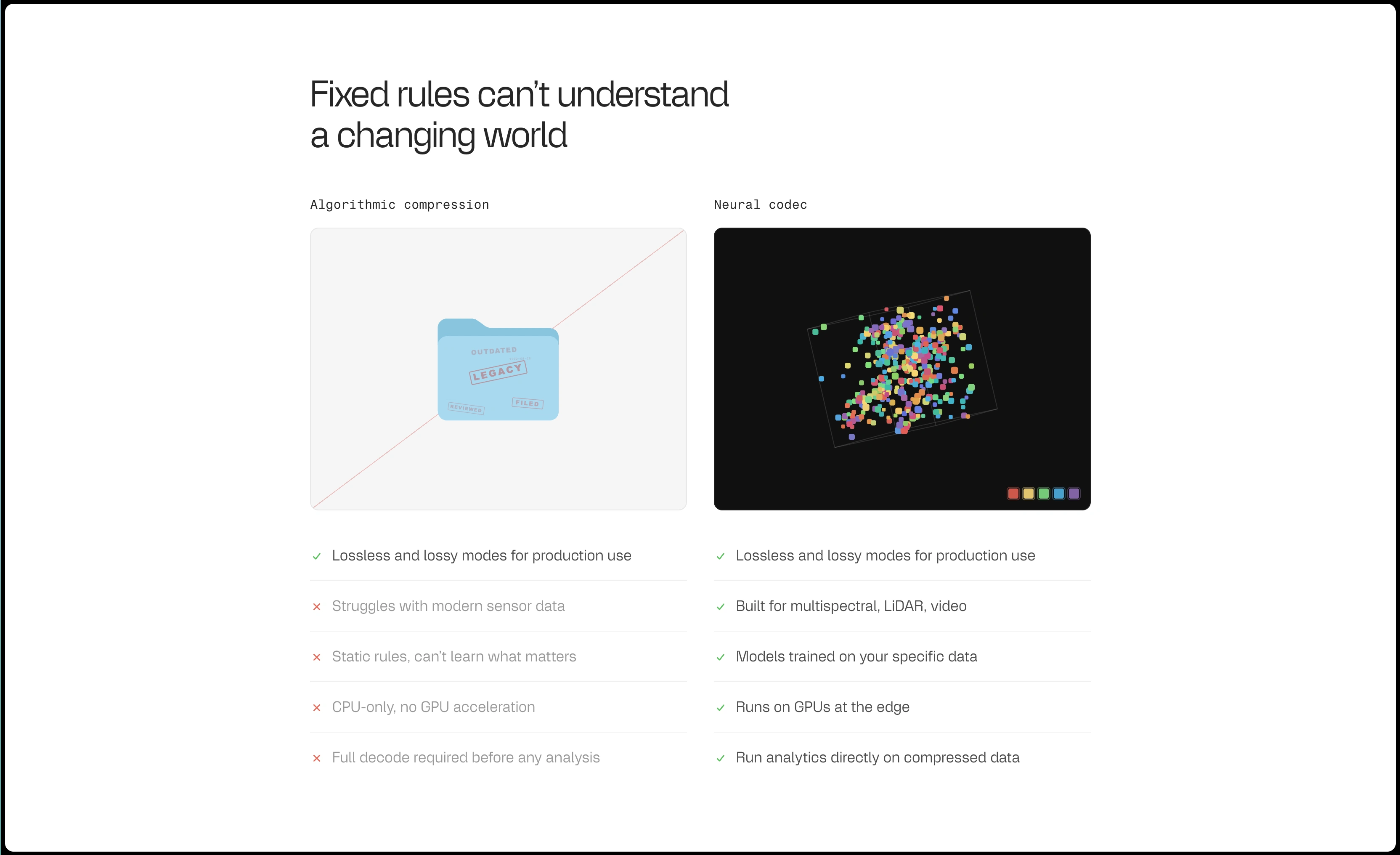Most compression technology competes on the same terms: better codecs, faster speeds, smaller files. The Compression Company was doing something fundamentally different, using neural networks and neuroscience-backed methods to build algorithms that adapt intelligently to the data they're compressing. Their tech stood apart from the crowd (see: in space); their story, less so.