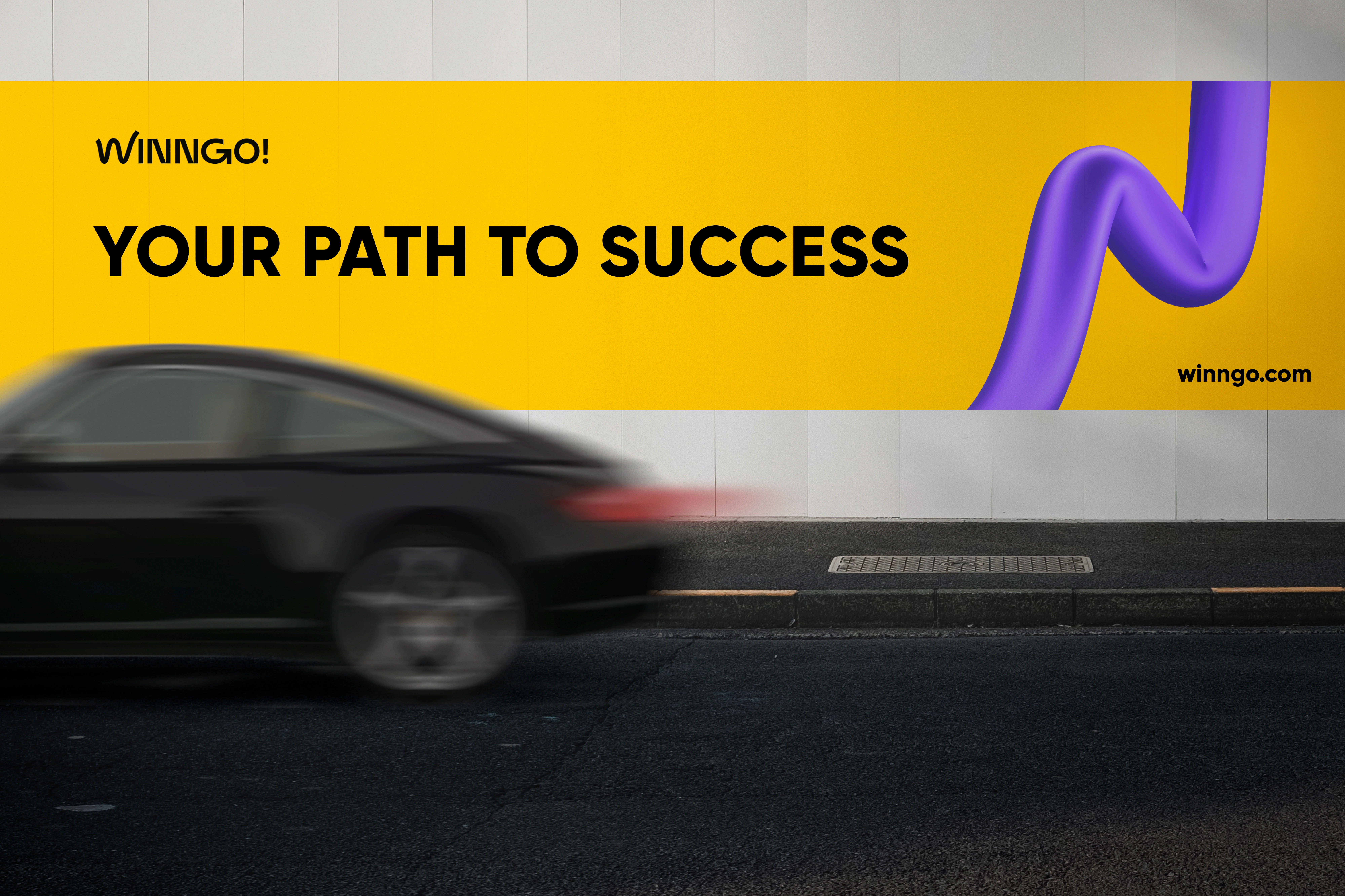 The Winngo logo features a stylized 'W' that transforms into a dynamic road, symbolizing the fast lane of automotive excitement. This upward-trending path represents the progress, growth and success that our winners experience. The slogan encapsulates this ethos: 'Your Path to Success!'.