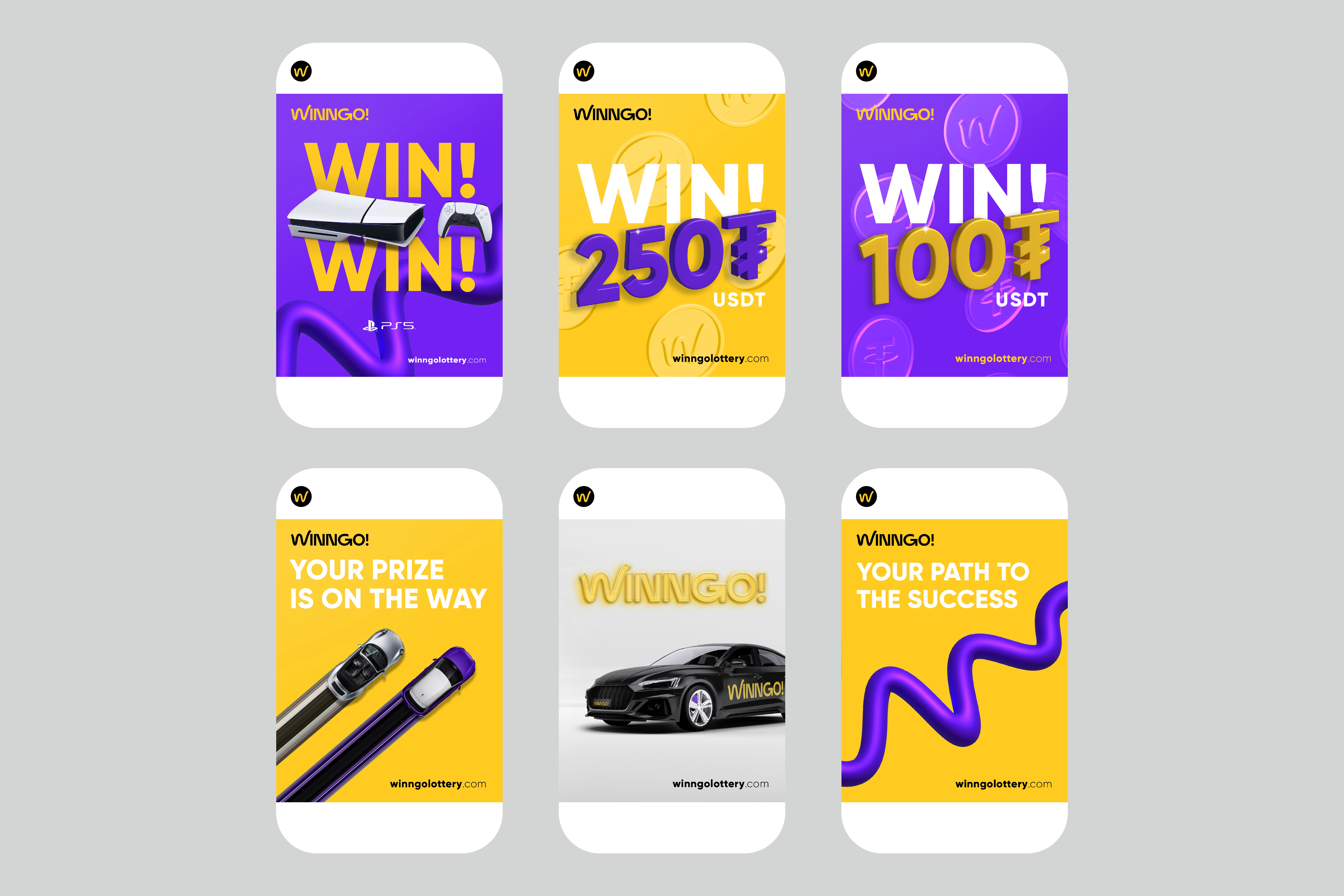 The visual identity utilizes 3D lines, symbolizing the path to victory and a progress line motif. This graphical language conveys the speed and sense of achievement inherent in the Winngo experience. A vibrant color palette is employed, which evokes a sense of energy and dynamism.