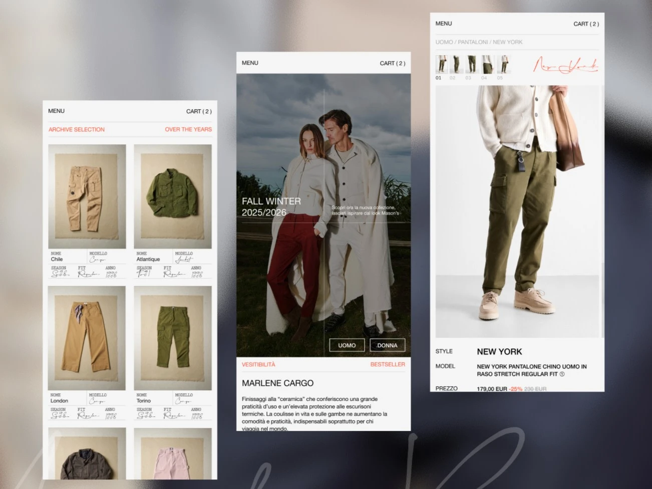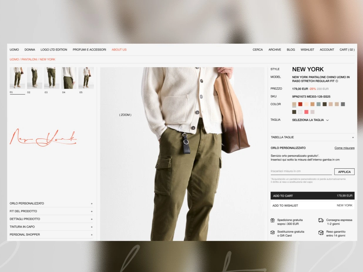 A modern fashion eCommerce website built for a premium clothing brand, focused on delivering a clean, editorial-style shopping experience. The platform was designed to showcase seasonal collections, highlight archive selections, and make product discovery simple across category, collection, and product detail pages.