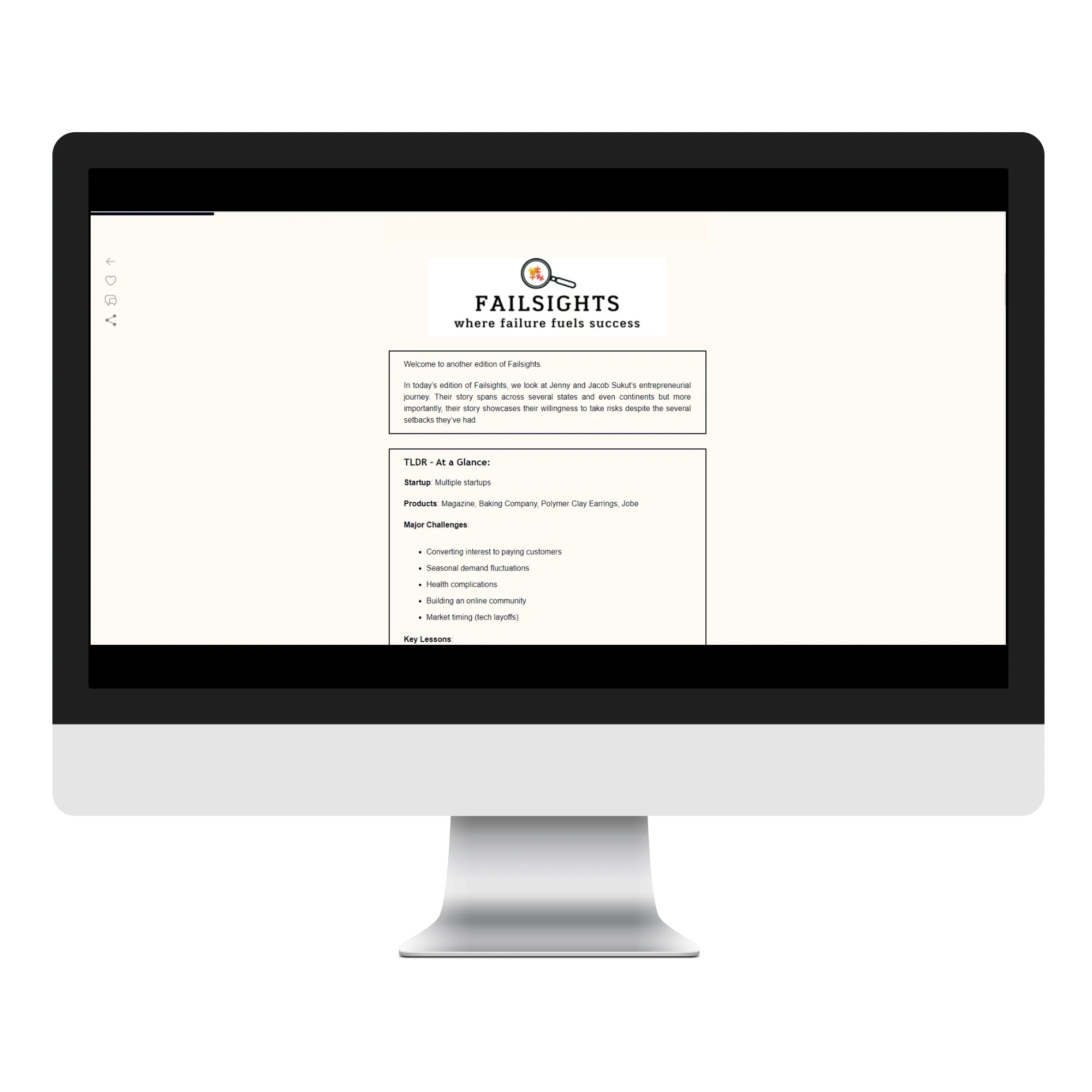 The FailSights Newsletter has quickly gained a following, with readers appreciating the candid and insightful interviews. The simple yet effective design has made it easy for readers to engage with the content, helping the newsletter grow its subscriber base and become a valuable resource for entrepreneurs looking to learn from the failures of others.