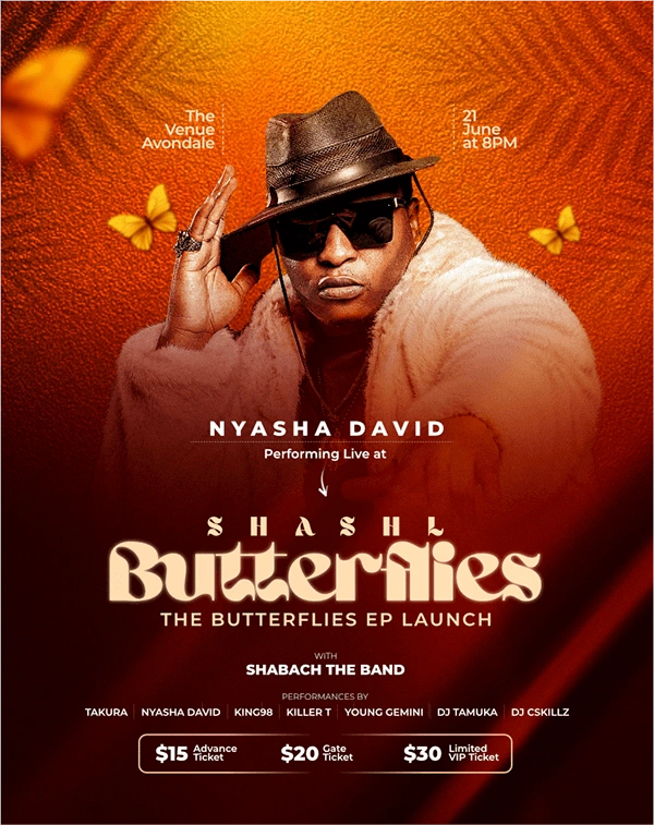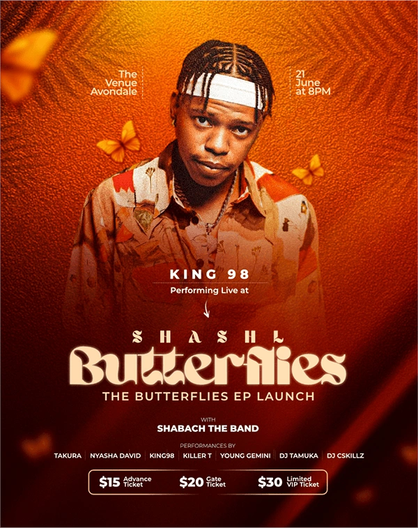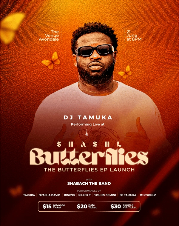 Around mid-June 2024, I gladly took on the poster designs for Shashl's album Butterflies. I chose a vibrant orange as the main color, layering it with textures to give the design warmth and depth. To reflect the album’s theme, I subtly wove butterflies into the flyer, adding a dynamic yet gentle touch. All these elements came together to create a design that not only stands out but also captures the theme of the album