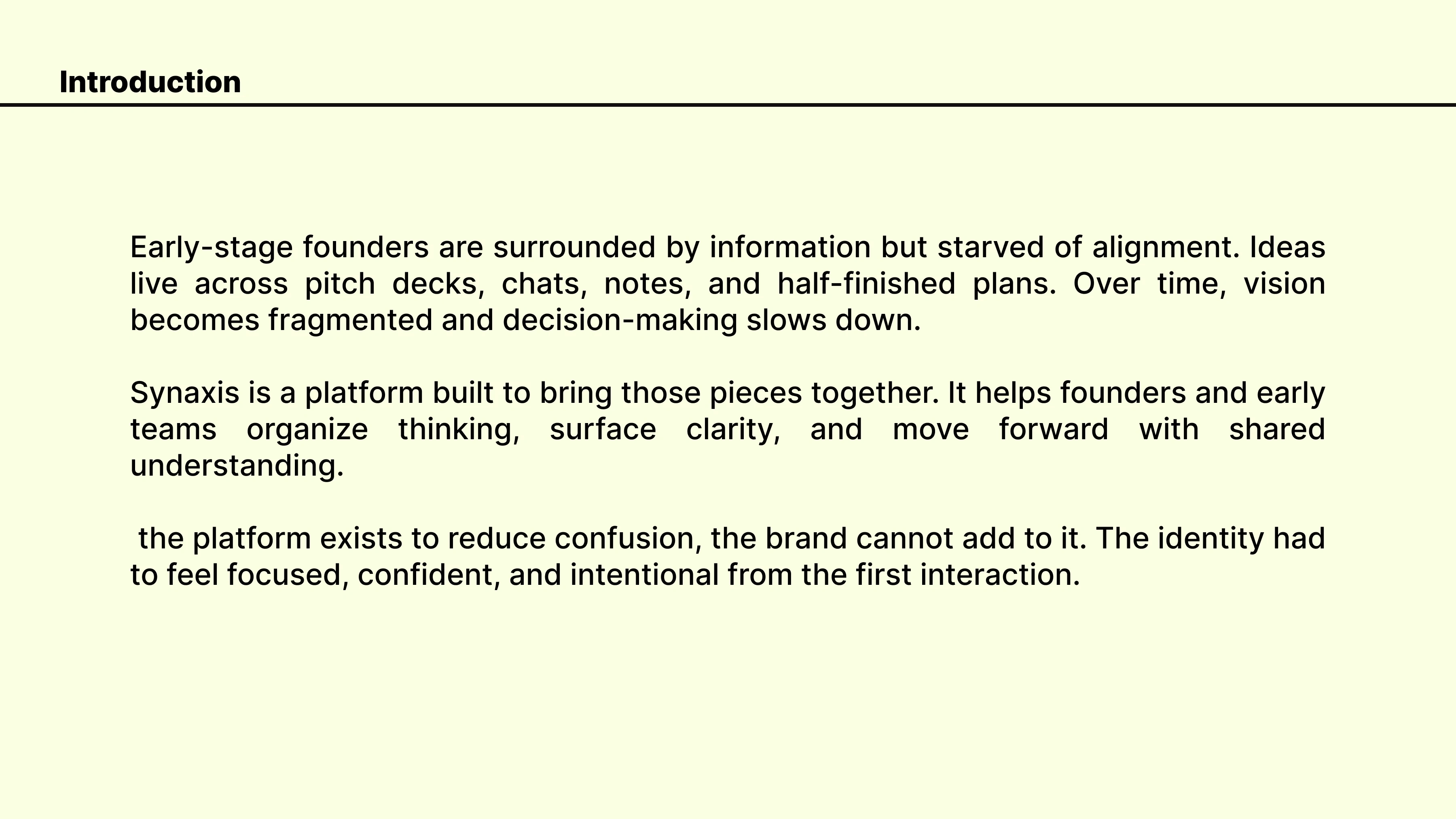 A case study on the Synaxis brand system and logo, designed to help early-stage founders reduce noise, clarify ideas, and create a focused, cohesive visual and…