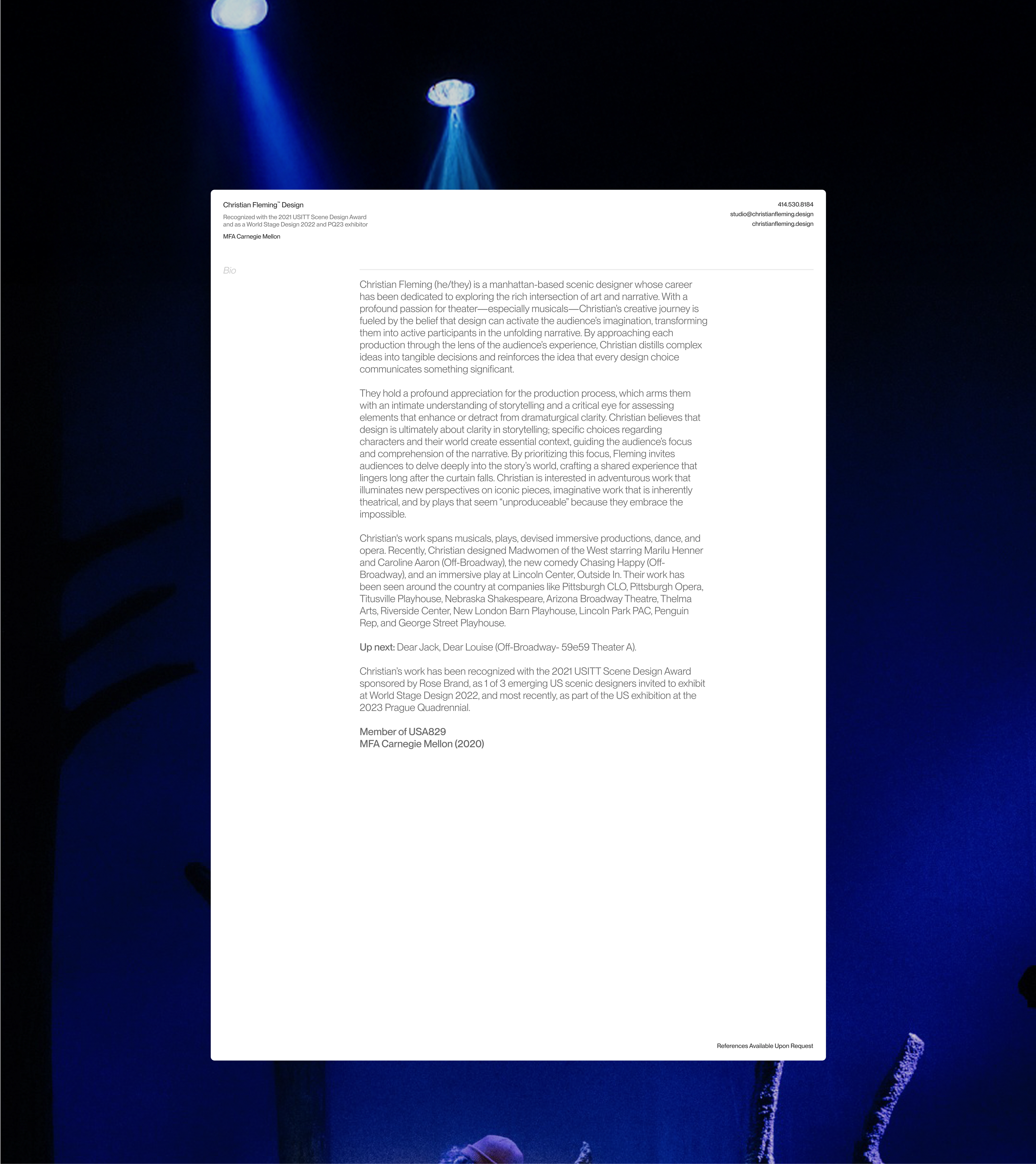Christian Fleming Design™NYC-based set and costume designer interested in adventurous work that illuminates new perspectives on iconic pieces, imaginative work…