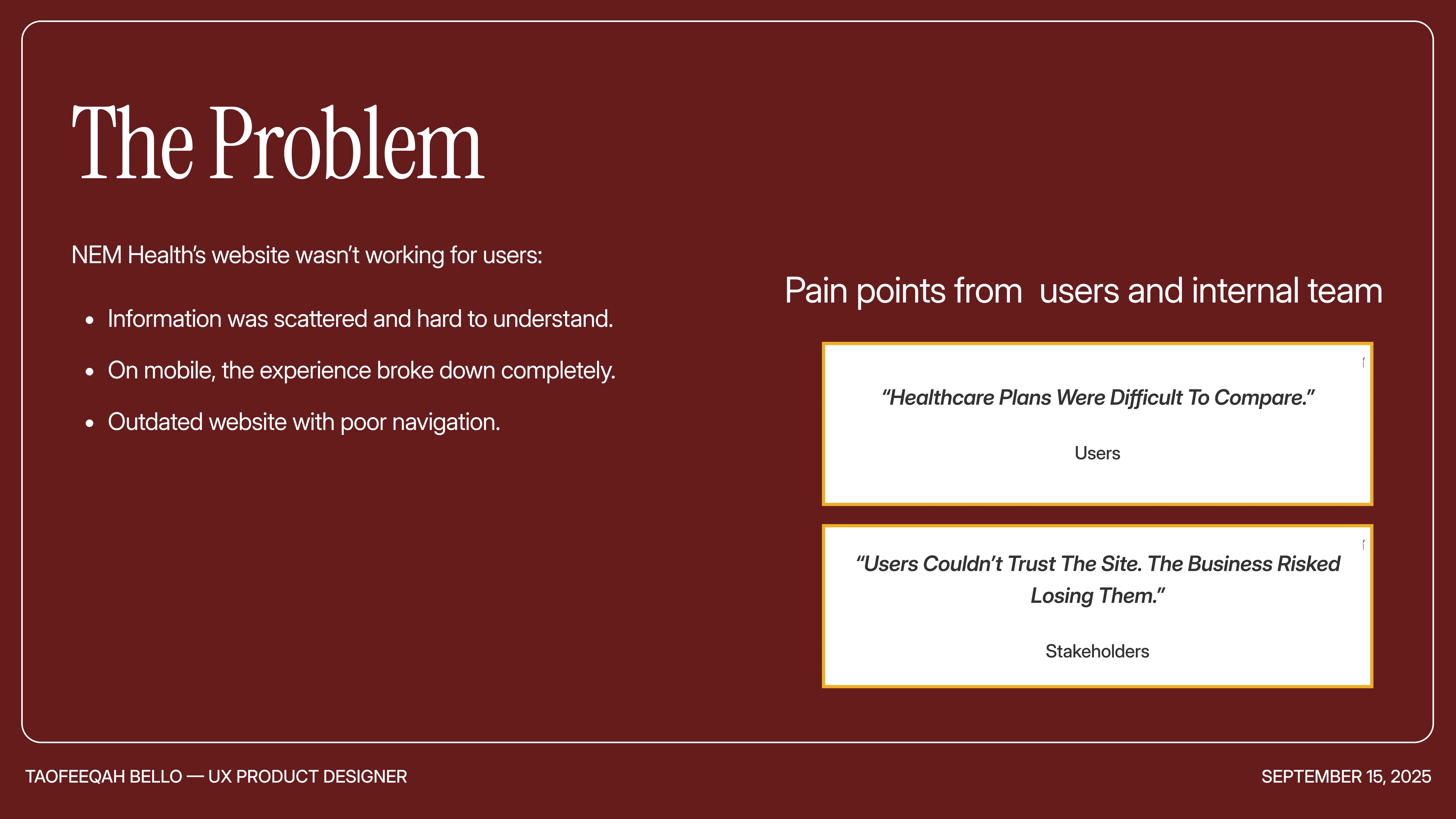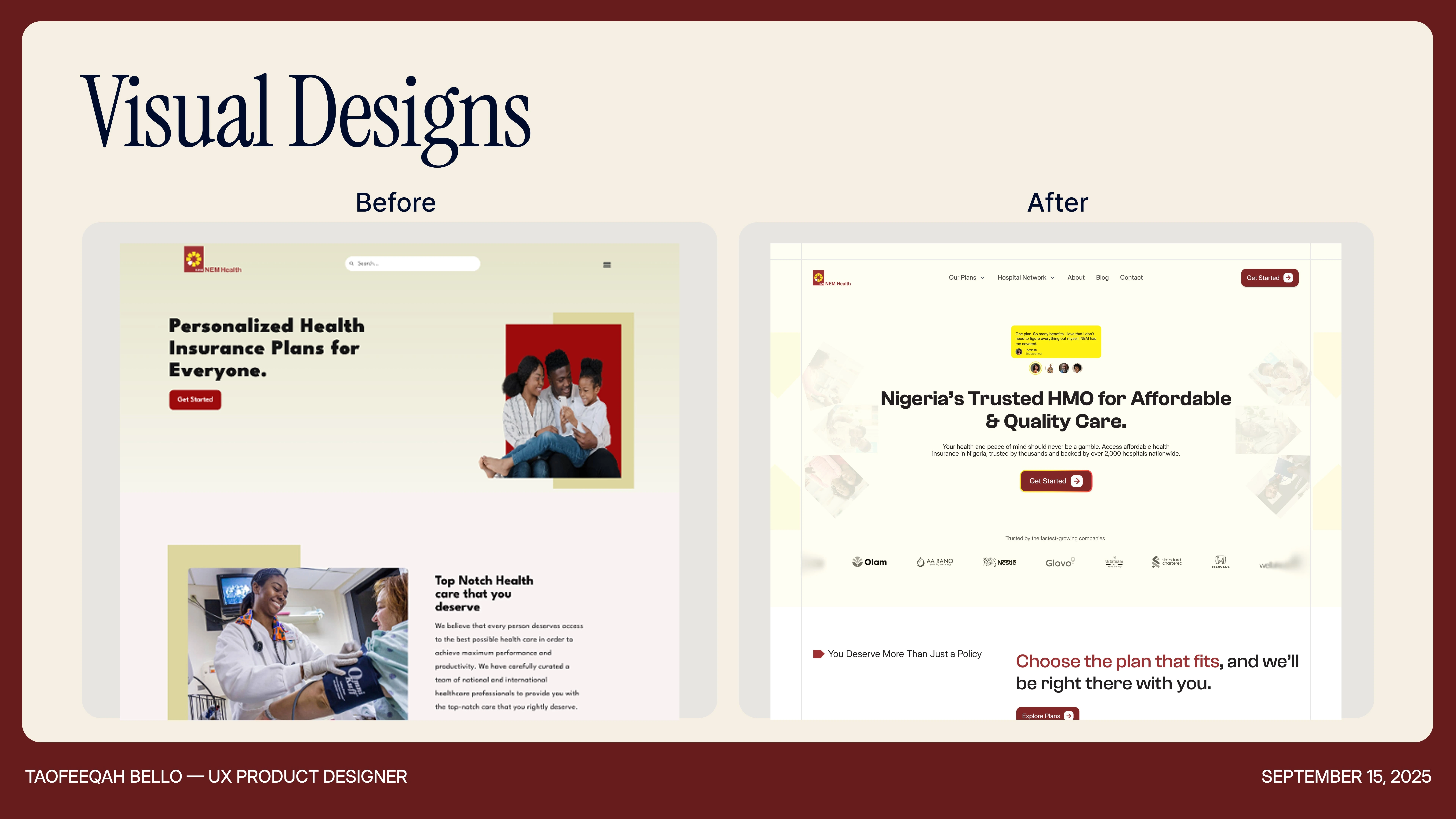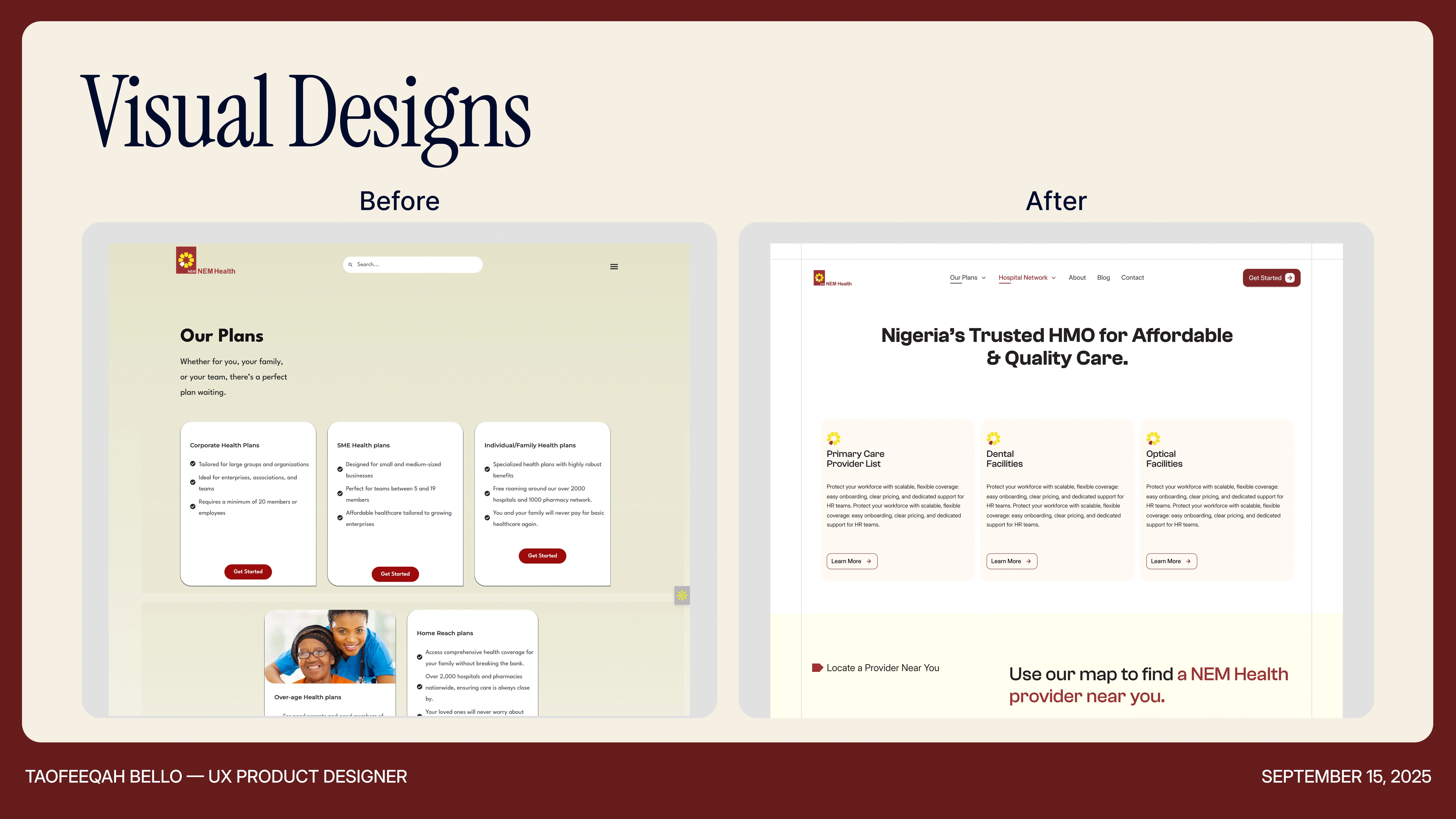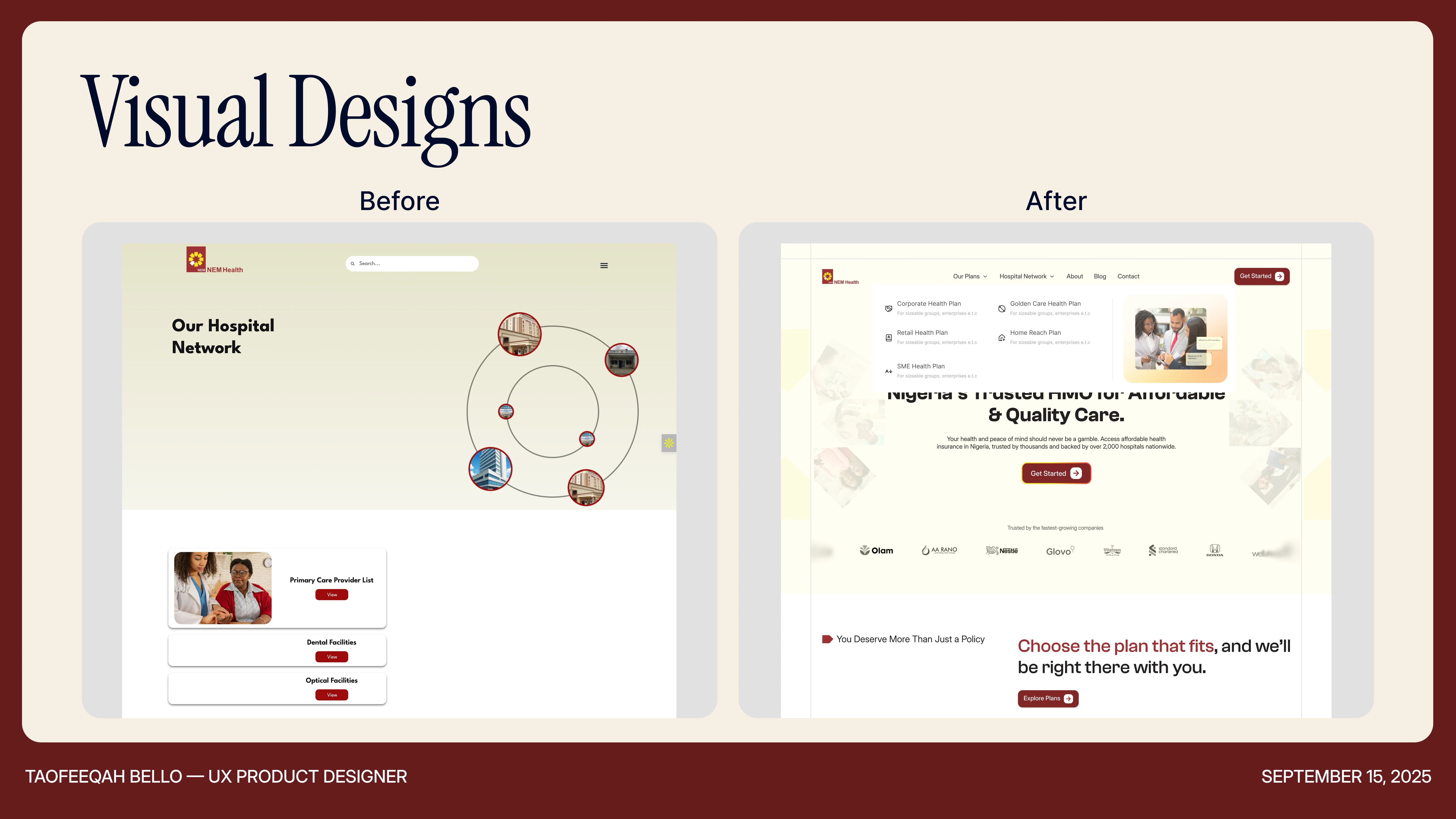Redesigned NEM Health's website in 3 weeks; modern, mobile-first, with clear IA and scalable design system, improving trust and access globally.