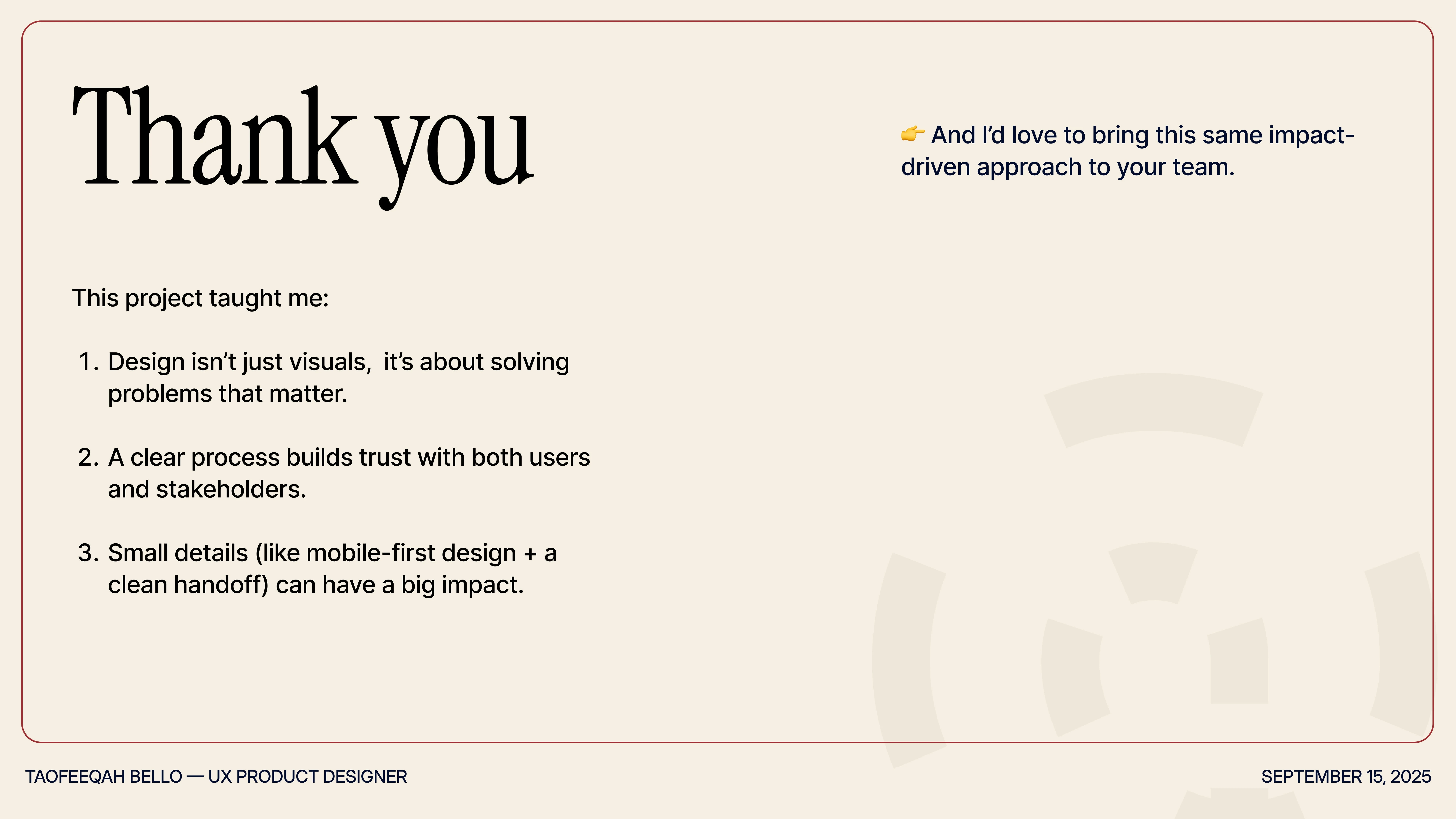 Consistency achieved: Established a scalable design system with reusable components, reducing future design/development time by ~30%