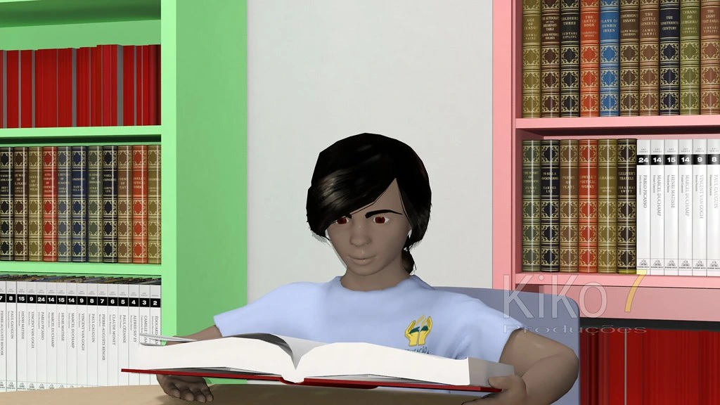 For example, in the library I thought it would be interesting to have a student reading. Notice that the girl is wearing her school uniform.