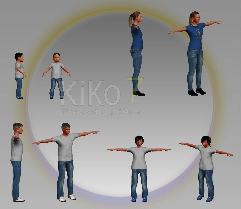 I modeled the characters in MakeHuman and then changed the textures of the clothes.