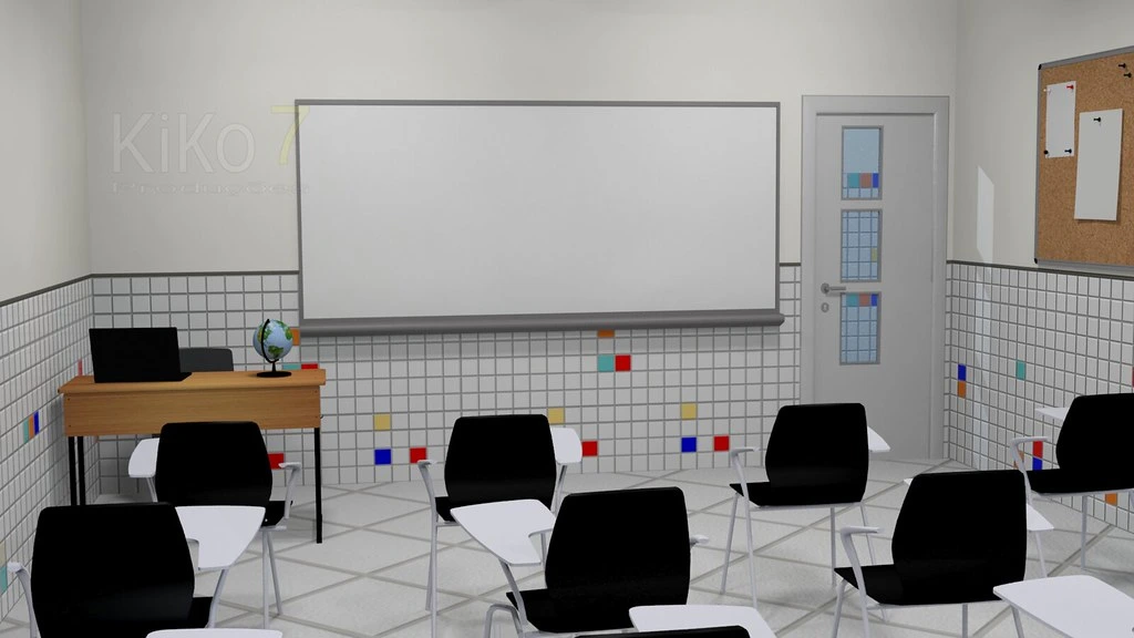 The Adventist School classrooms have video projectors, creating an interactive whiteboard. This feature can be quickly seen in the animation. Below is just the general plan of what a high school classroom could be.