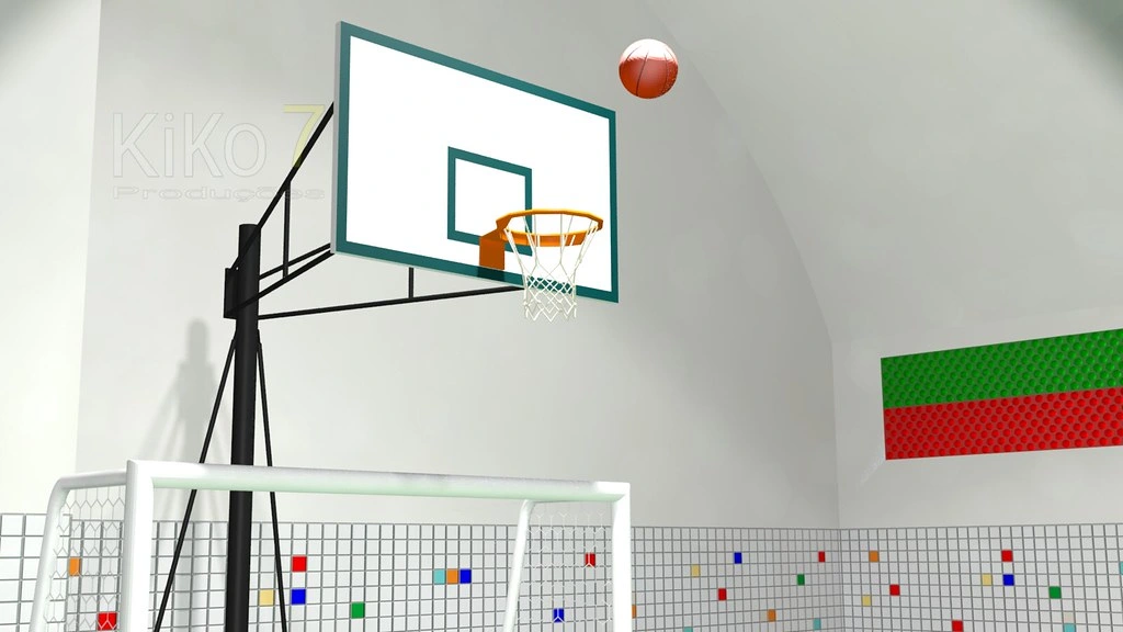 To make the multi-sports court scene more interesting, I made this animation of a ball passing through the basket.