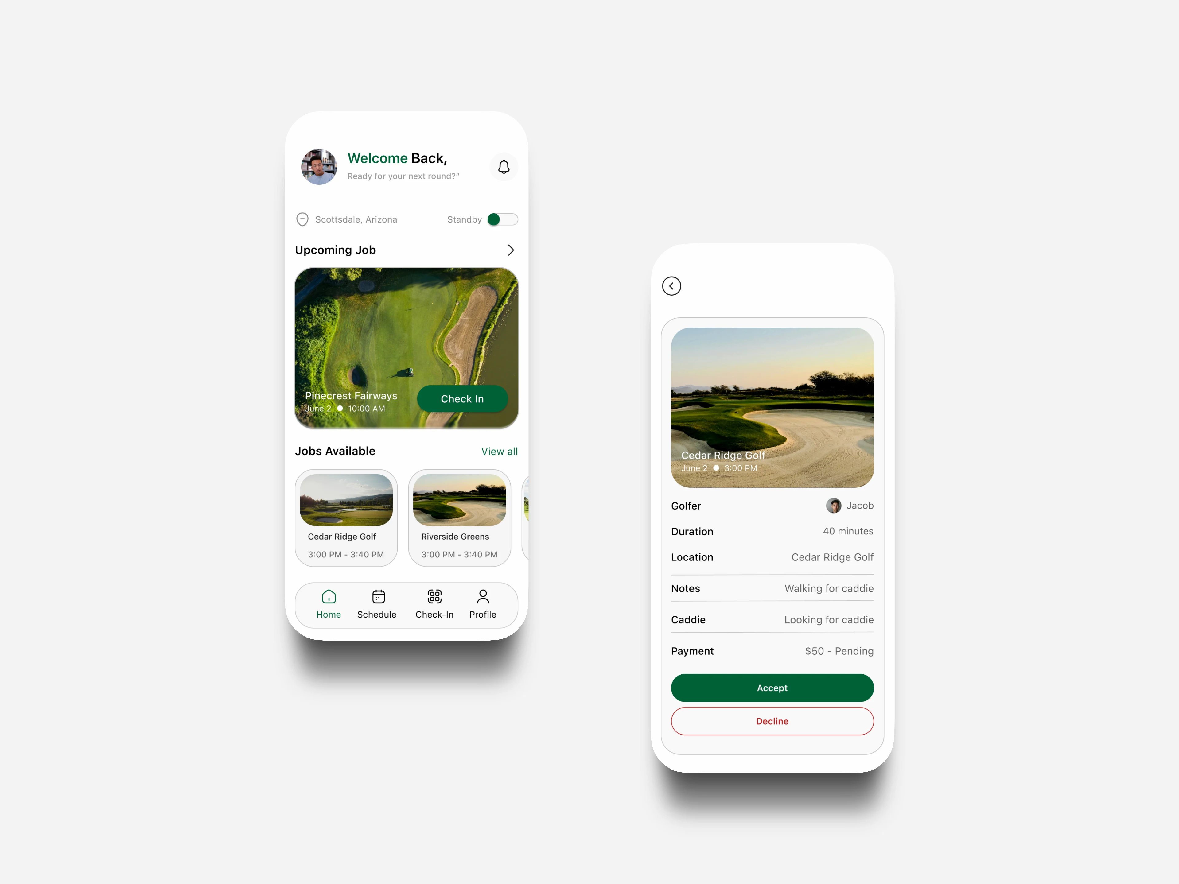 Schedflow is a mobile-first app built to streamline how golf clubs assign and manage caddie jobs. From QR code check-ins to real-time standby updates, the app helps both administrators and caddies stay in sync without the usual chaos of spreadsheets or last-minute texts.