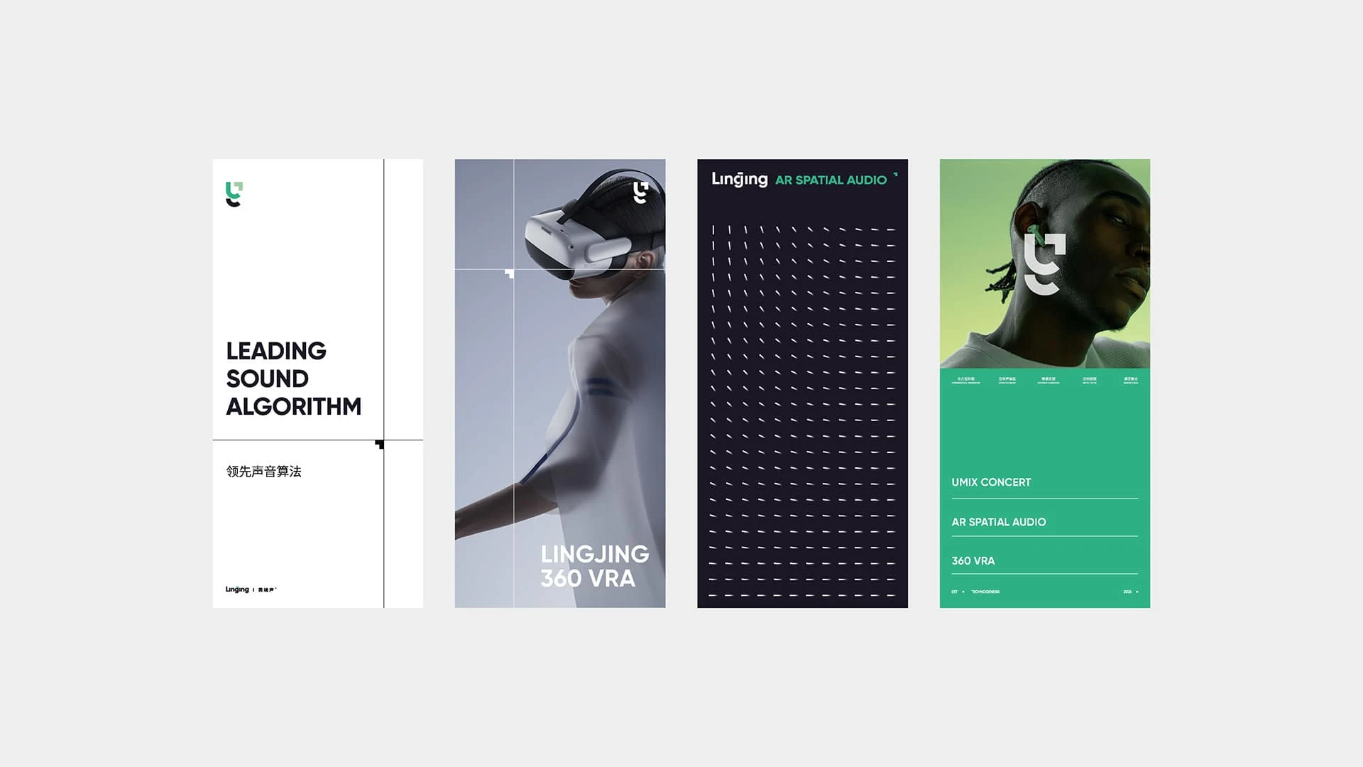 The design concept of the spiritual sound logo integrates immersive and virtual sense, bringing users an immersive experience, and cleverly integrating virtual and reality, so that users can feel the sound world beyond reality.An immersive experience, the arrow symbol in the logo represents direction and orientation, leading the user into an immersive sound experience journey. Through the virtual and real extension of the lines, the logo creates a sense of space and three-dimensional, so that users feel as if they are in the virtual space of sound, and feel the 720 degree surround sound effect in an all-round way, creating an immersive experience.