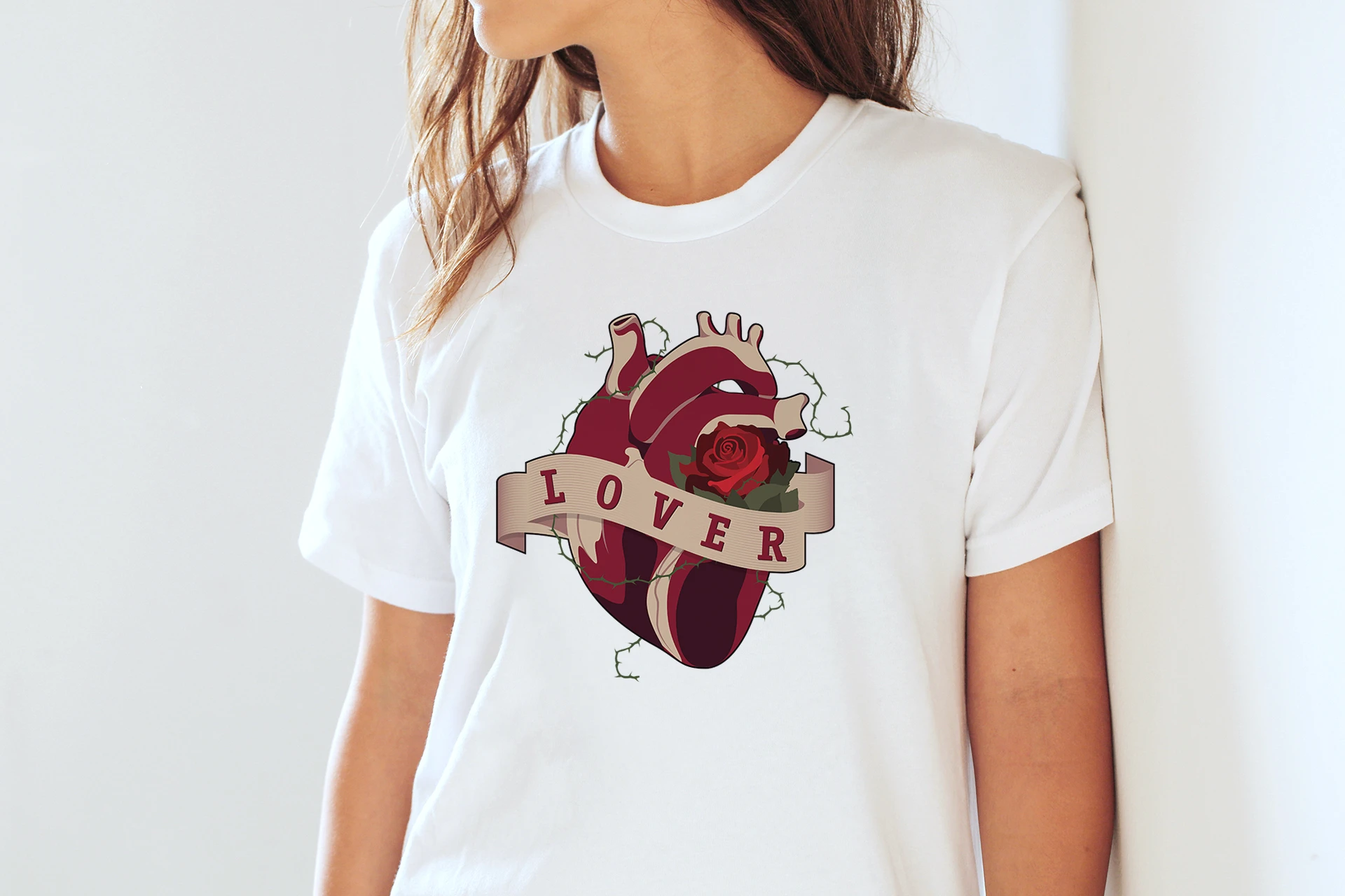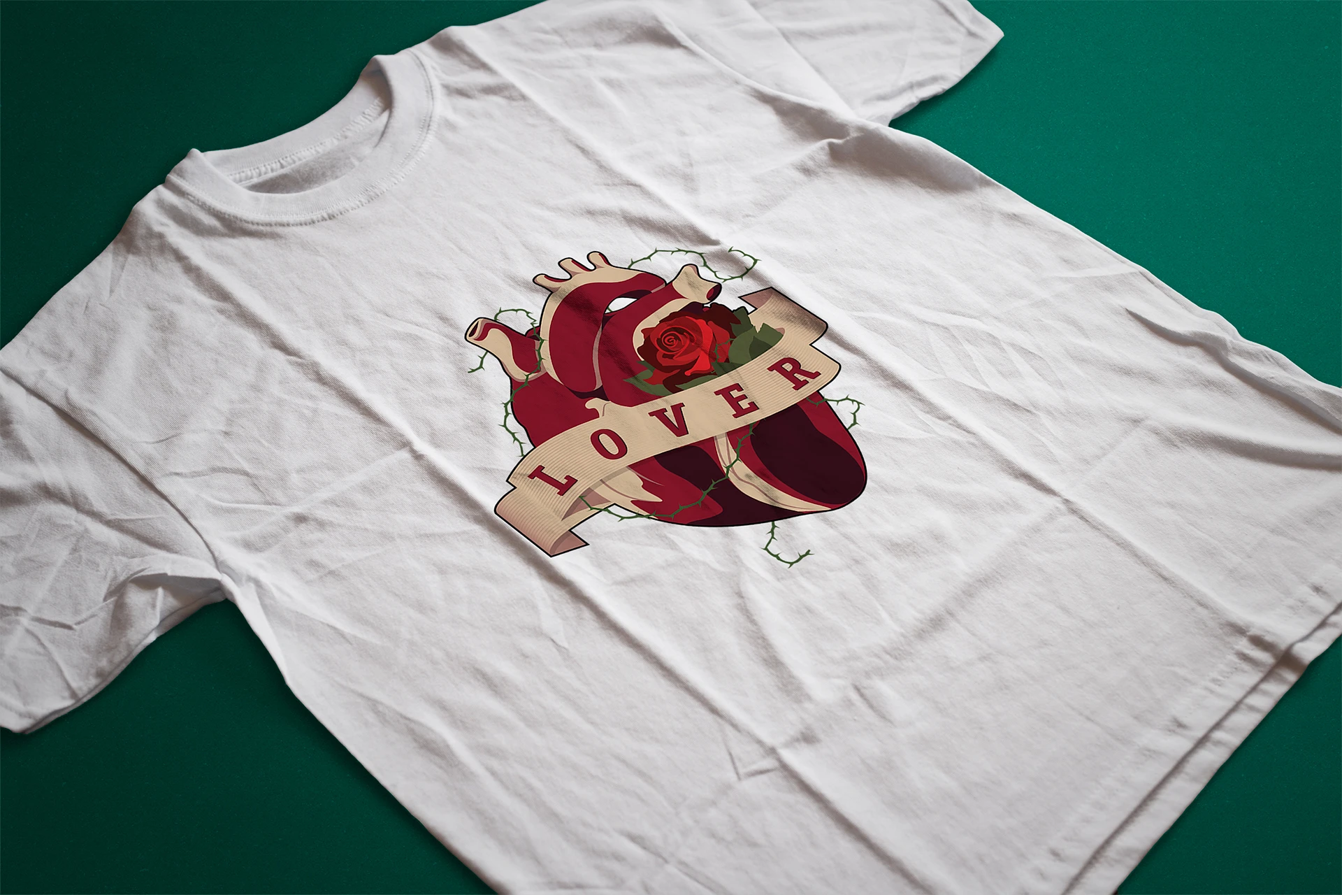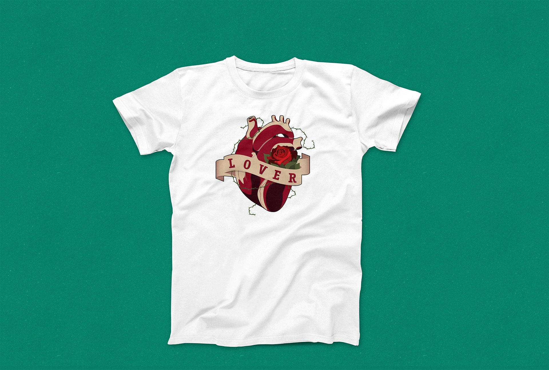 After I hand-sketched the design, I vectorized the whole thing inside Adobe Illustrator to produce a clean and scalable illustration. Careful attention was given to anatomical accuracy, texture balance, and color symbolism. I wanted it to feel structured and accurate, but still work as a bold graphic, especially for apparel. The thorns came in as a way to add tension and texture. I cleaned everything up in Illustrator, focused on line consistency, and made sure the composition stayed balanced once it was placed on the shirt.