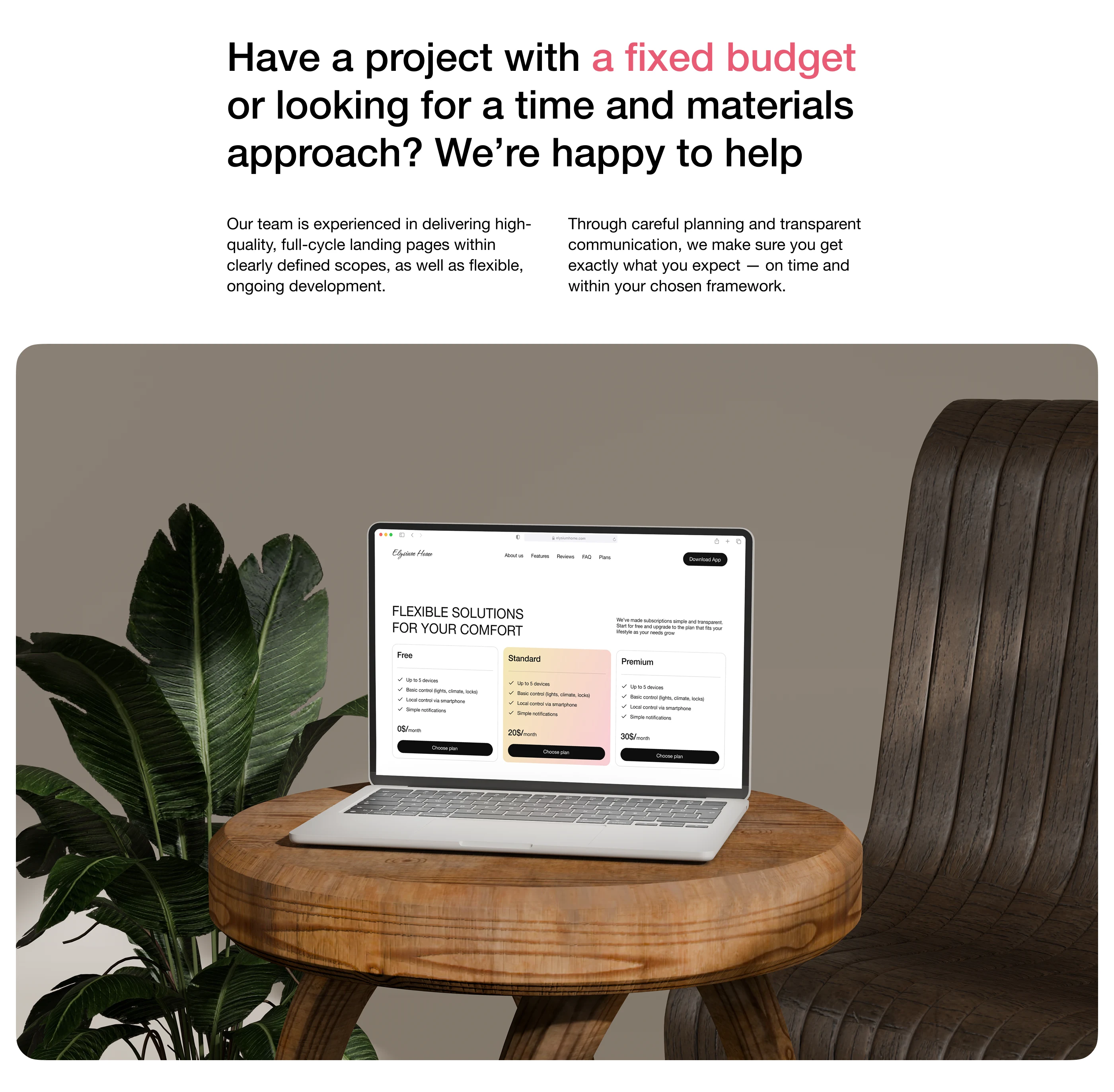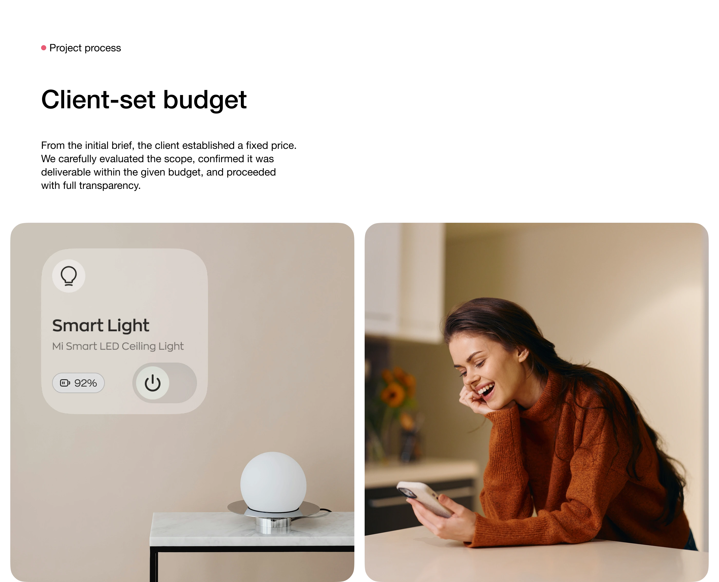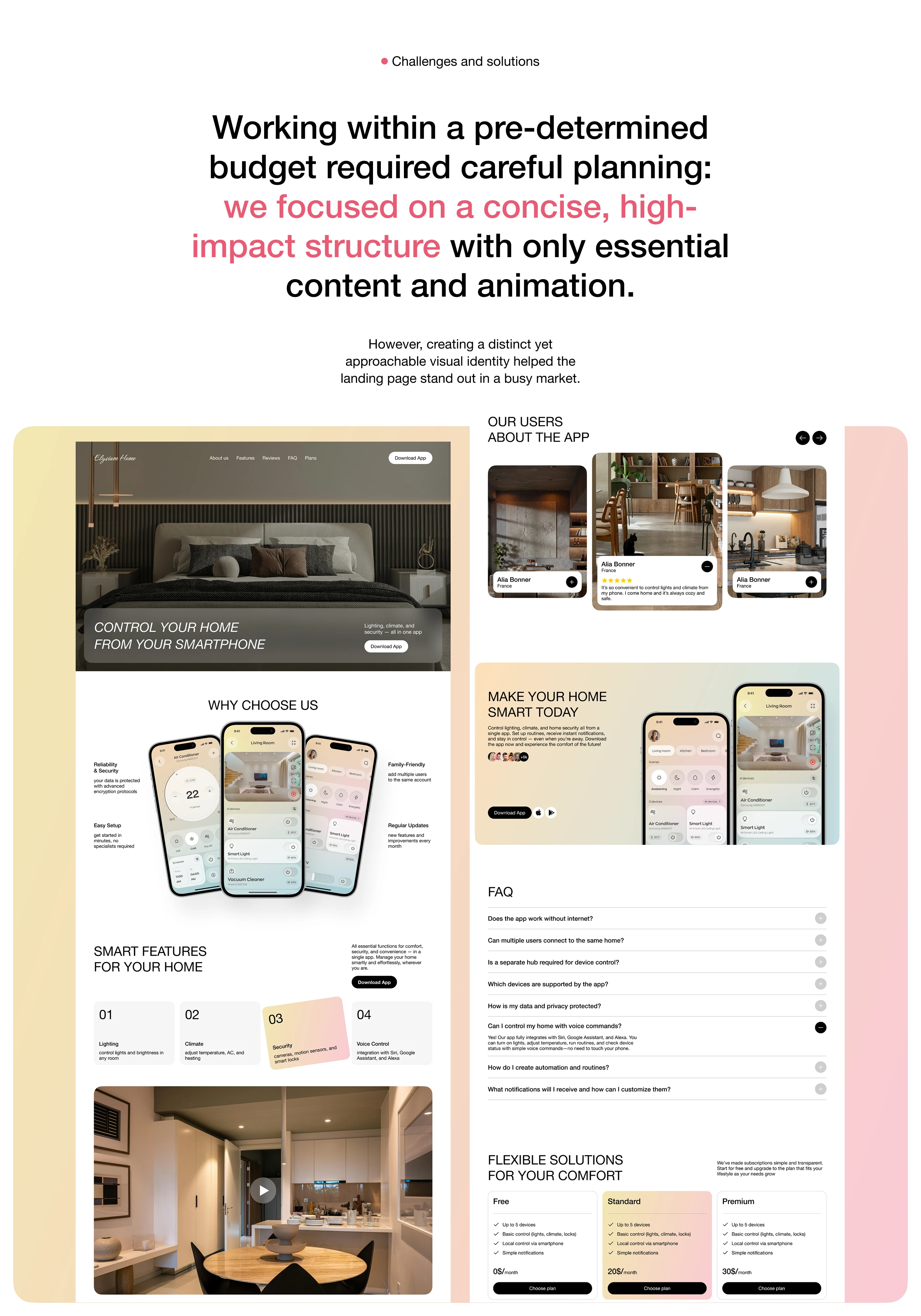 Ronas IT delivered a high-converting fixed-price landing page for an innovative smart home superapp. Our team provided end-to-end UI/UX design and responsive web development using Next.js, ensuring a pixel-perfect and engaging introduction to the product. This project highlights our expertise in delivering high-quality landing page design and web development within strict budget and timeline constraints. The responsive solution effectively showcases the superapp's benefits, helping our client generate early leads and establish a strong online presence for their smart home solution.