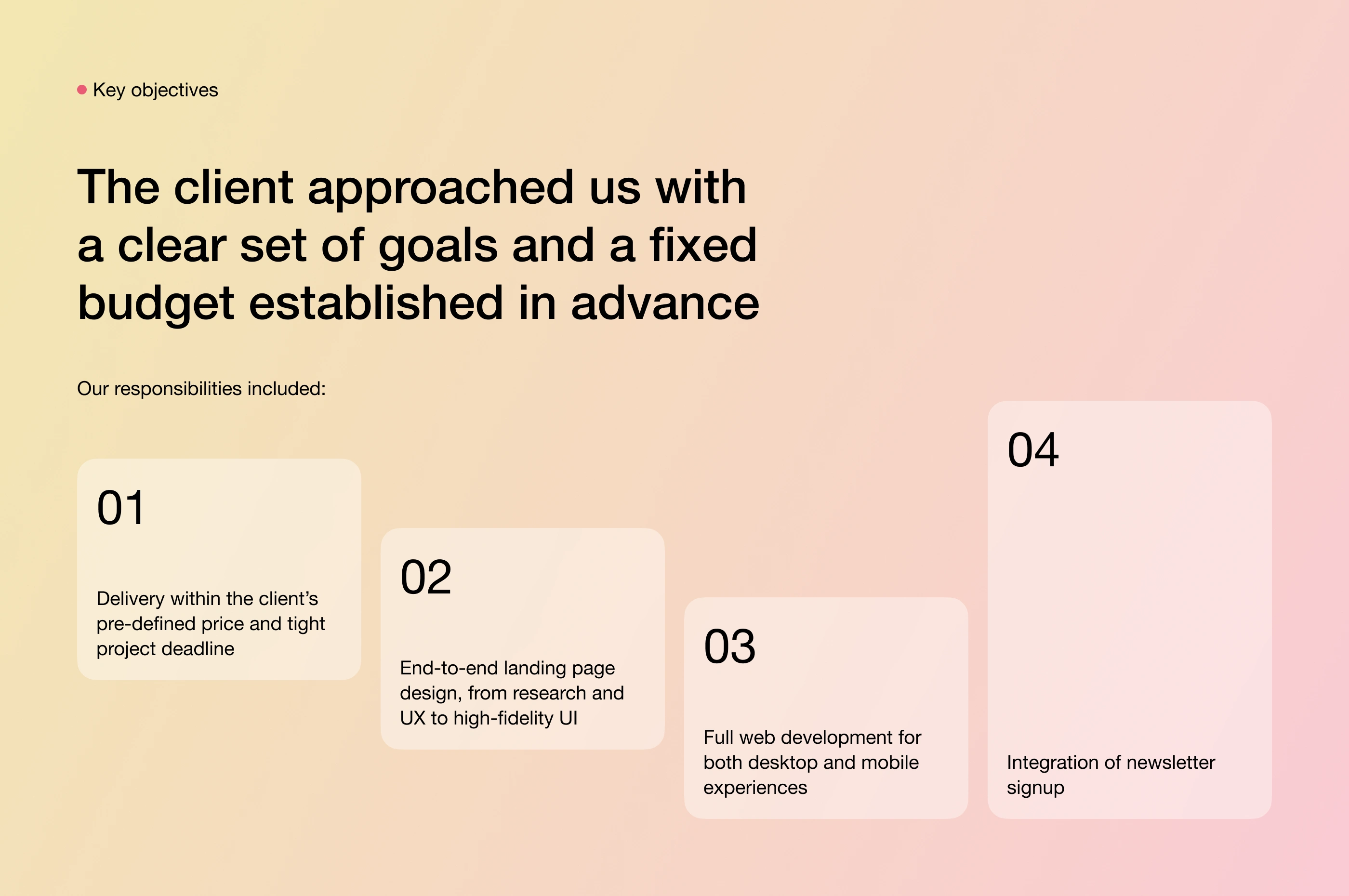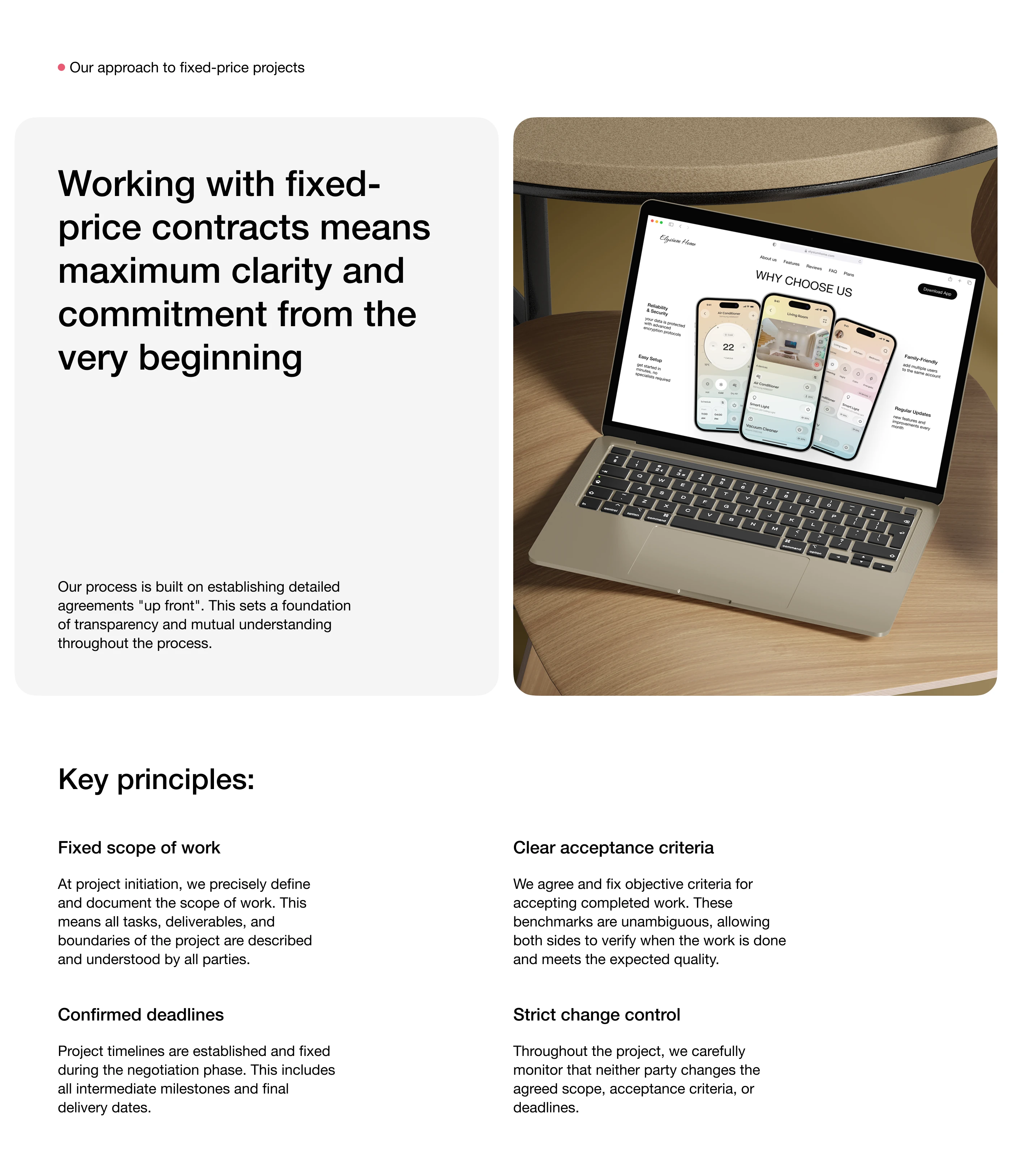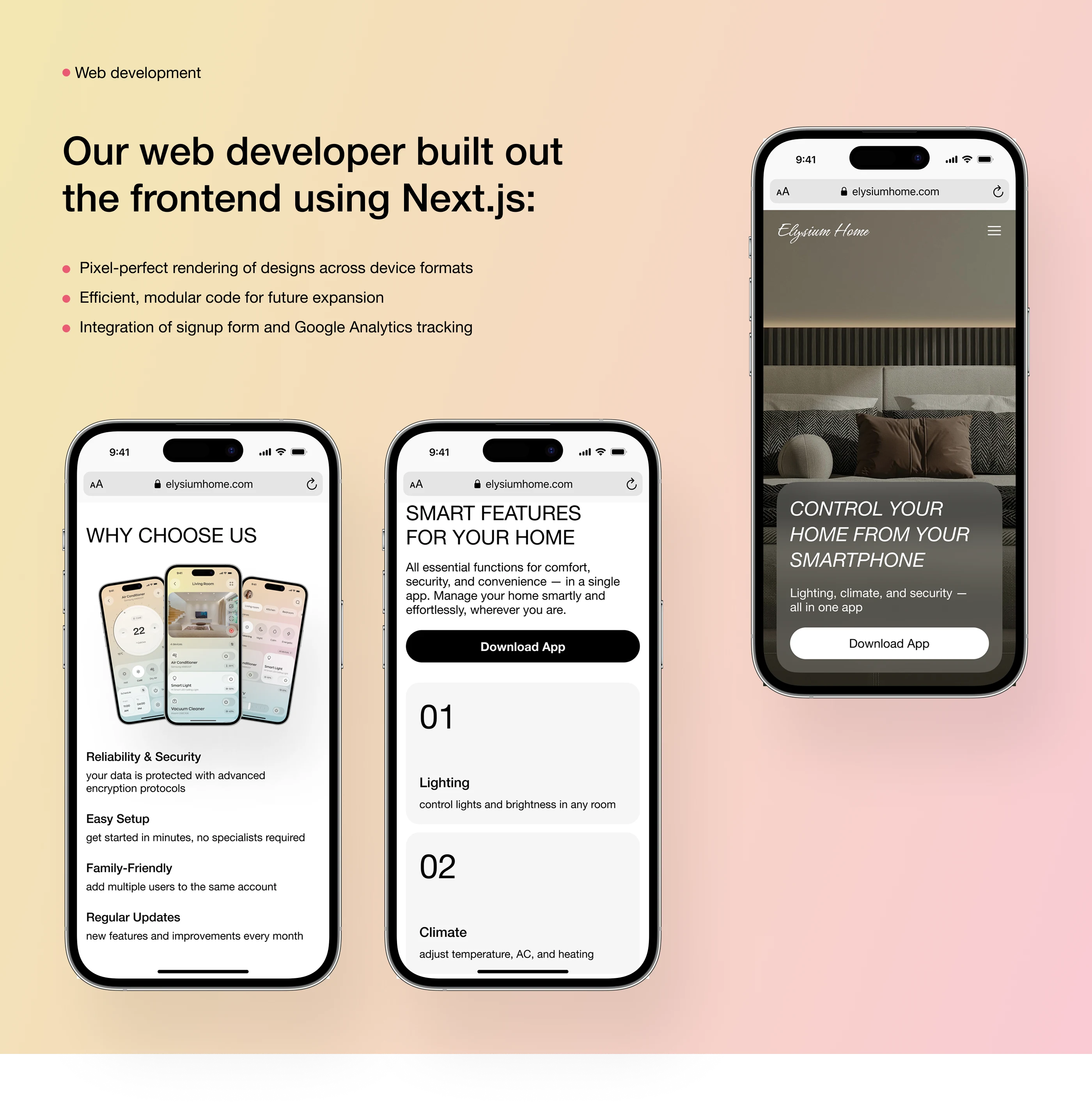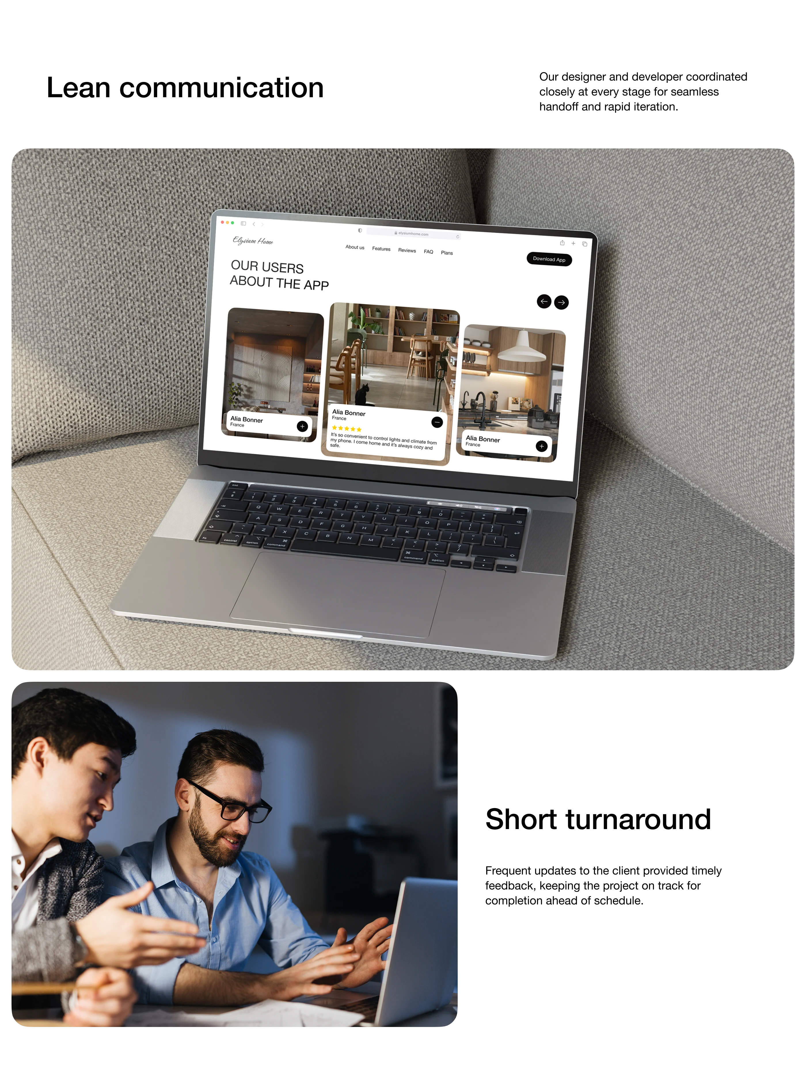 Ronas IT delivered a high-converting fixed-price landing page for an innovative smart home superapp. Our team provided end-to-end UI/UX design and responsive web development using Next.js, ensuring a pixel-perfect and engaging introduction to the product. This project highlights our expertise in delivering high-quality landing page design and web development within strict budget and timeline constraints. The responsive solution effectively showcases the superapp's benefits, helping our client generate early leads and establish a strong online presence for their smart home solution.