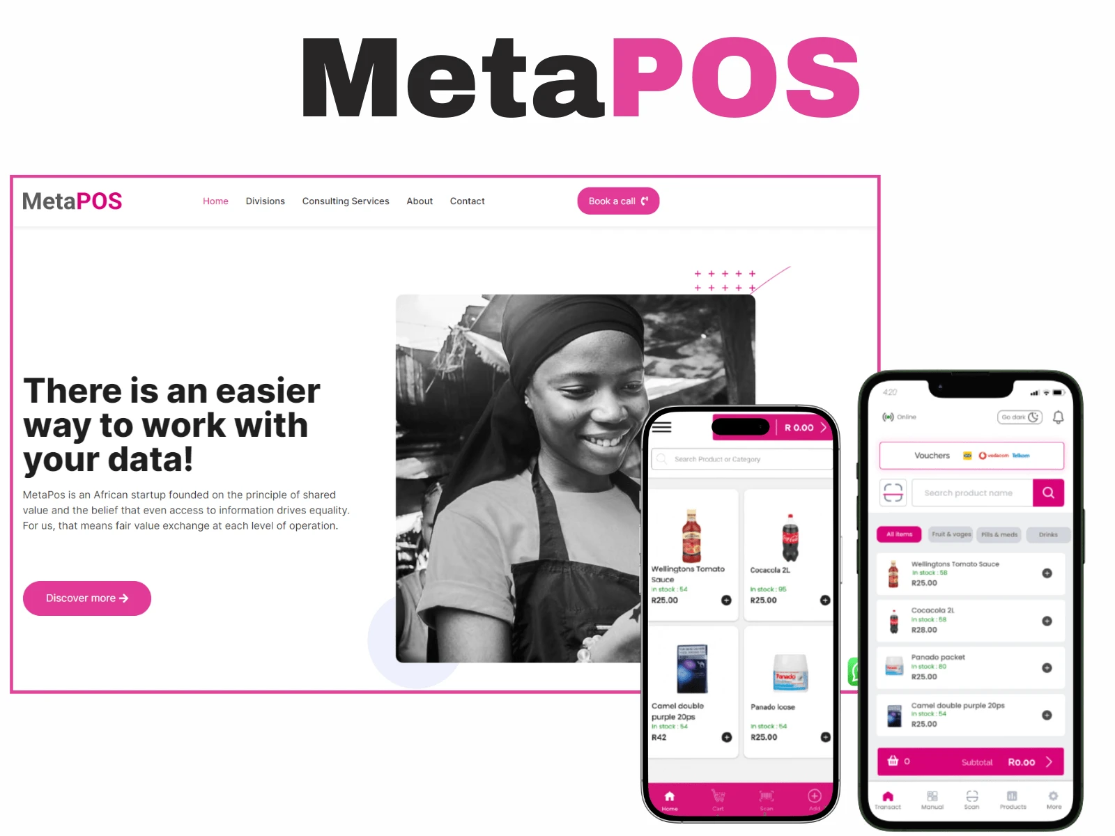 MetaPOS is a two-part point of sale system developed for WOPL (Pty) Ltd, designed to streamline retail operations through a combination of mobile and web-based technologies. The system consists of a mobile Android application for frontline sales and a web dashboard for administrative and analytical functions.