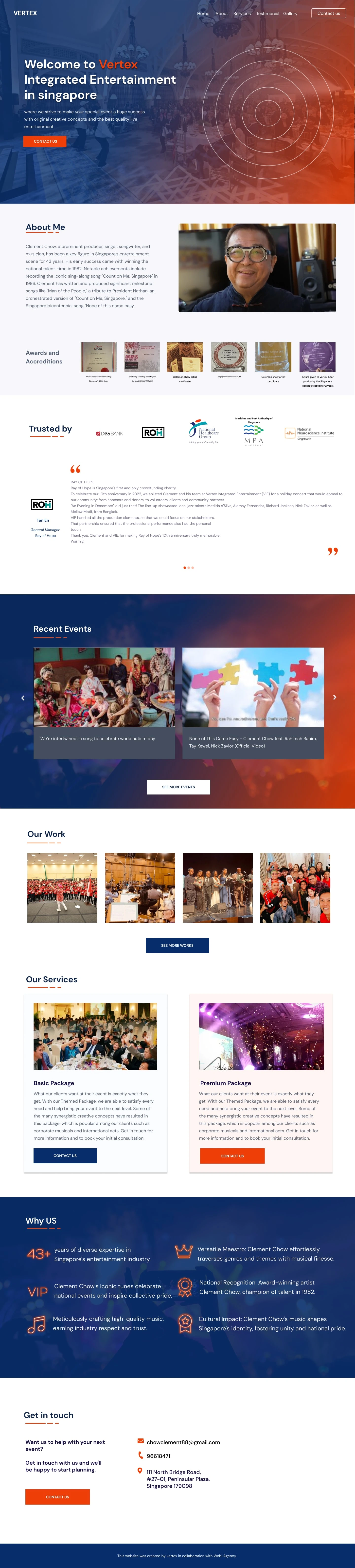Challenge: We partnered with Vertex, an integrated entertainment company based in Singapore, to create a comprehensive website using WordPress and Elementor, encompassing all aspects of their services.
