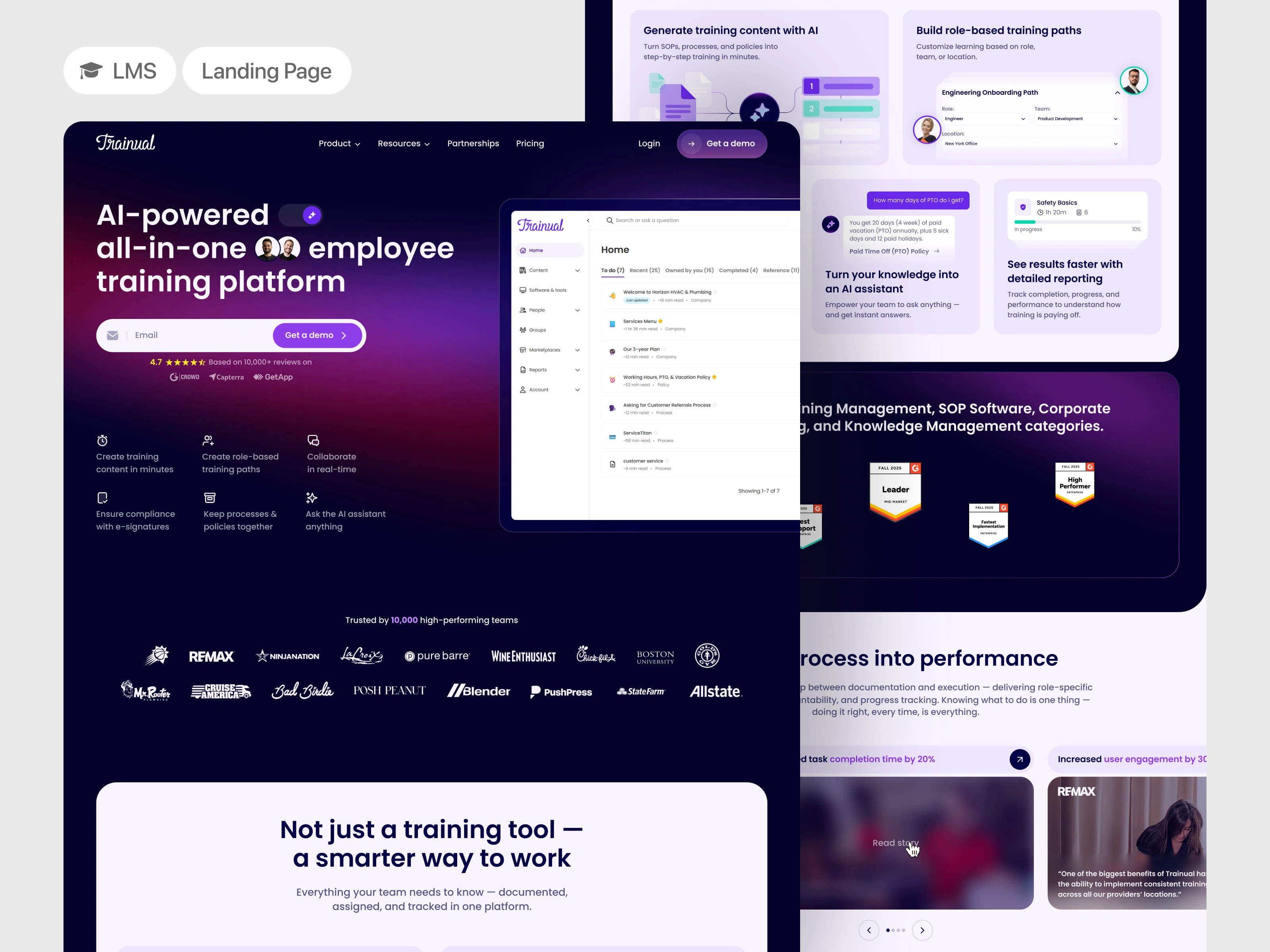 Designed an AI-powered LMS landing page for employee training in SaaS.