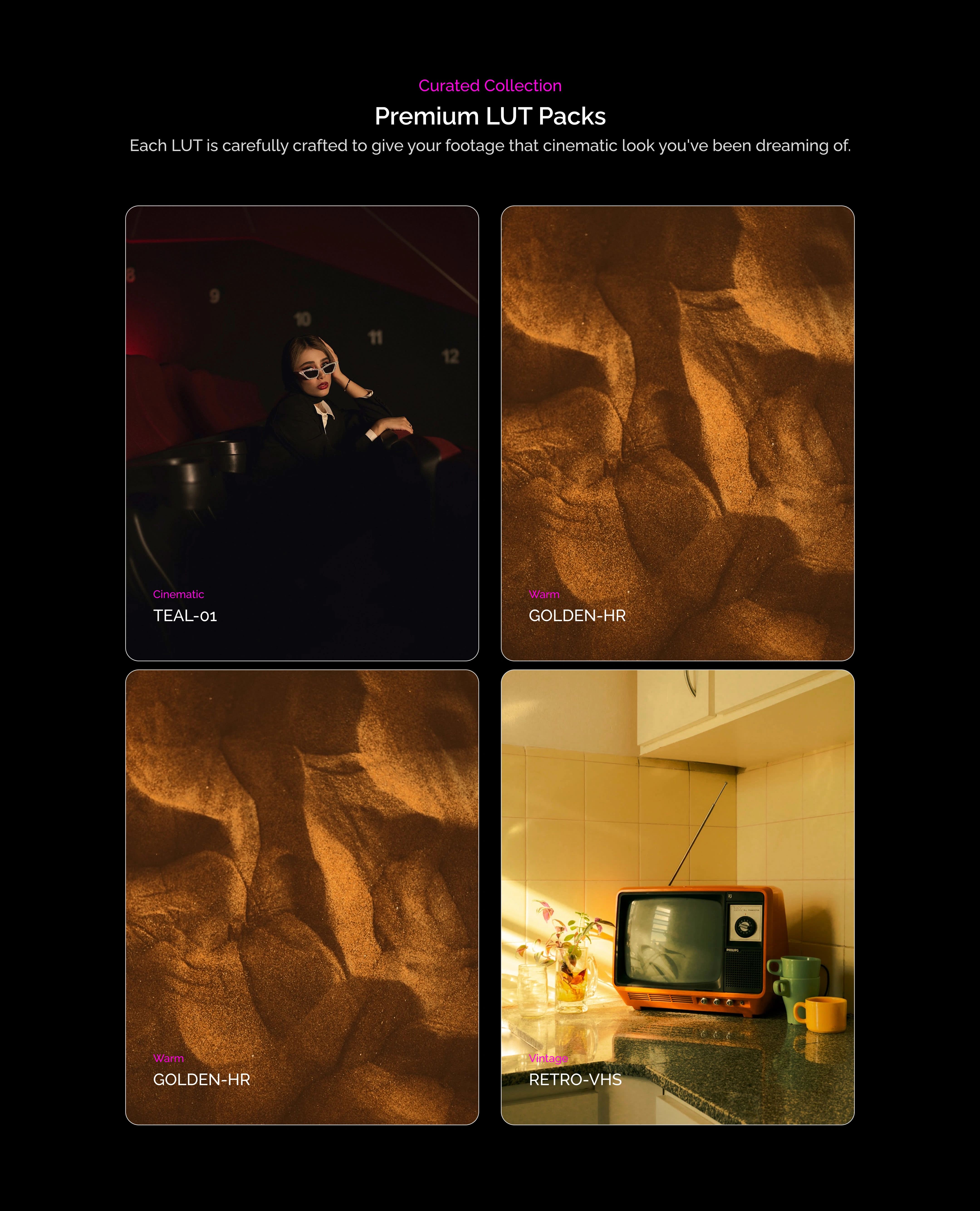 This project is a landing page design for a creative SaaS platform that helps filmmakers and video creators preview, apply, and manage cinematic LUTs in real time.