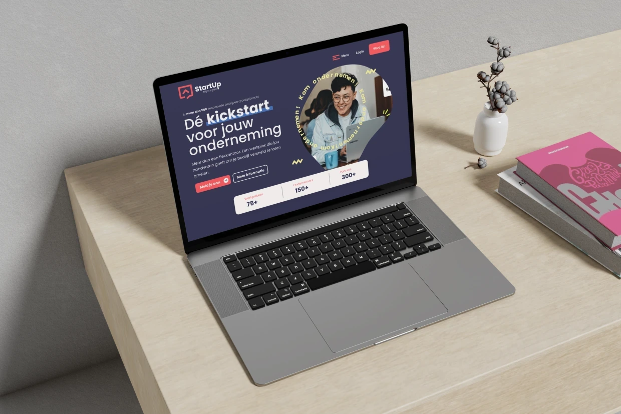 For the new design, we first looked at StartUp Nijmegen's target group: young, starting entrepreneurs looking for an inspiring, accessible and energetic workplace. The existing design did not sufficiently match this visually and content-wise. From that analysis, different visual directions were explored - from sleek and minimalist to playful and expressive. The final choice was a colourful and dynamic design with round shapes and lively accents, fitting the creative and entrepreneurial atmosphere of StartUp.