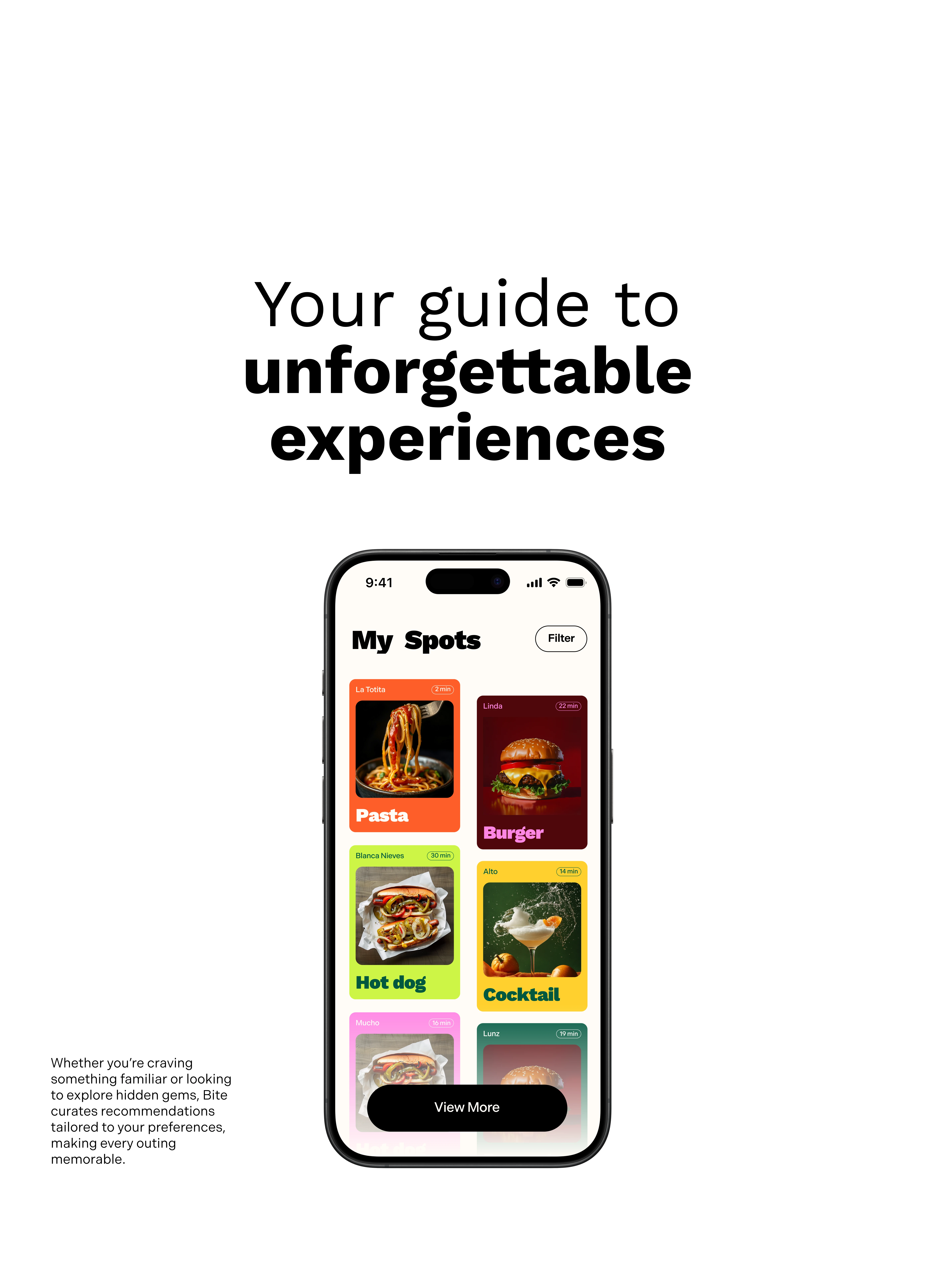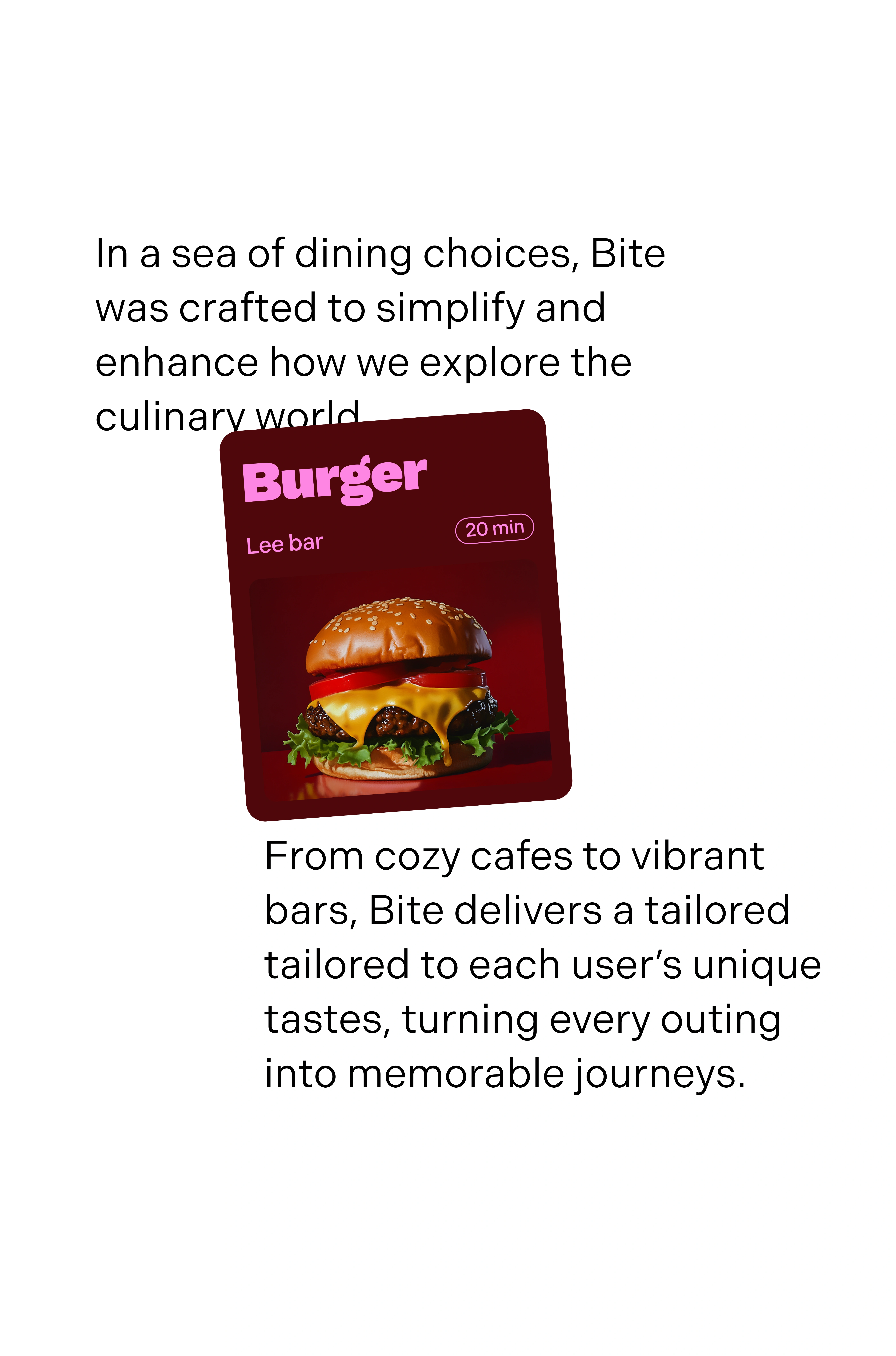 Bite is a personalized app designed to transform how you explore and enjoy food. Whether you're searching for cozy cafes, vibrant bars, or hidden gems, Bite curates tailored recommendations to suit your preferences. With its sleek, intuitive design, the app features interactive maps, AI-powered insights, and smart filters that make every decision effortless. From uncovering trending spots to sharing favorites with friends, Bite elevates every step of your culinary journey.