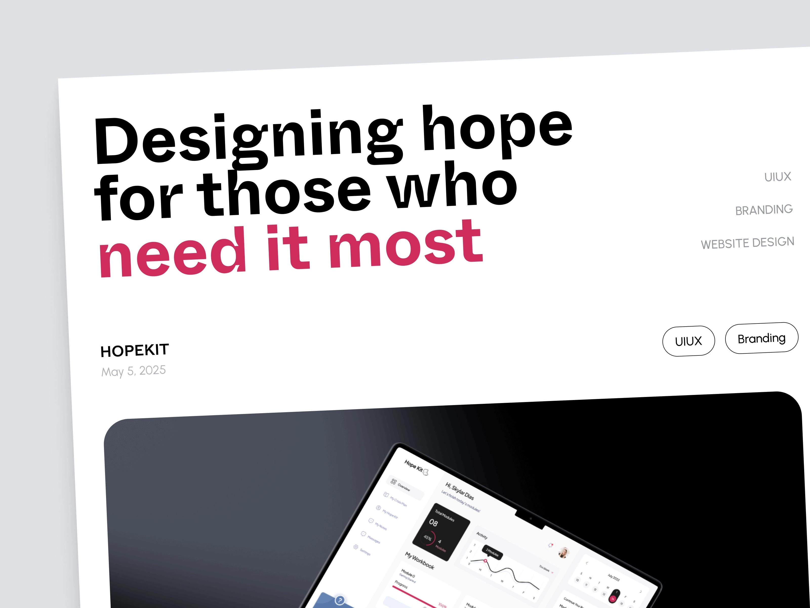 Hope Kit is a suicide prevention platform providing evidence-based, digitally delivered therapy from licensed psychologists. Designed to be accessible, secure, and affordable, it helps individuals struggling with suicidal thoughts through a focused, research-backed approach.