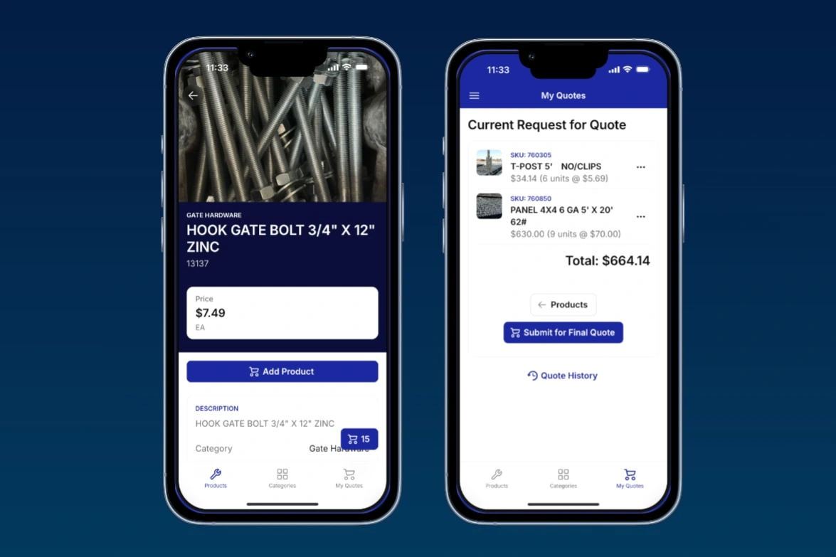 A digital catalog of inventory which allows customers to create carts and submit quote requests from the vendor. Features low inventory and email notifications