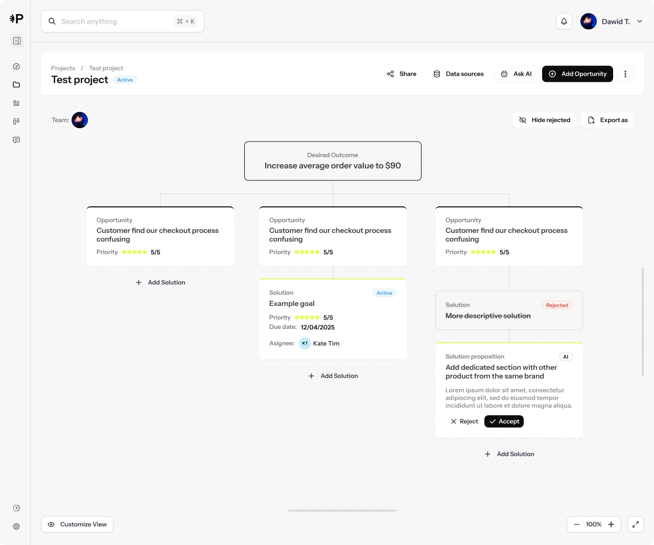 Opportunity Solution Tree Engine – streamline discovery with AI-driven analysis and market insights