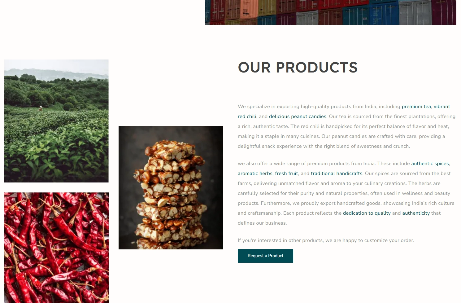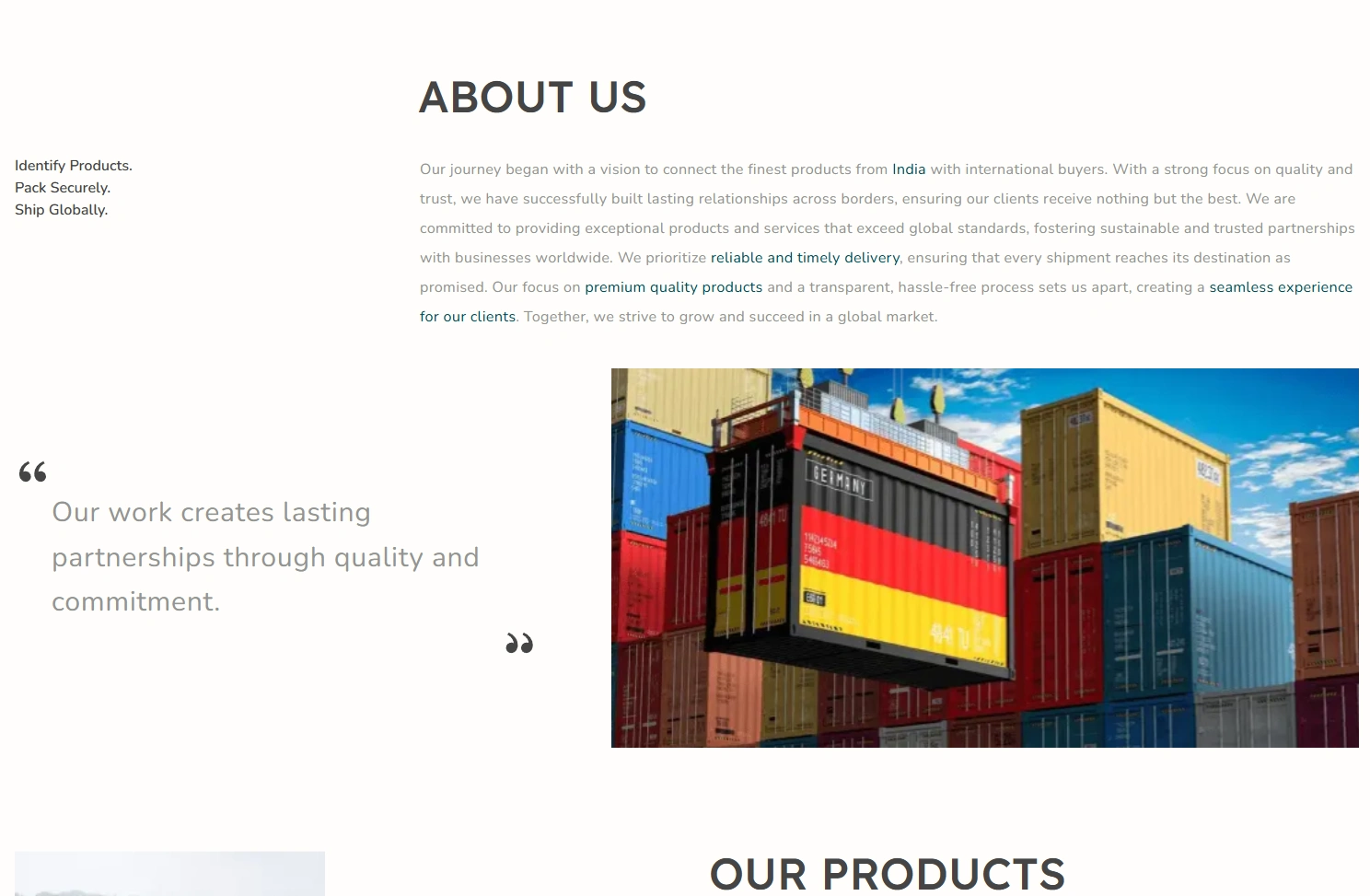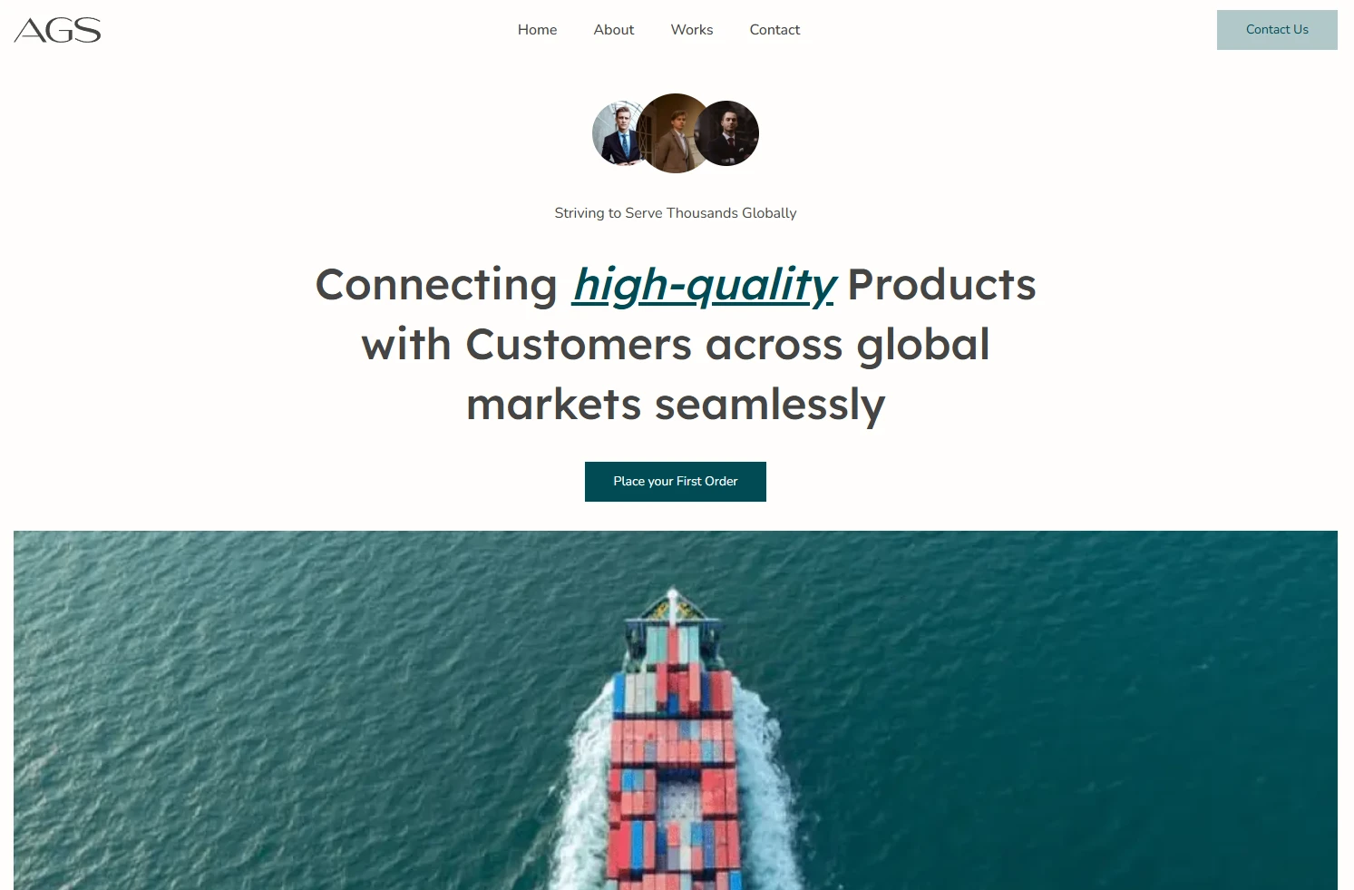 The landing page gave AGS Overseas a professional digital presence. It highlights their export services clearly while maintaining a trust-focused aesthetic.