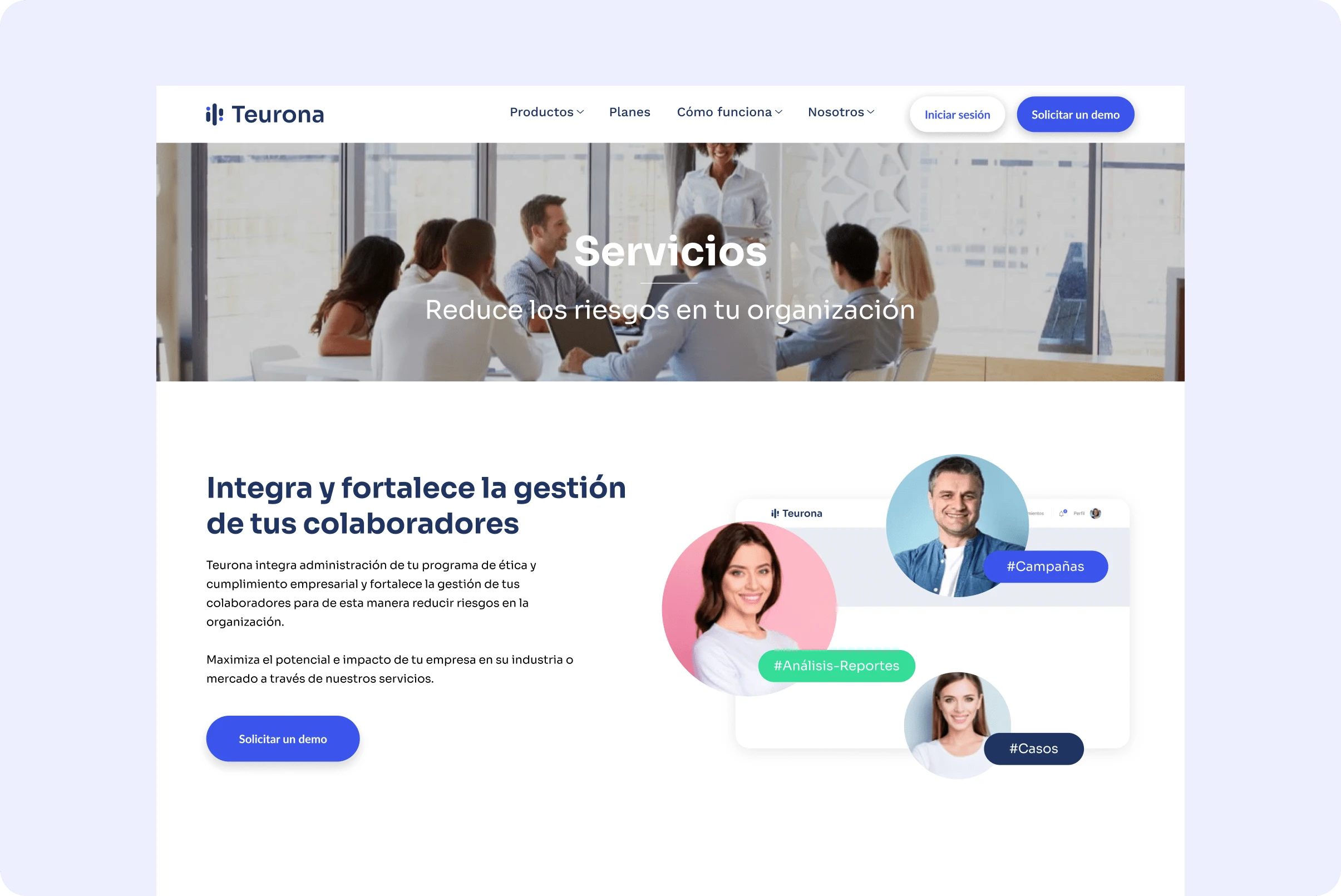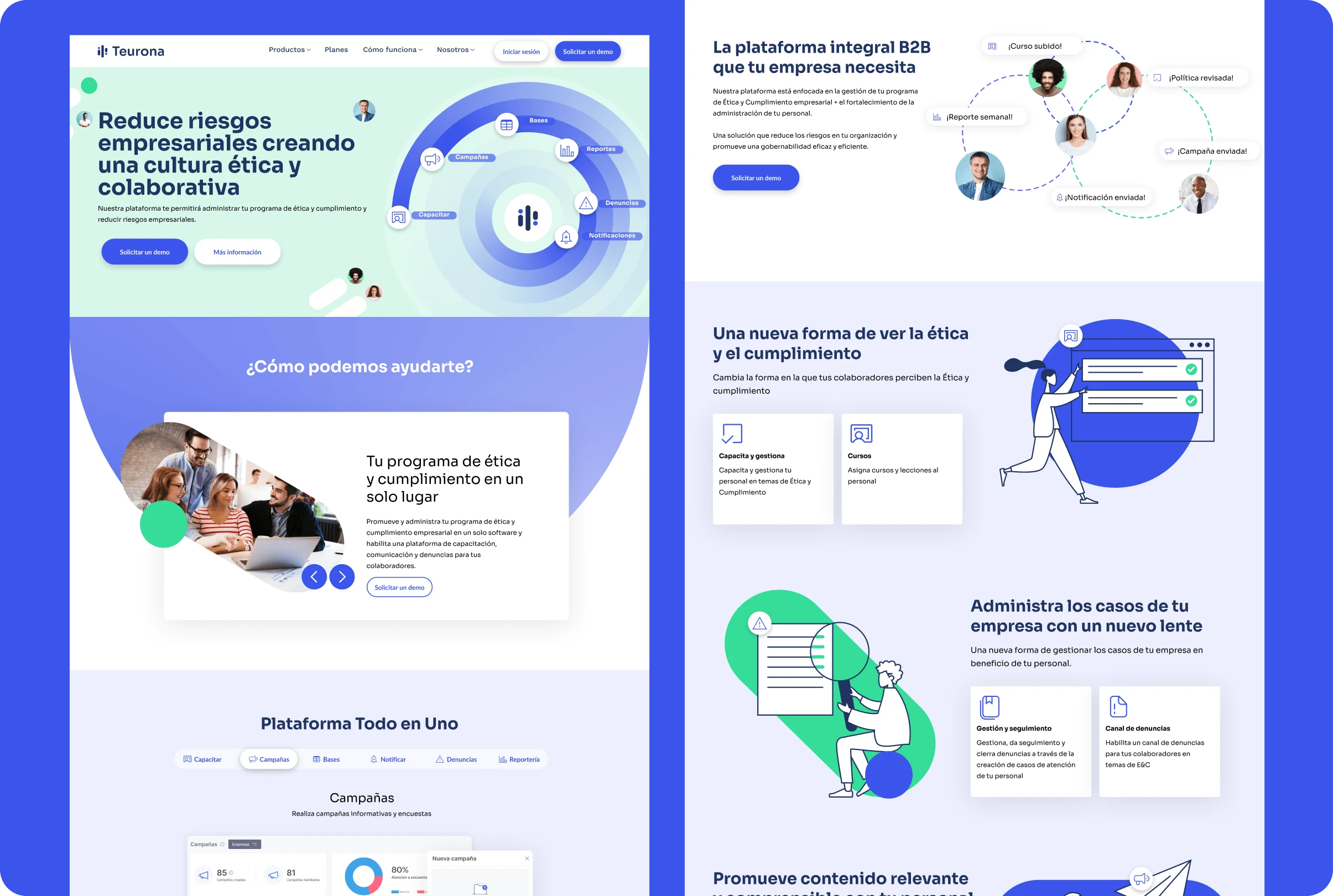 Teurona is a global company that believes in the comprehensive strengthening of organisations. Its platform allows to manage Ethics and Compliance programs and reduce business risks. The objective of their website is to show all the benefits of their platform.